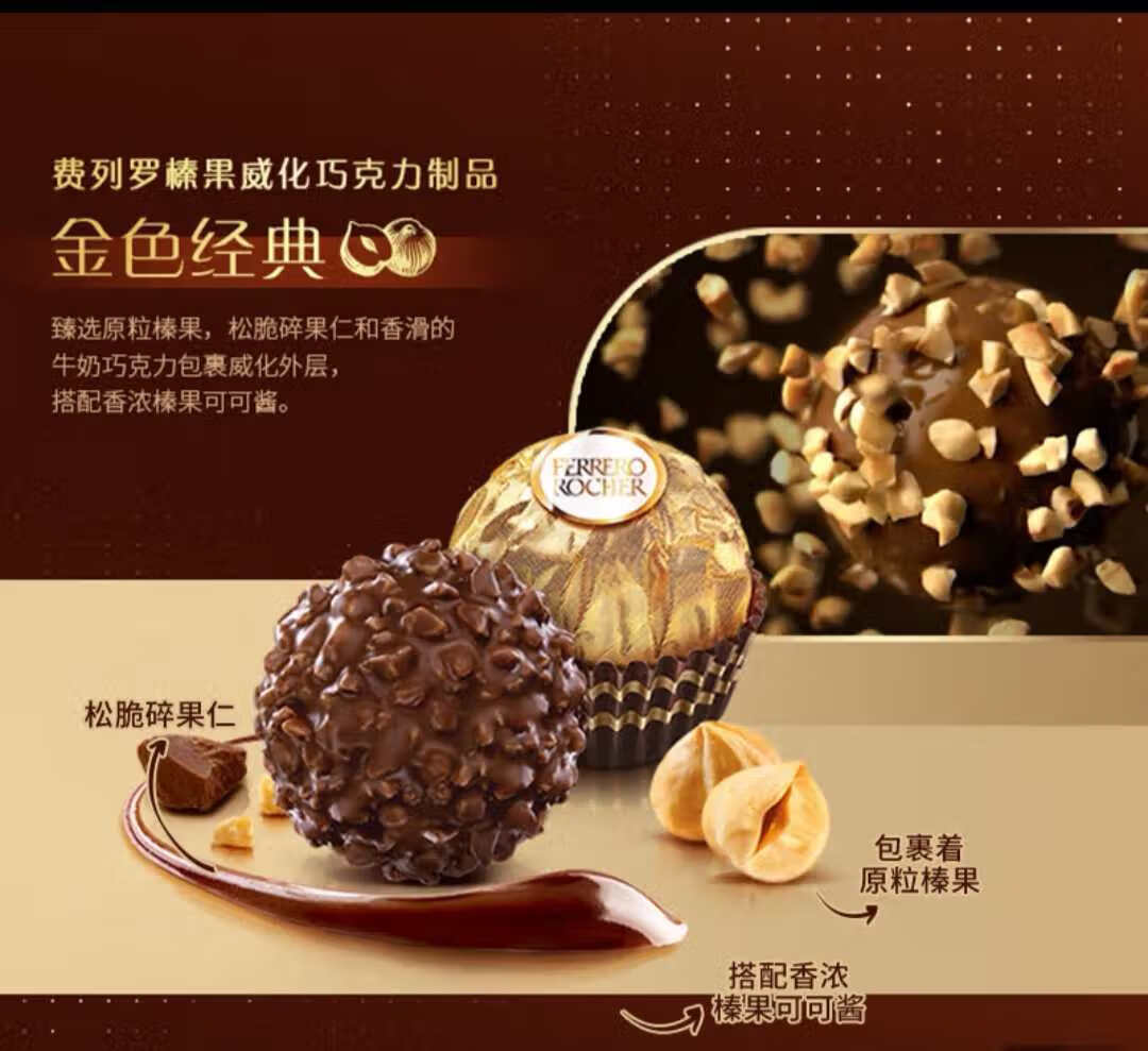费列罗费列罗巧克力 2粒*12条300g榛果威化 休闲零食 糖果 新年礼物