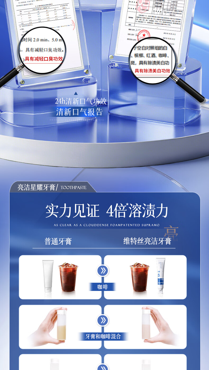 维特丝牙膏美白去黄去口臭亮白去牙渍去烟渍牙垢抑菌清新口气金榜第一名