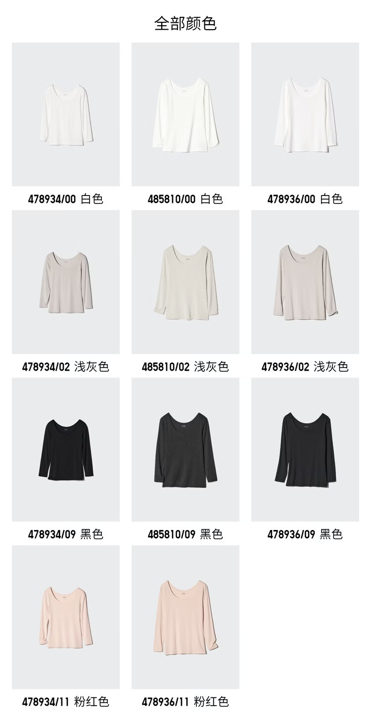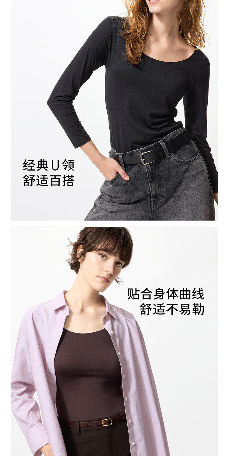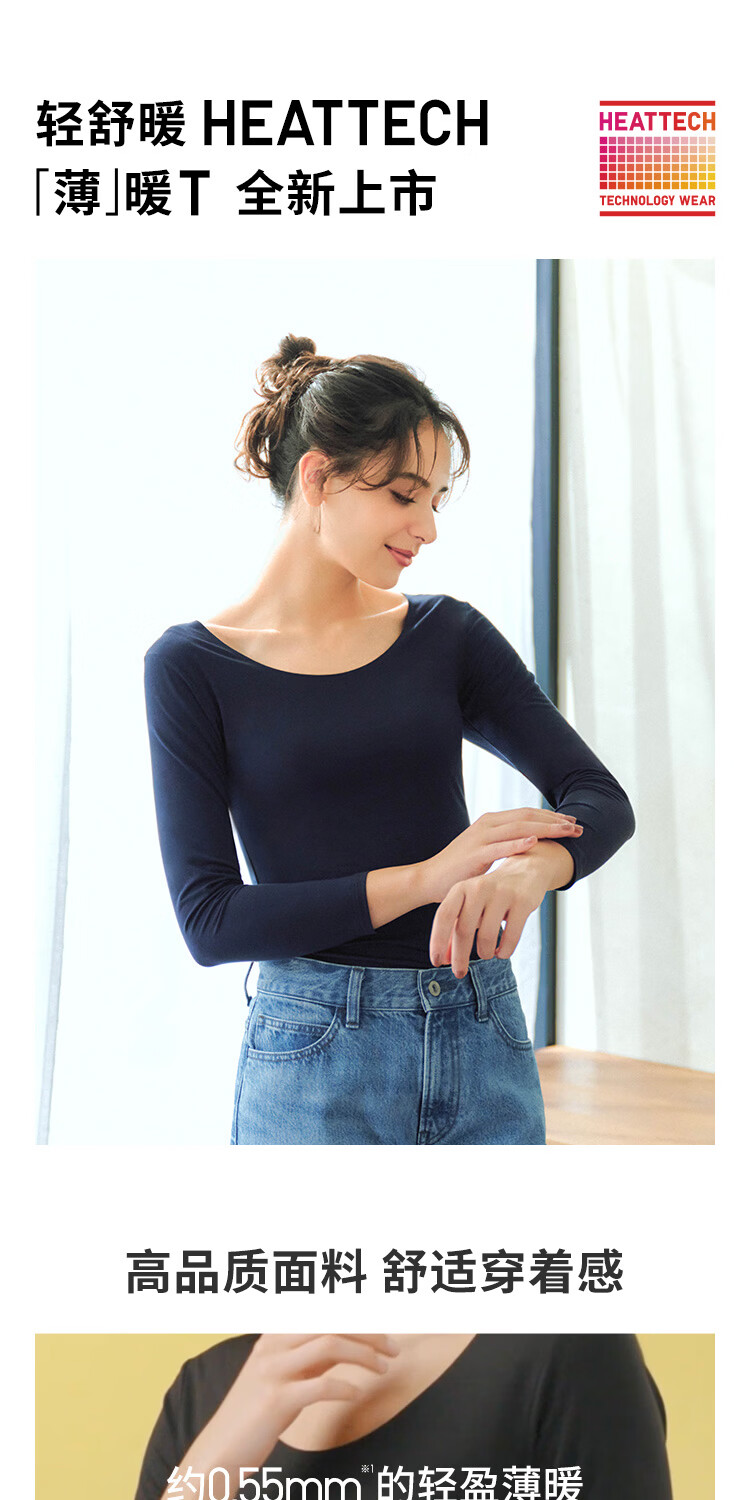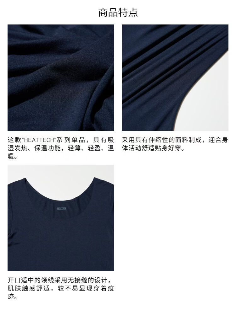 优衣库女装HEATTECH U领T恤/8分袖保暖衣478934 485810 478934/09黑色 XS