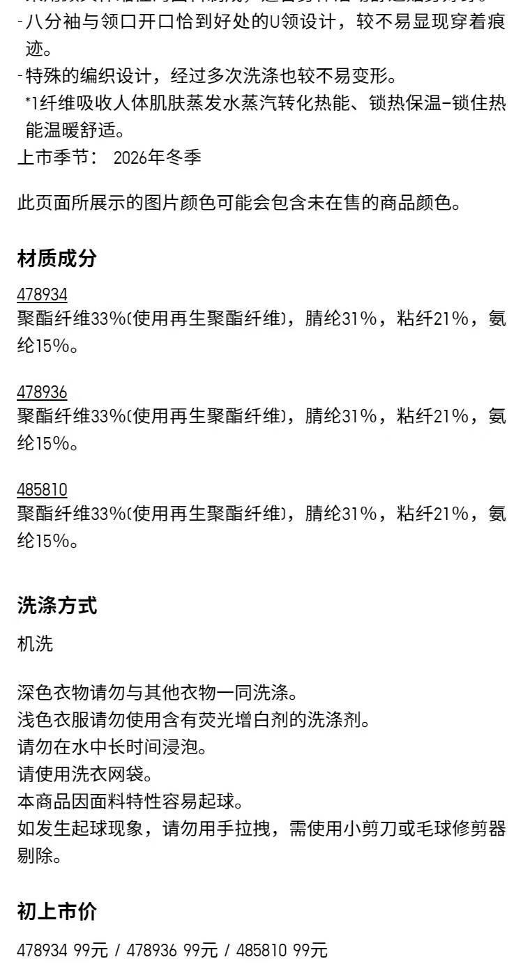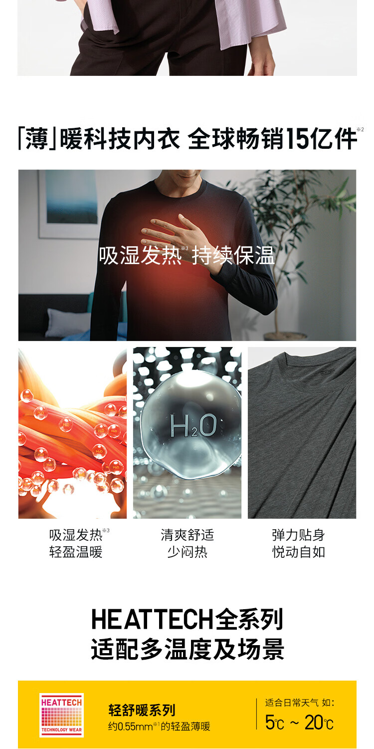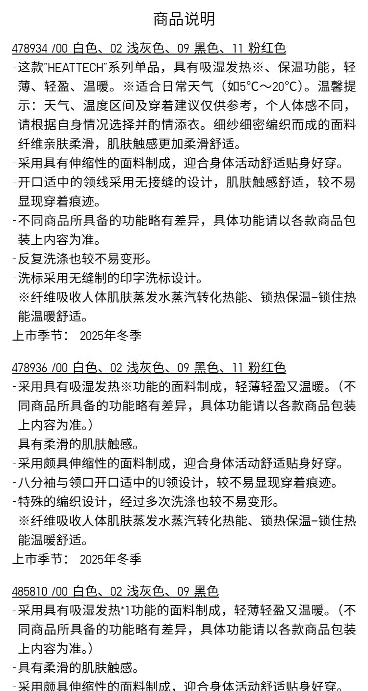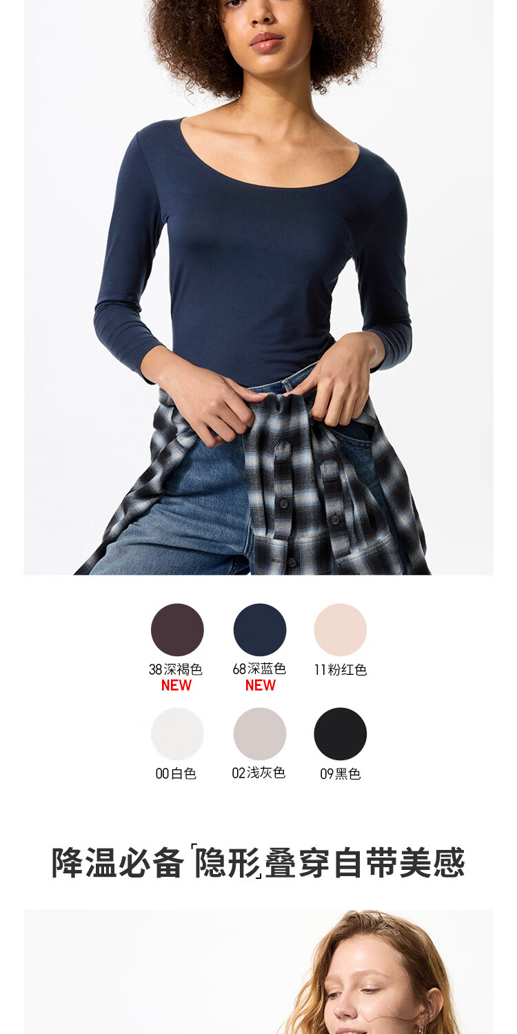 优衣库女装HEATTECH U领T恤/8分袖保暖衣478934 485810 478934/09黑色 XS
