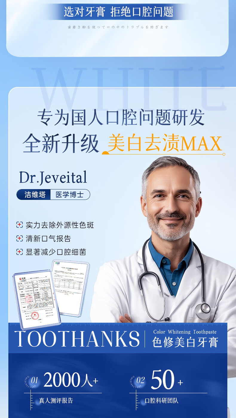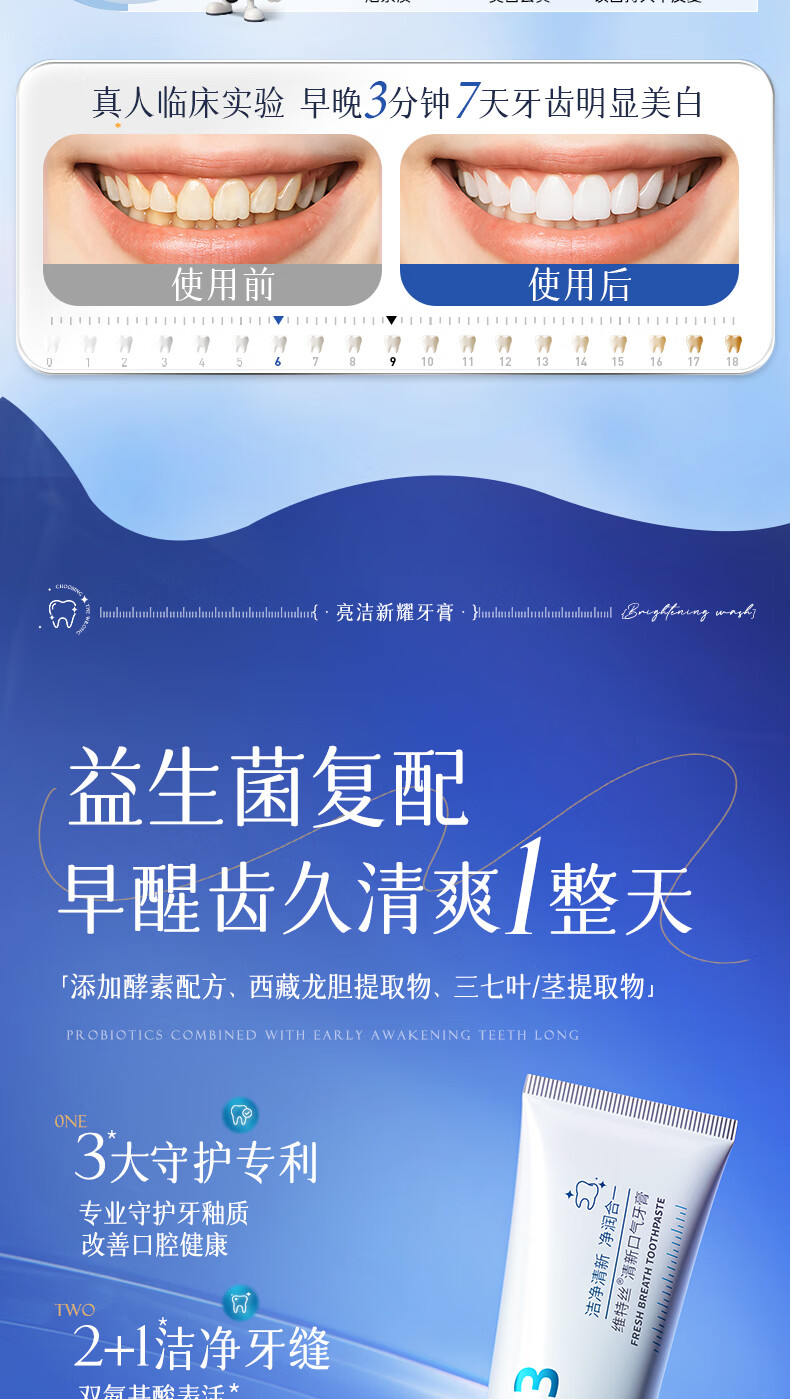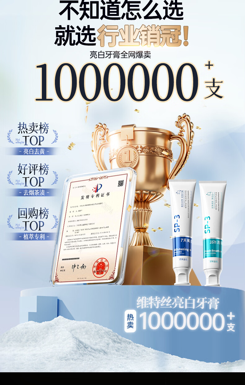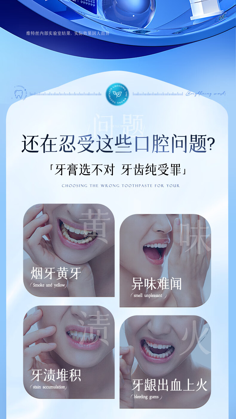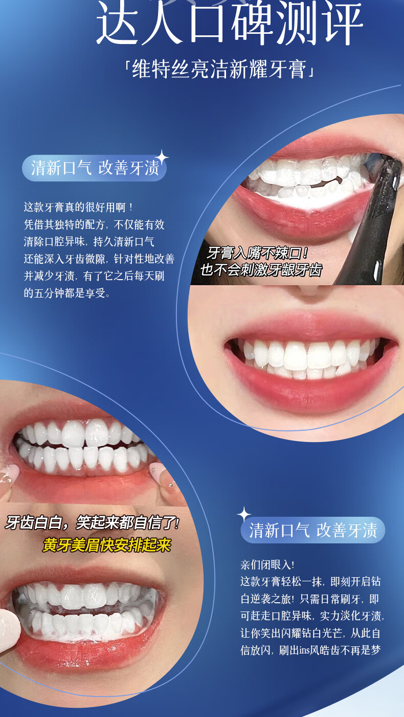 维特丝牙膏美白去黄去口臭亮白去牙渍去烟渍抑菌清新口气成人金榜第一名