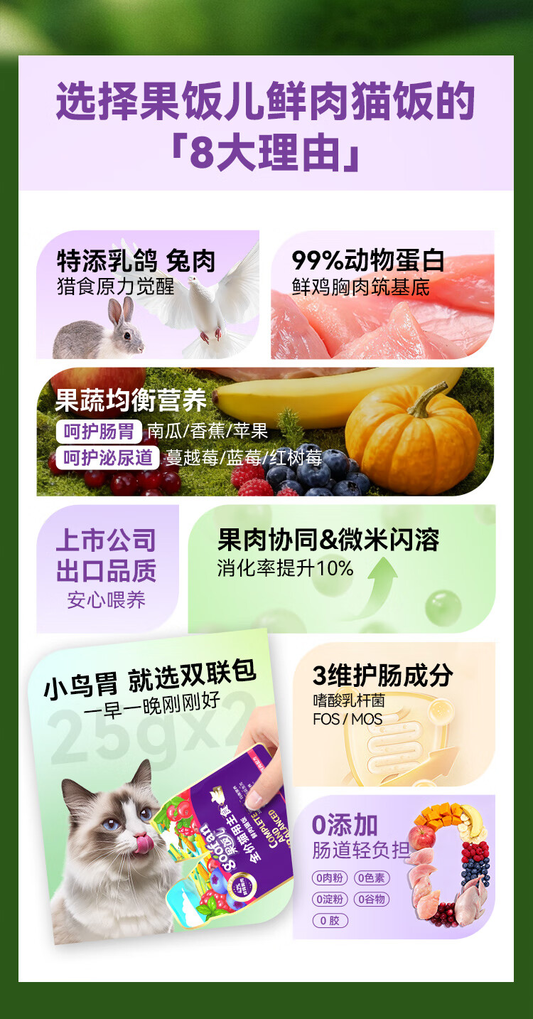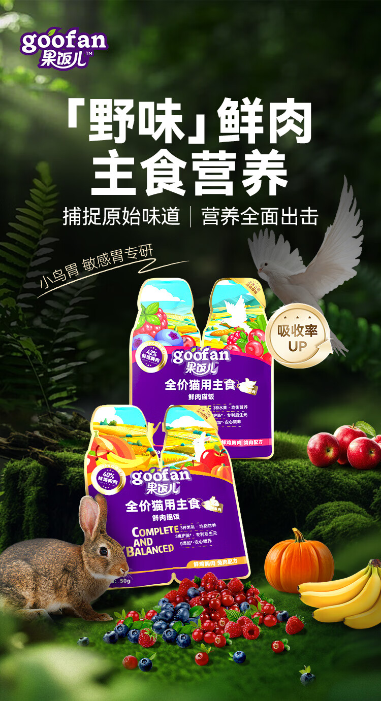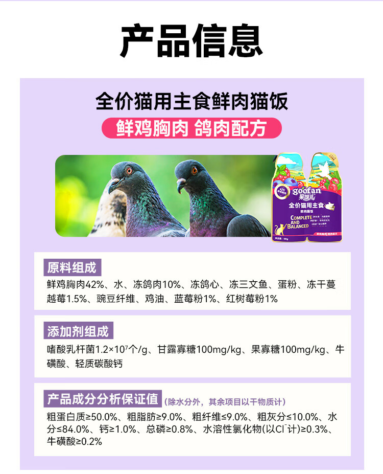 顽皮 鲜肉猫饭50g*6鸽肉泌尿健康配方主食猫条plus猫罐头猫粮鲜封包
