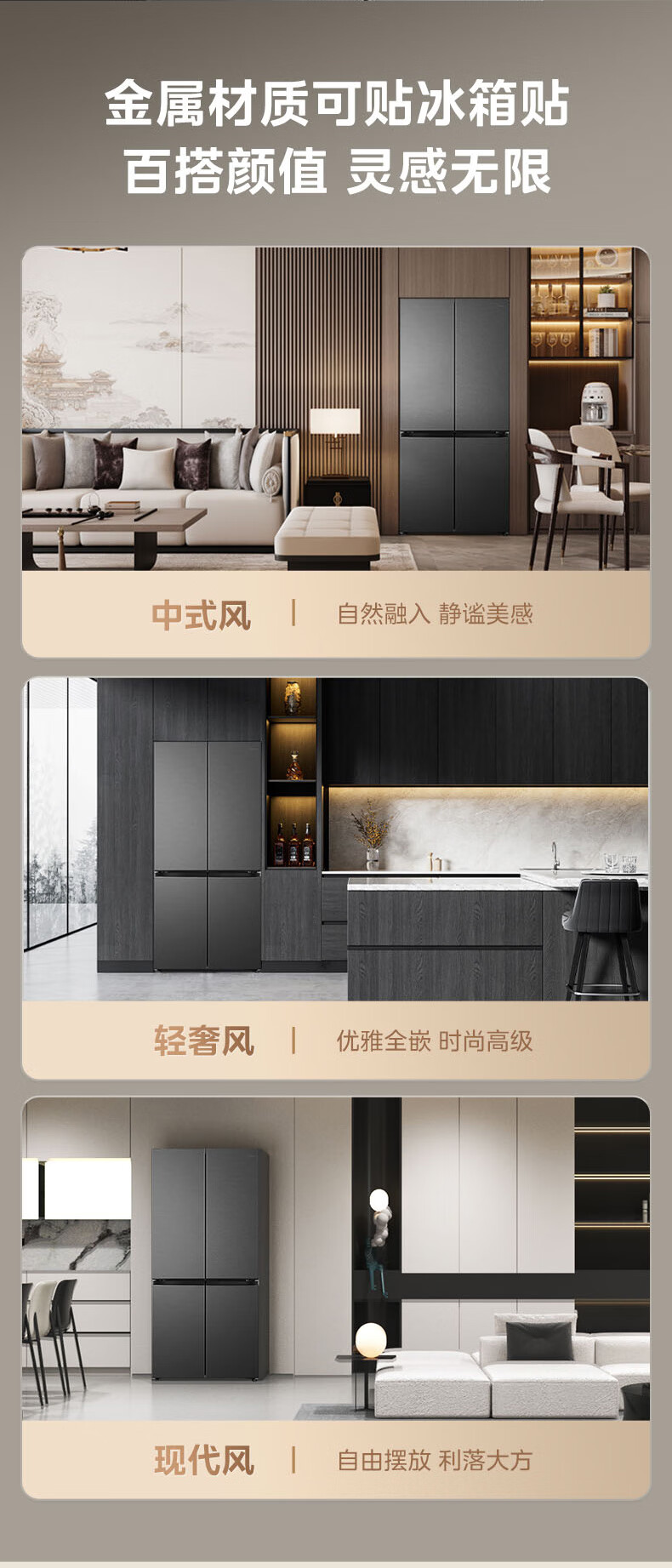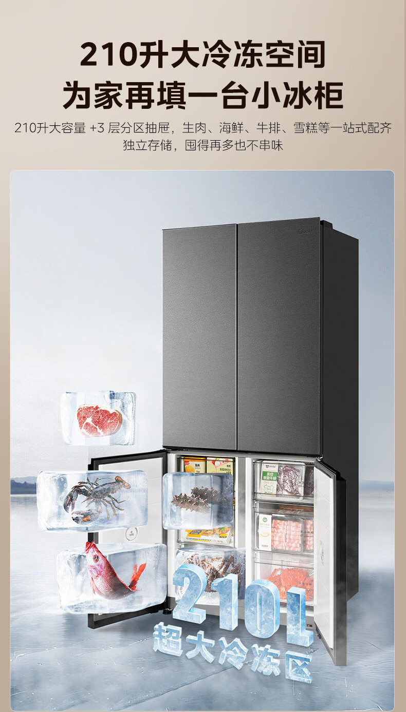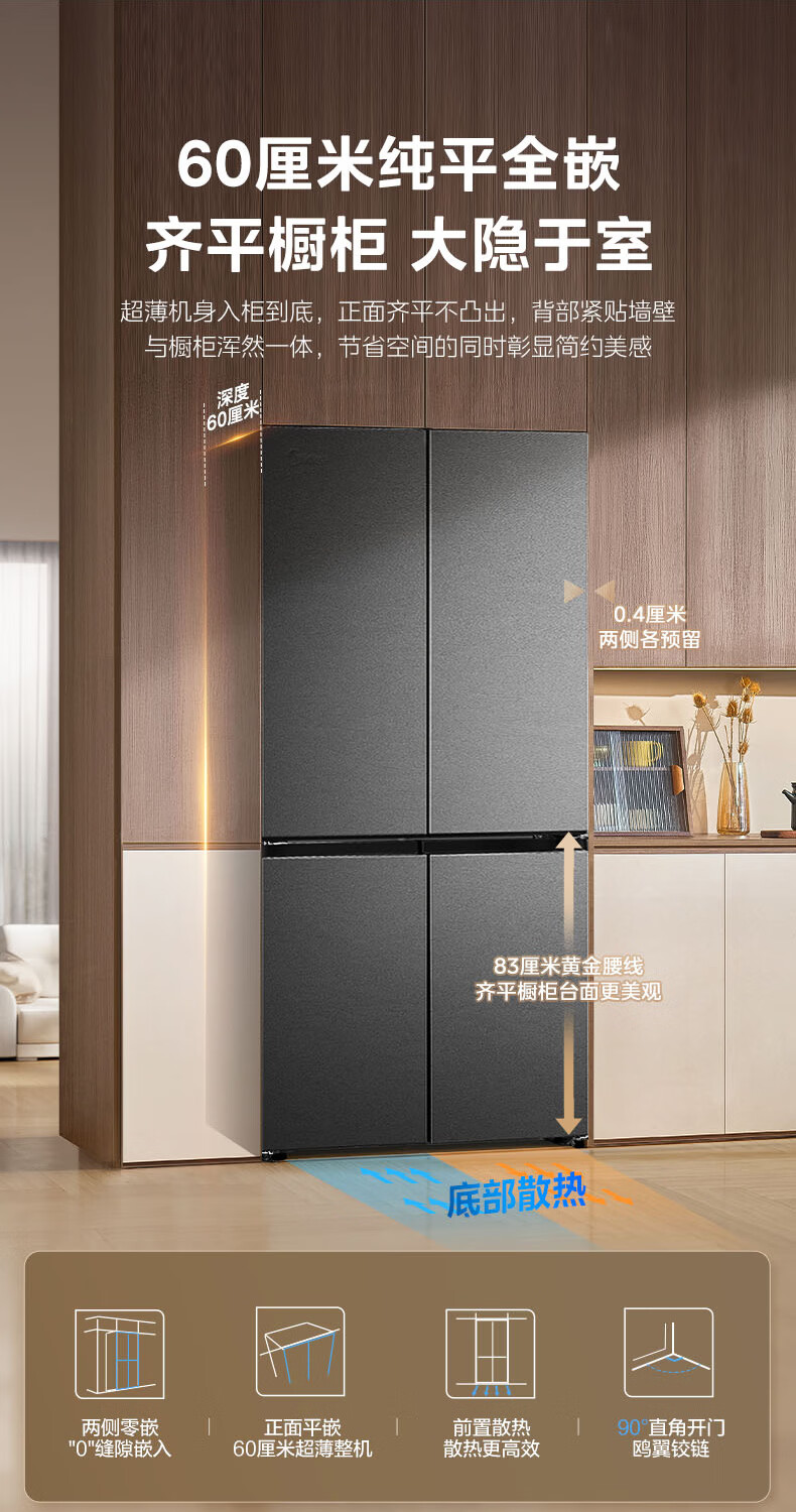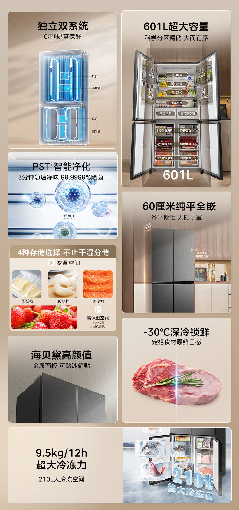 美的(Midea)熊墩墩601L十字门冰箱超薄零嵌入式双系统净味超大容量一级能效以旧换新BCD-601WUSPZM(E)国家补贴