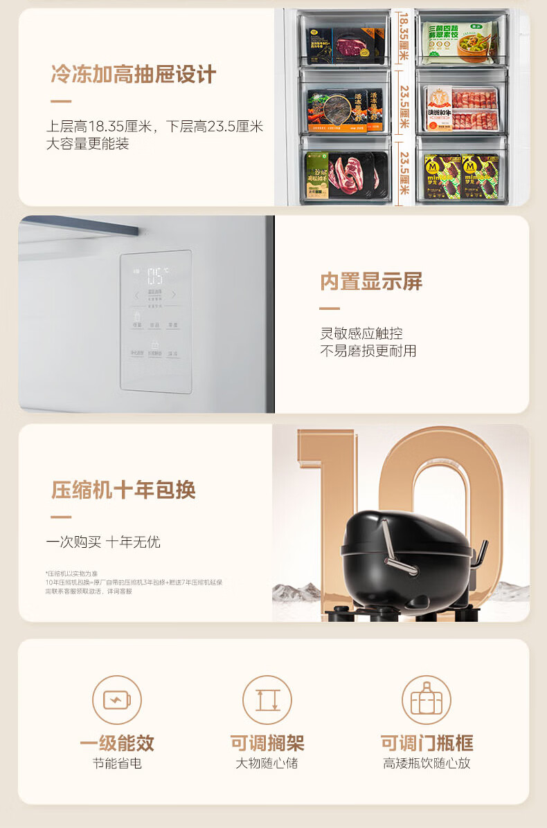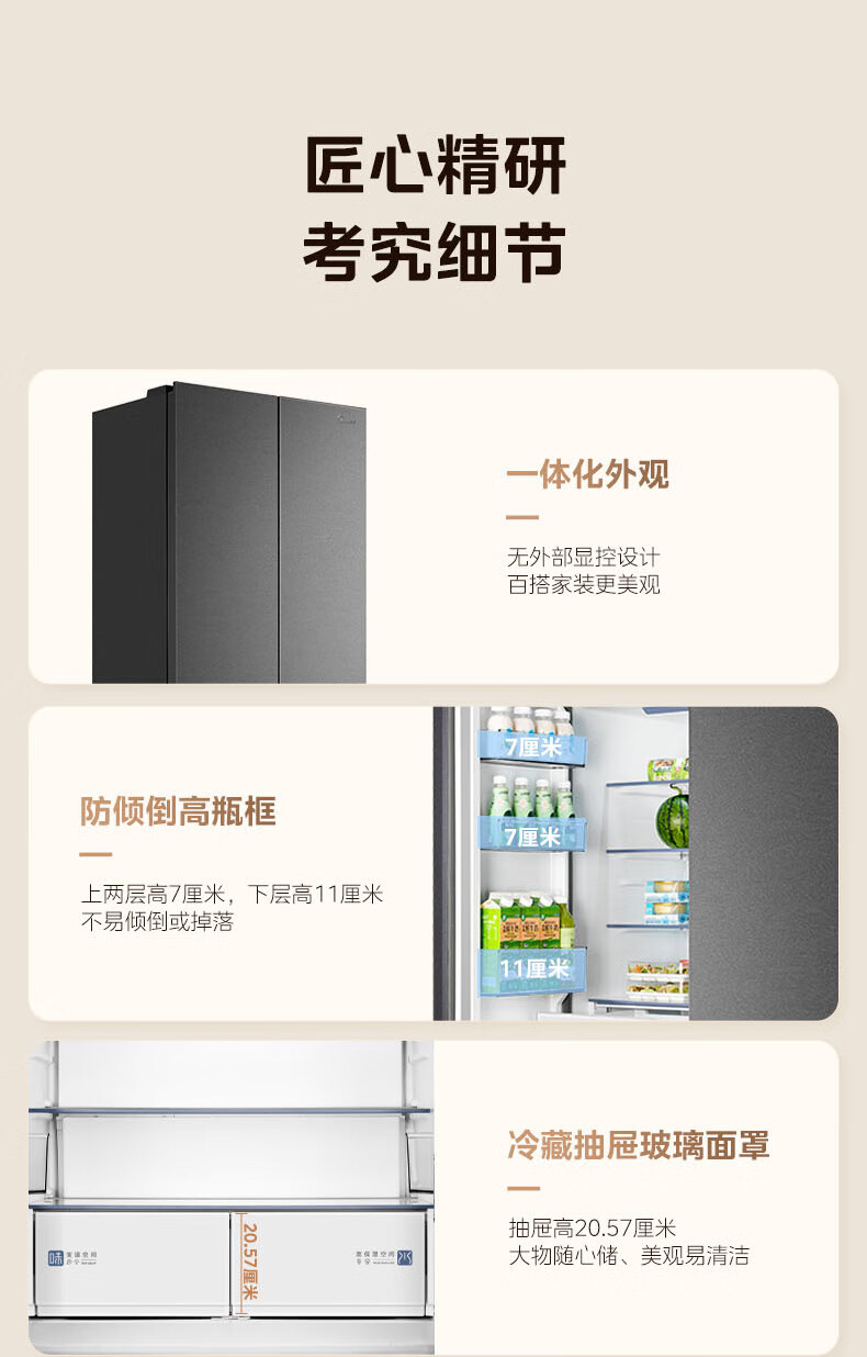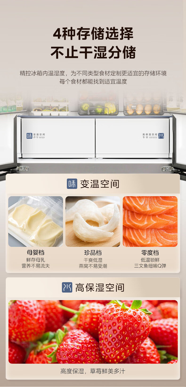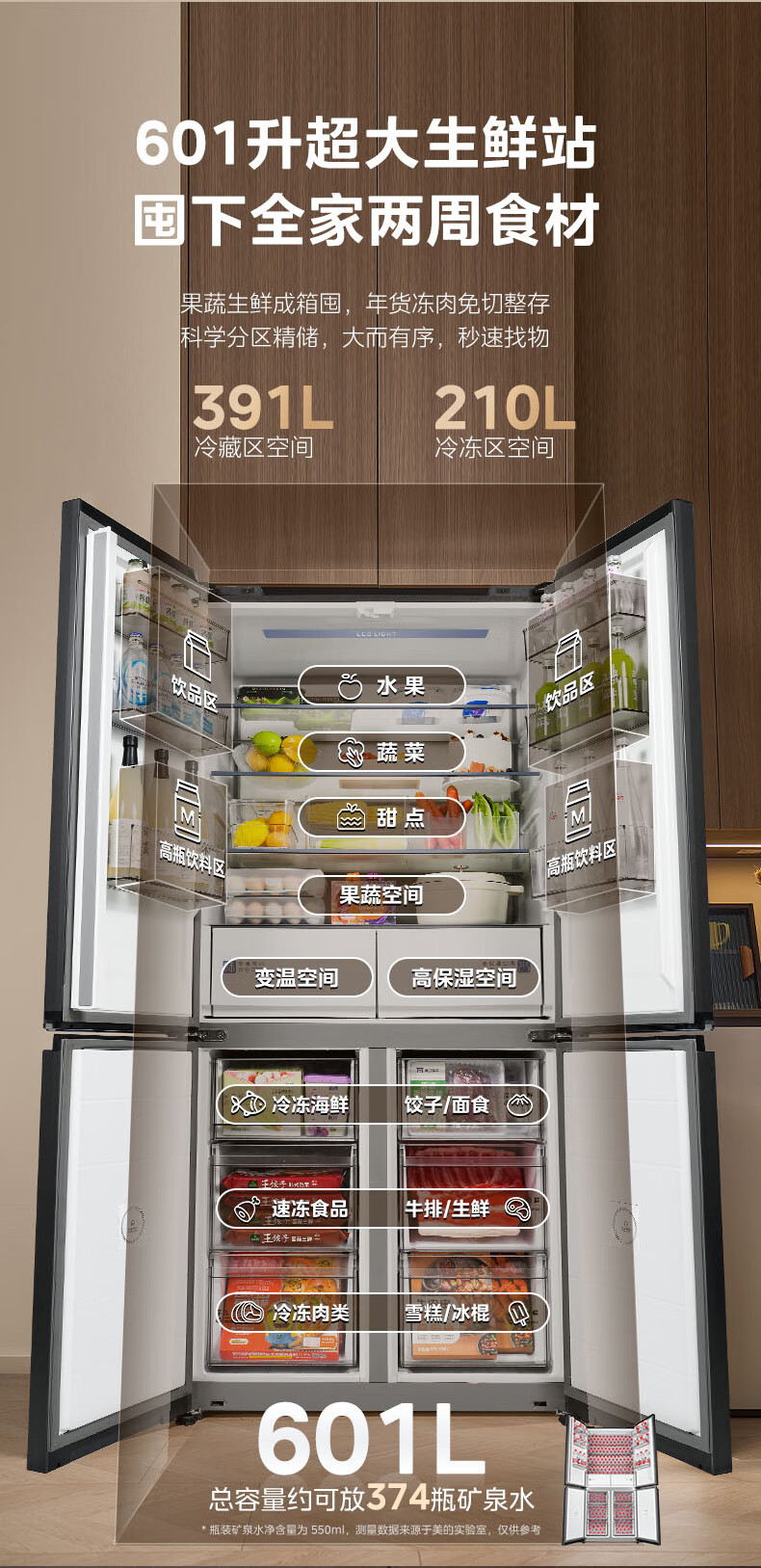 美的(Midea)熊墩墩601L十字门冰箱超薄零嵌入式双系统净味超大容量一级能效以旧换新BCD-601WUSPZM(E)国家补贴