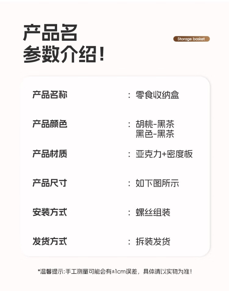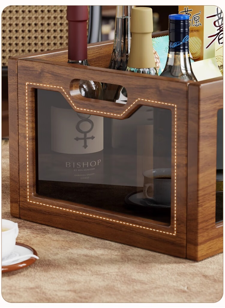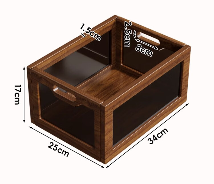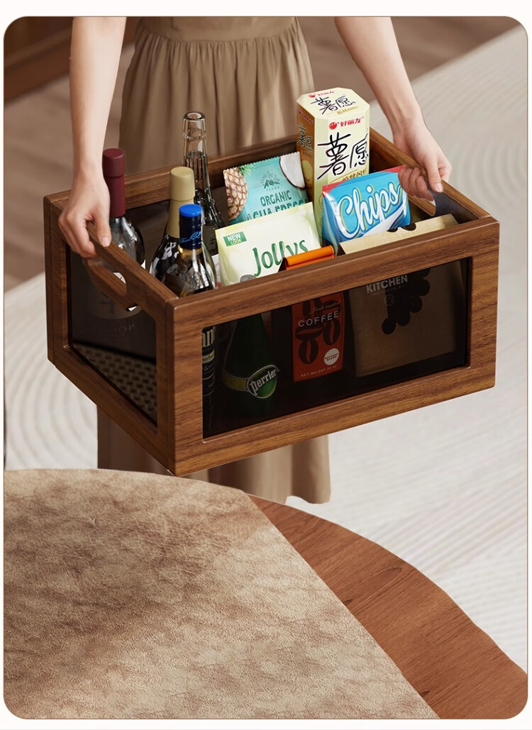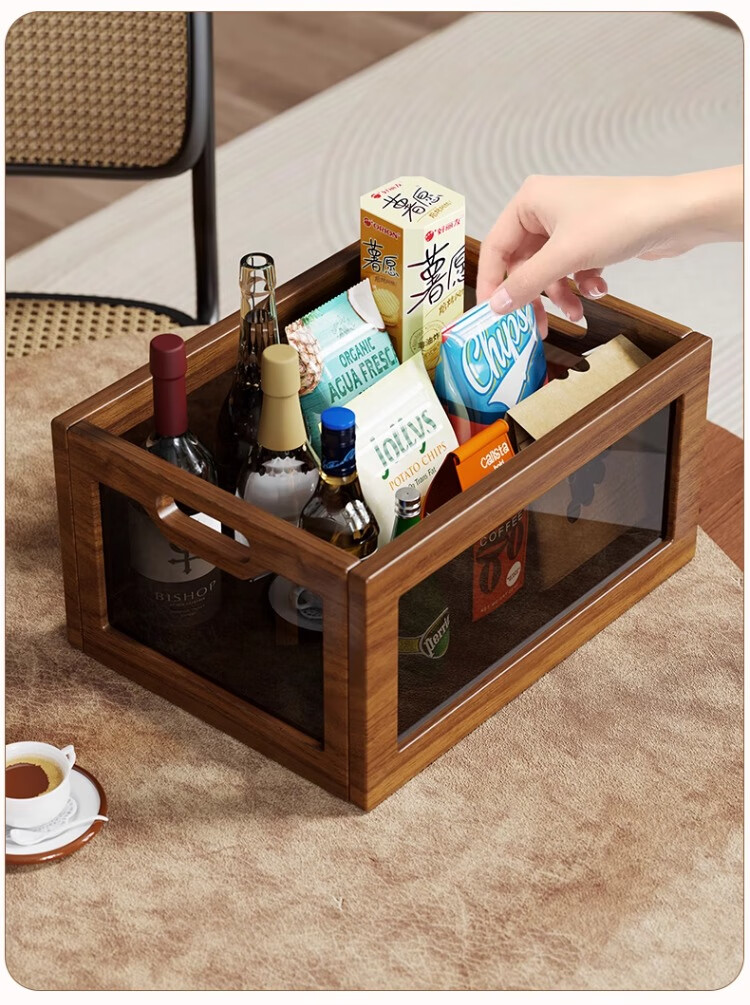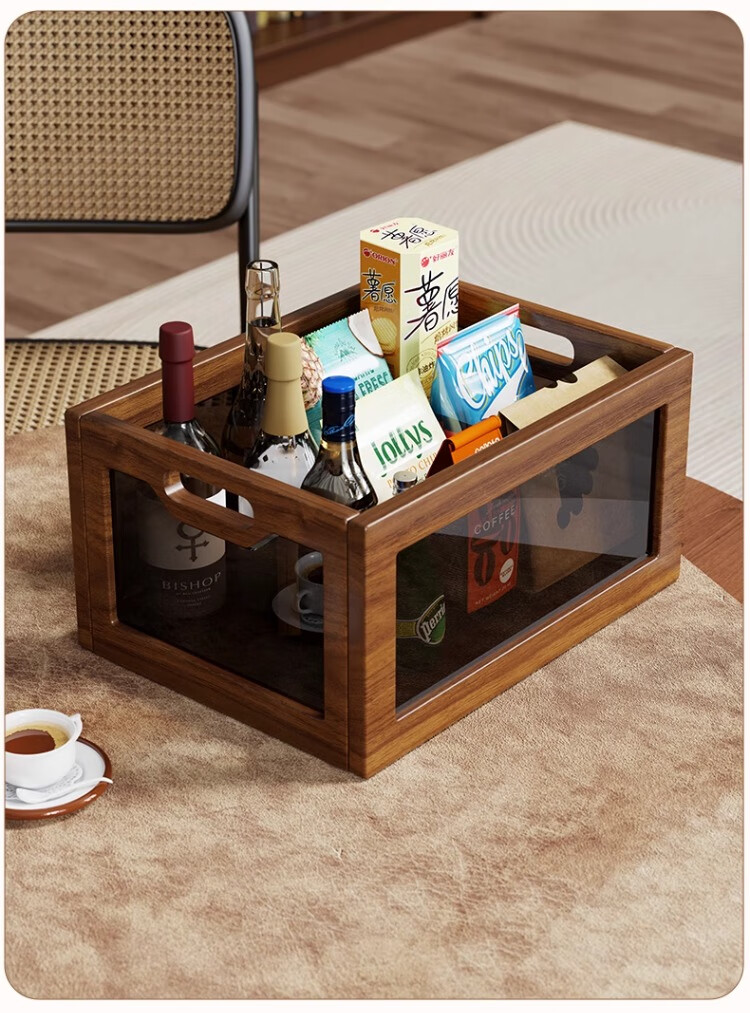 尔思家桌面收纳盒实木茶几多功能收纳盒亚克力透明盒零食筐杂物置物架 胡桃-黑茶