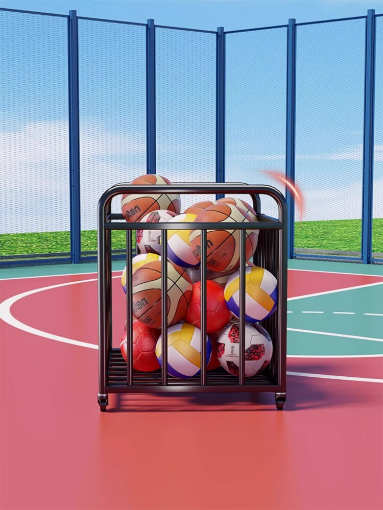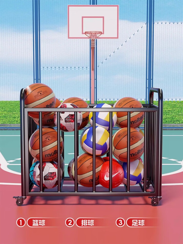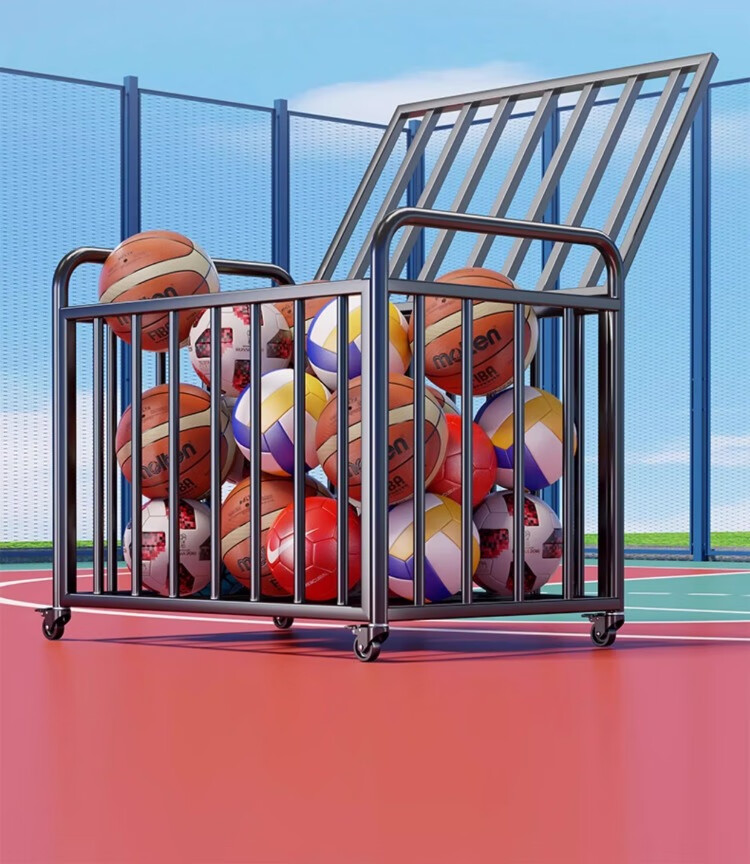 尔思家篮球架收纳学校操场移动置物架幼儿园足球排球架带轮户外健身器材 特大号黑色带盖【约60个球】