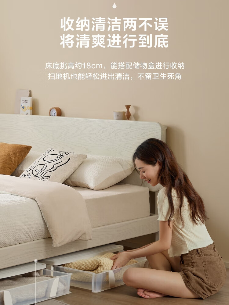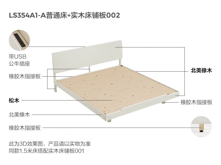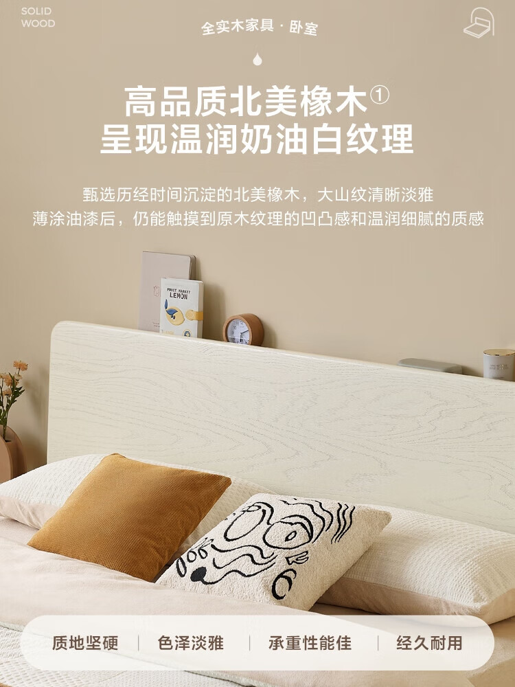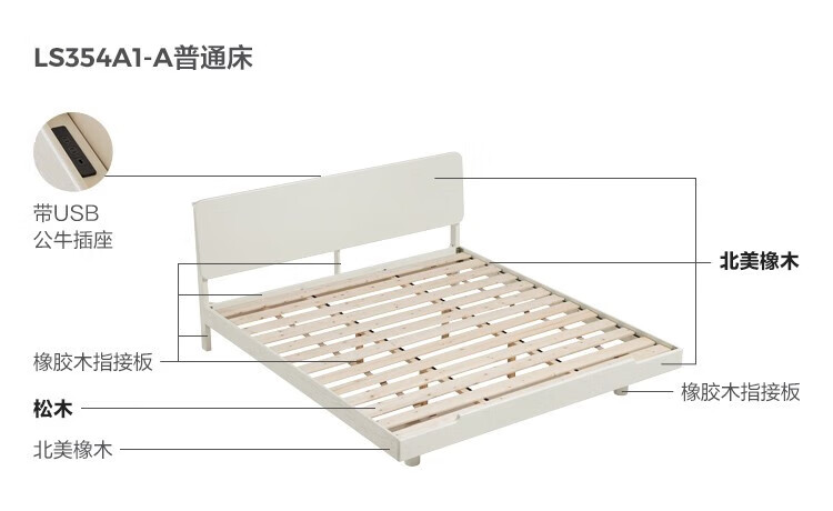 林氏家居实木床双人床1.8米1.5米法式奶油风简约橡木主卧大床LS354 【排骨架】全实木床 1500*2000mm