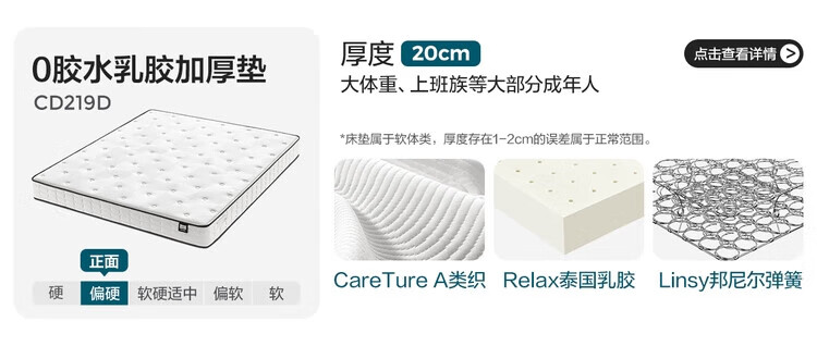 喜临门千帆黄麻床垫 抗菌防螨独袋弹簧床垫 护脊透气席梦思 1.5x2米偏硬