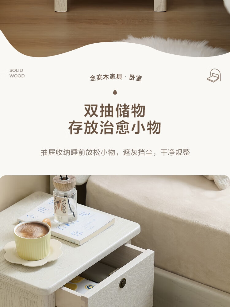 慕思(de RUCCI)慕思 卧室收纳柜软包抽屉柜子 月光白-岩板皮质床头柜