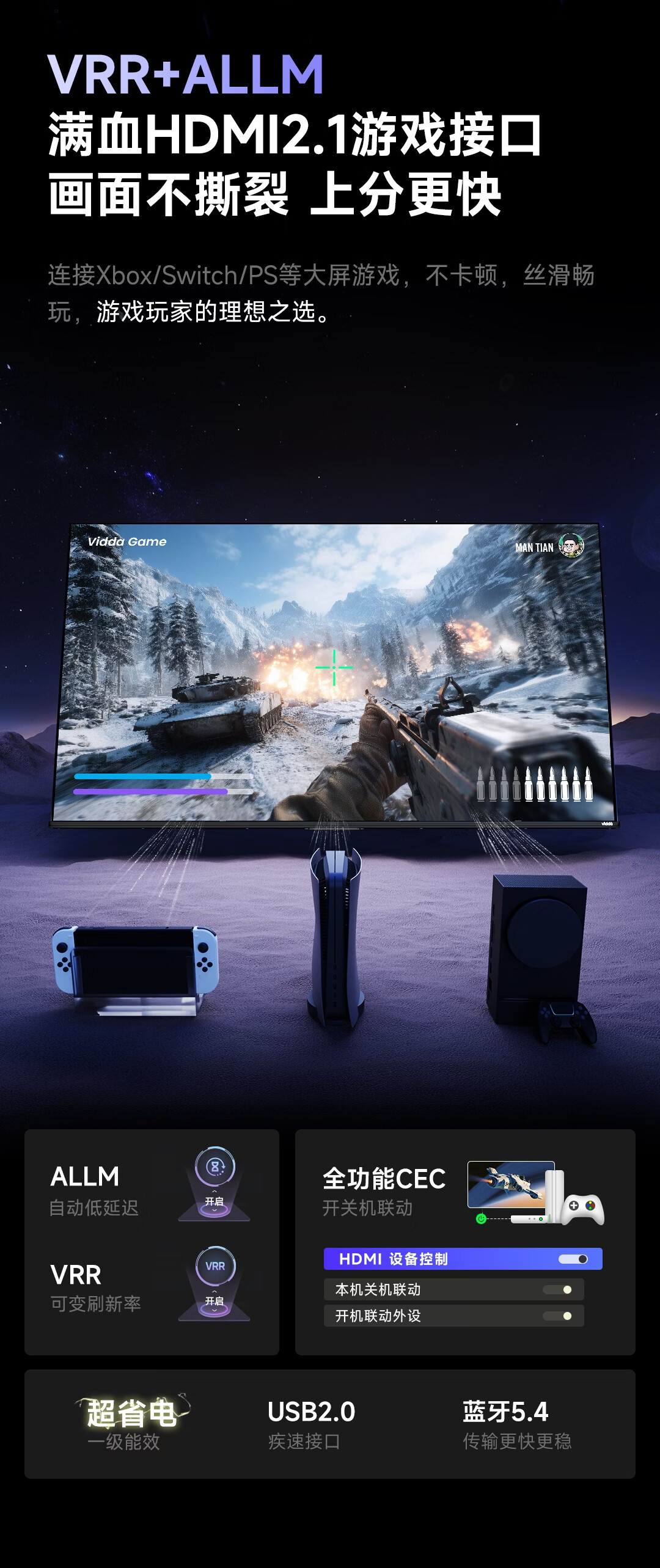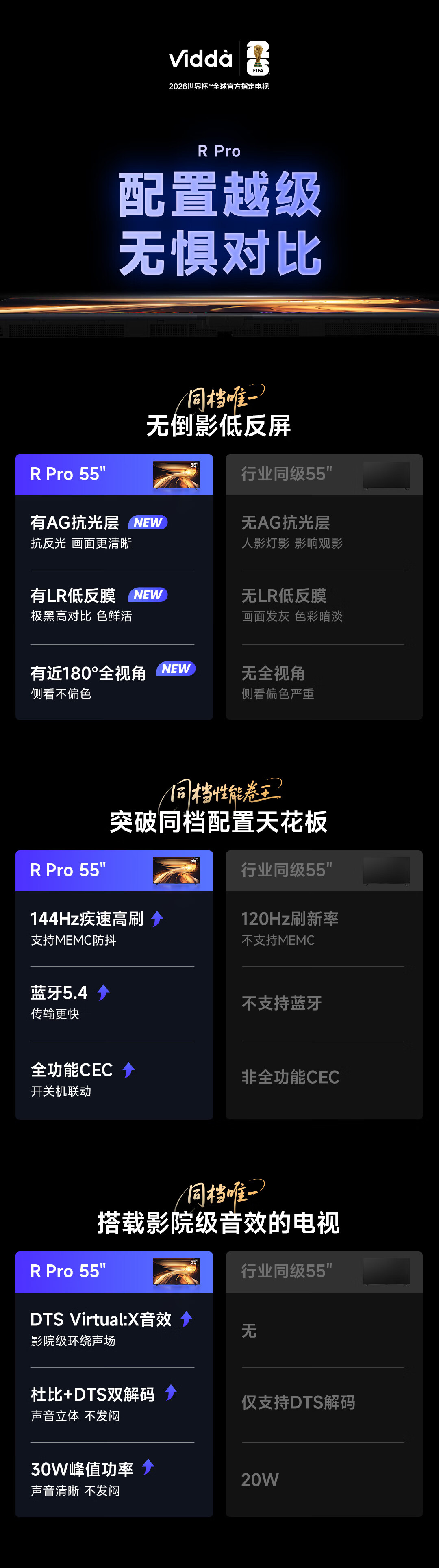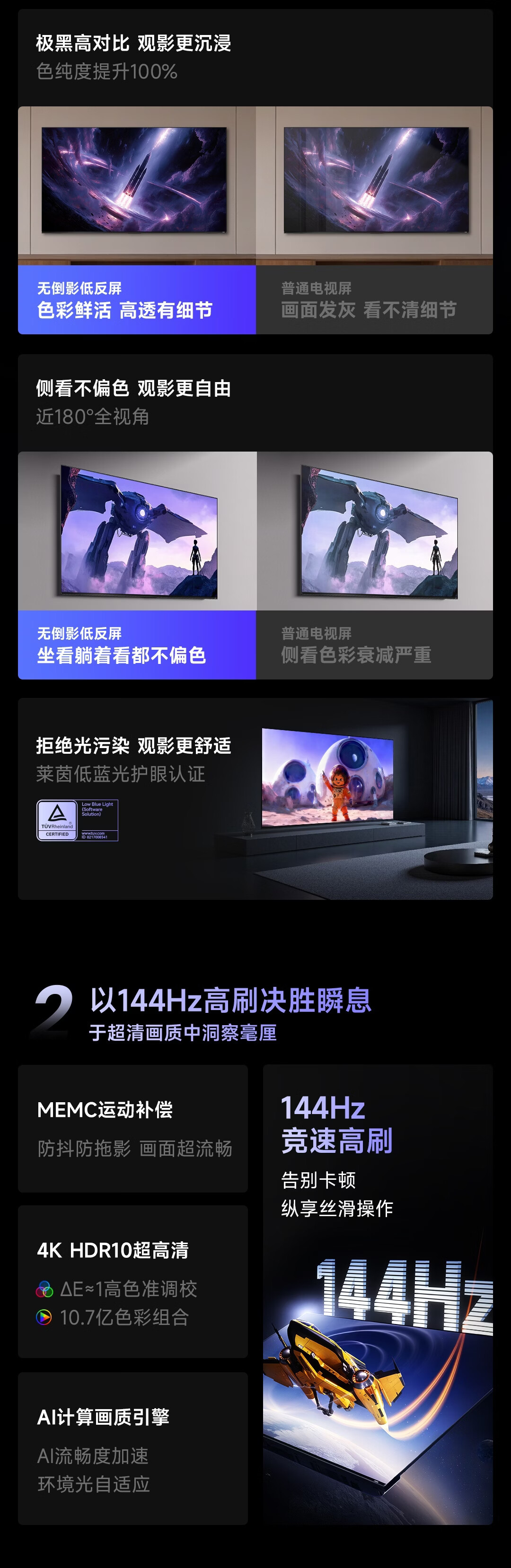 Vidda R Pro 55英寸 海信电视 144Hz高刷不反光 无倒影低反屏电视 以旧换新国家补贴55VR1S-PRO 55英寸