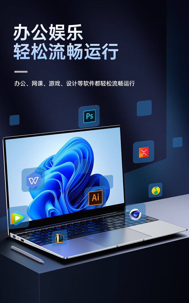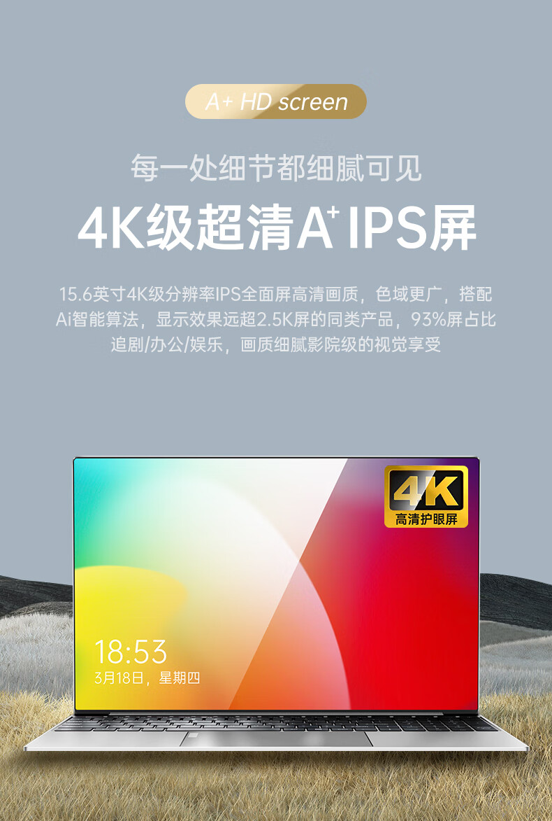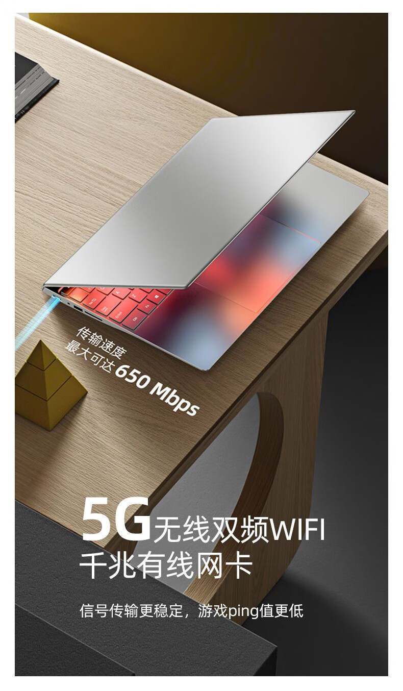 智美派15.6英寸英特尔笔记本电脑高性能办公学生学习编程电竞游戏上网本 银色 256G+12G【送鼠标+支架+电脑包】