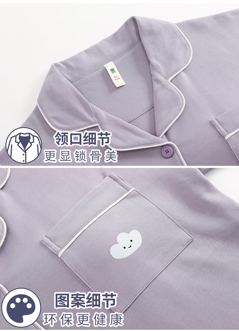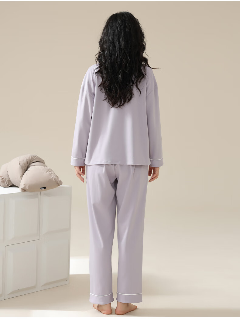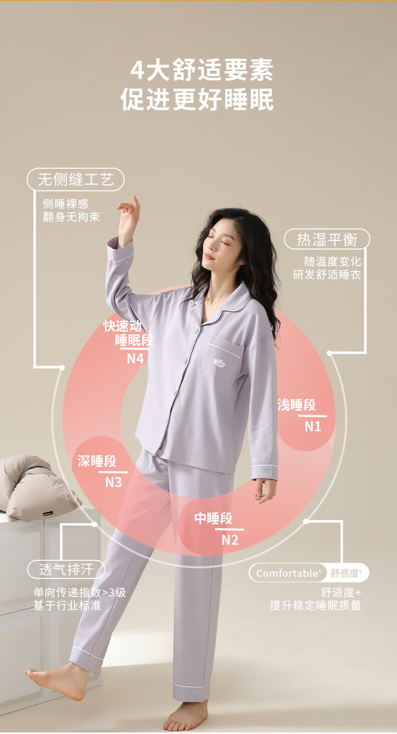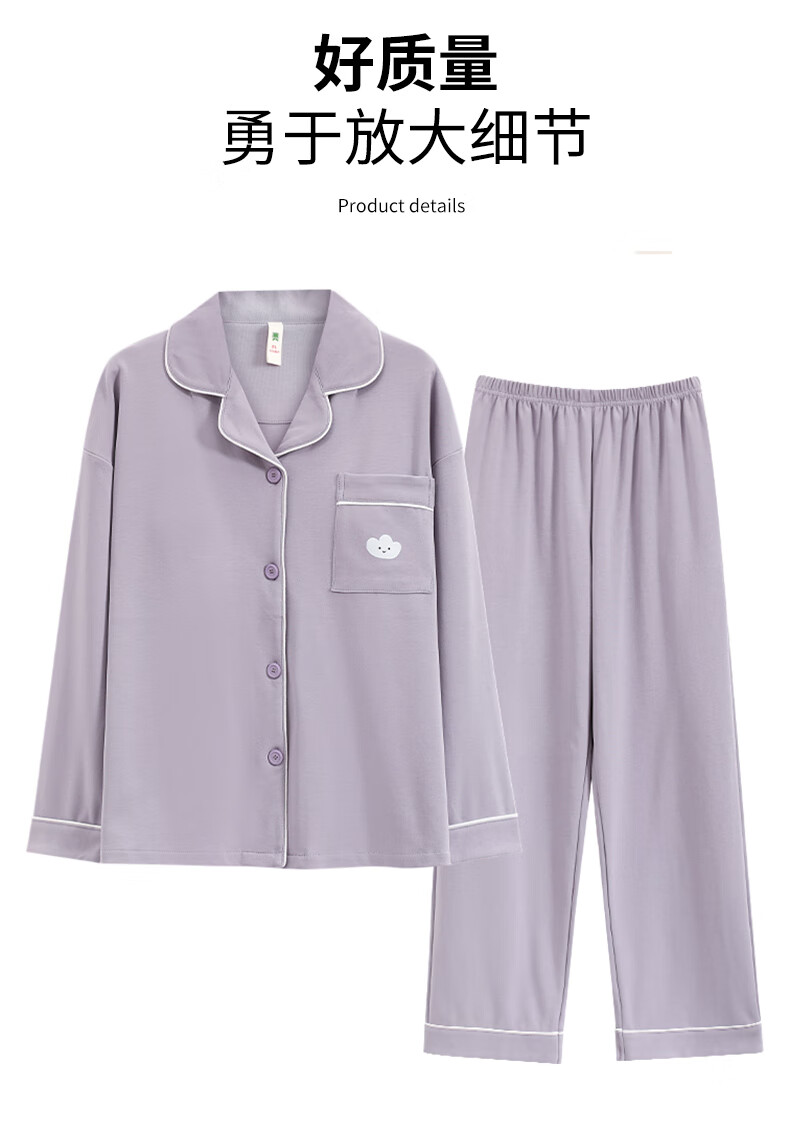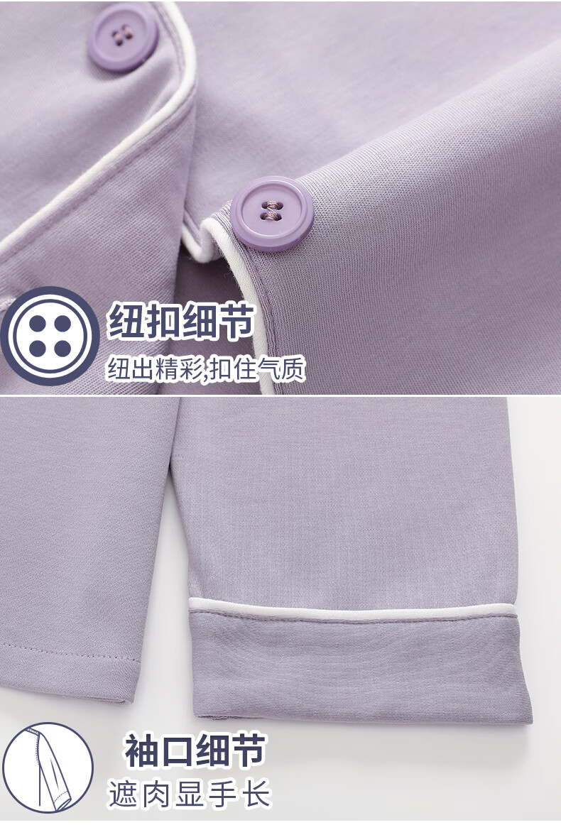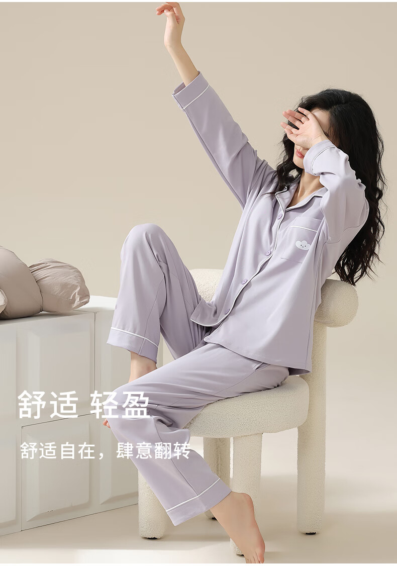 猫人莼棉睡衣女 自带胸垫春秋新款长袖翻领开衫 可外穿家居服大码套装 奶杏色【纯棉紧密 | 自带胸垫】 XL