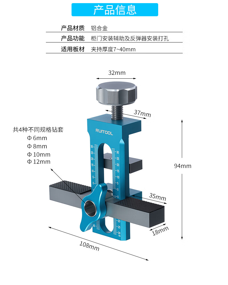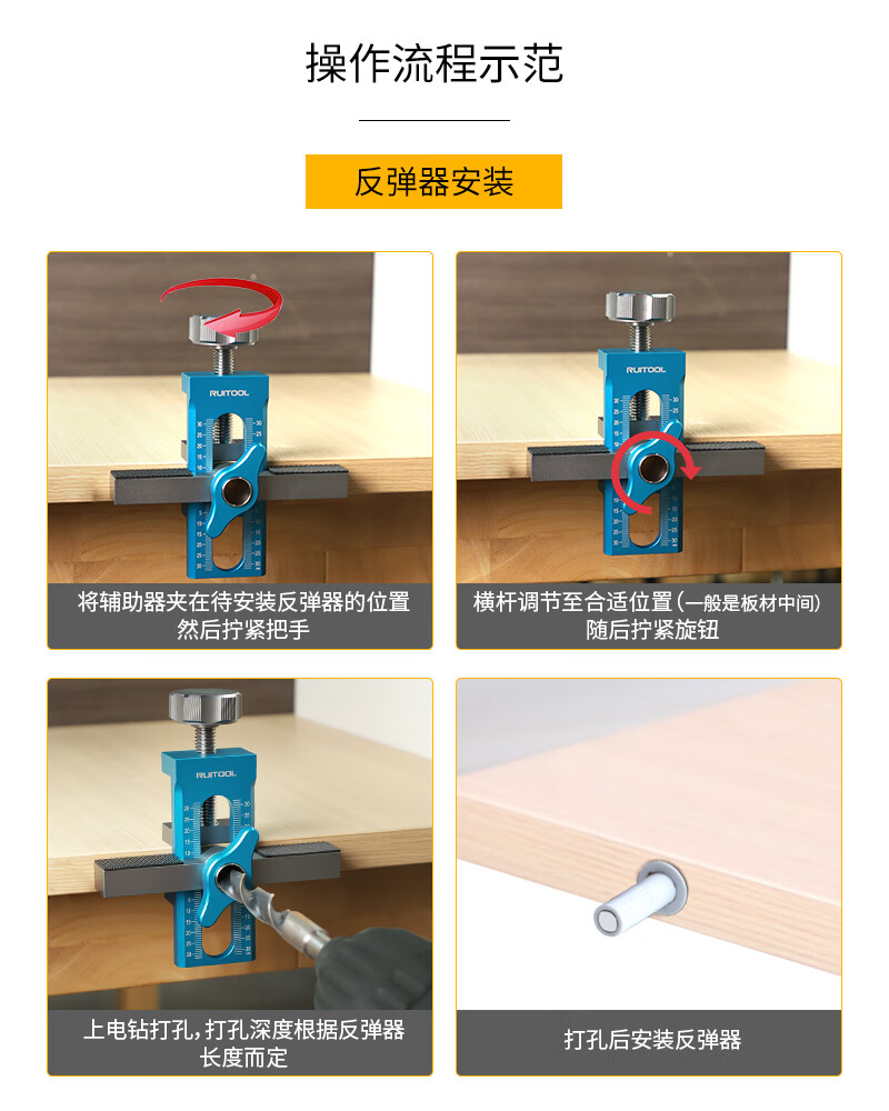 RUITOOL柜门安装辅助器木工反弹器开孔器橱柜门安装定位神器快速定位工具 柜门抽屉收纳-柜门辅助器+抽屉夹