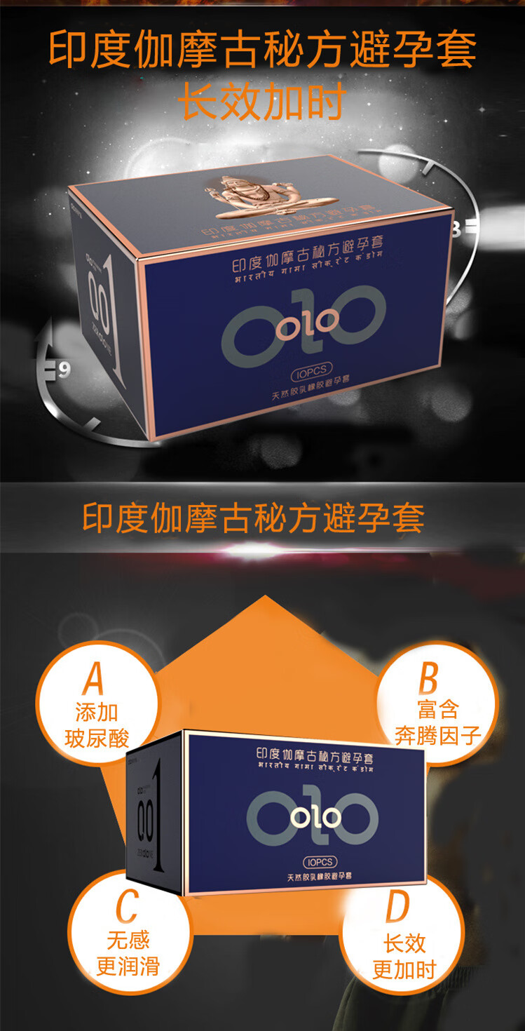OLOOLO印度伽摩延时套10只蓝色安全保护套避孕套