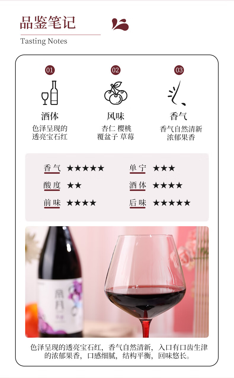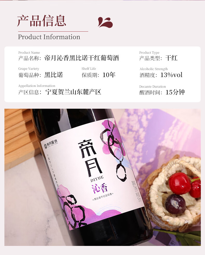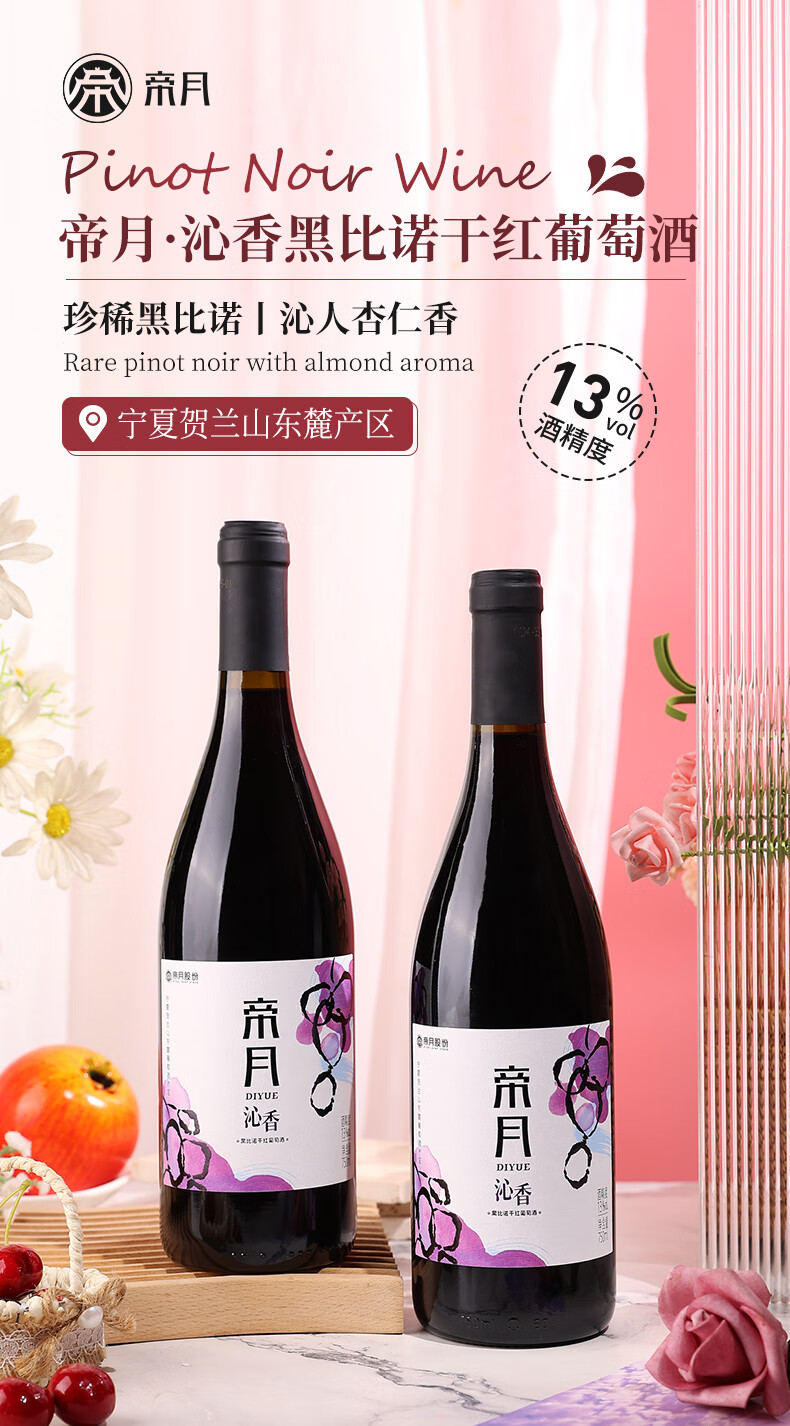 帝月葡萄酒13度沁香宁夏贺兰山黑比诺干红甜葡萄热红酒微醺年货送礼 沁香 750ml*1瓶【赠开瓶器】