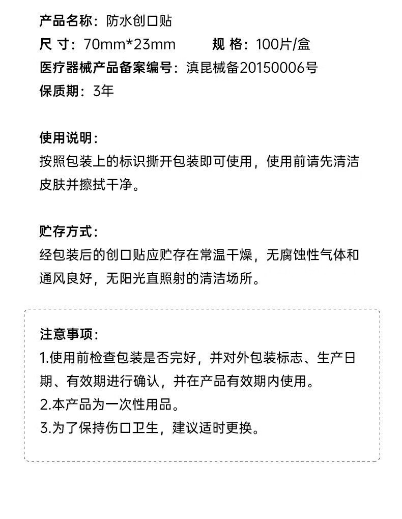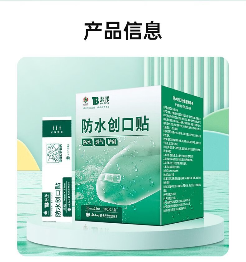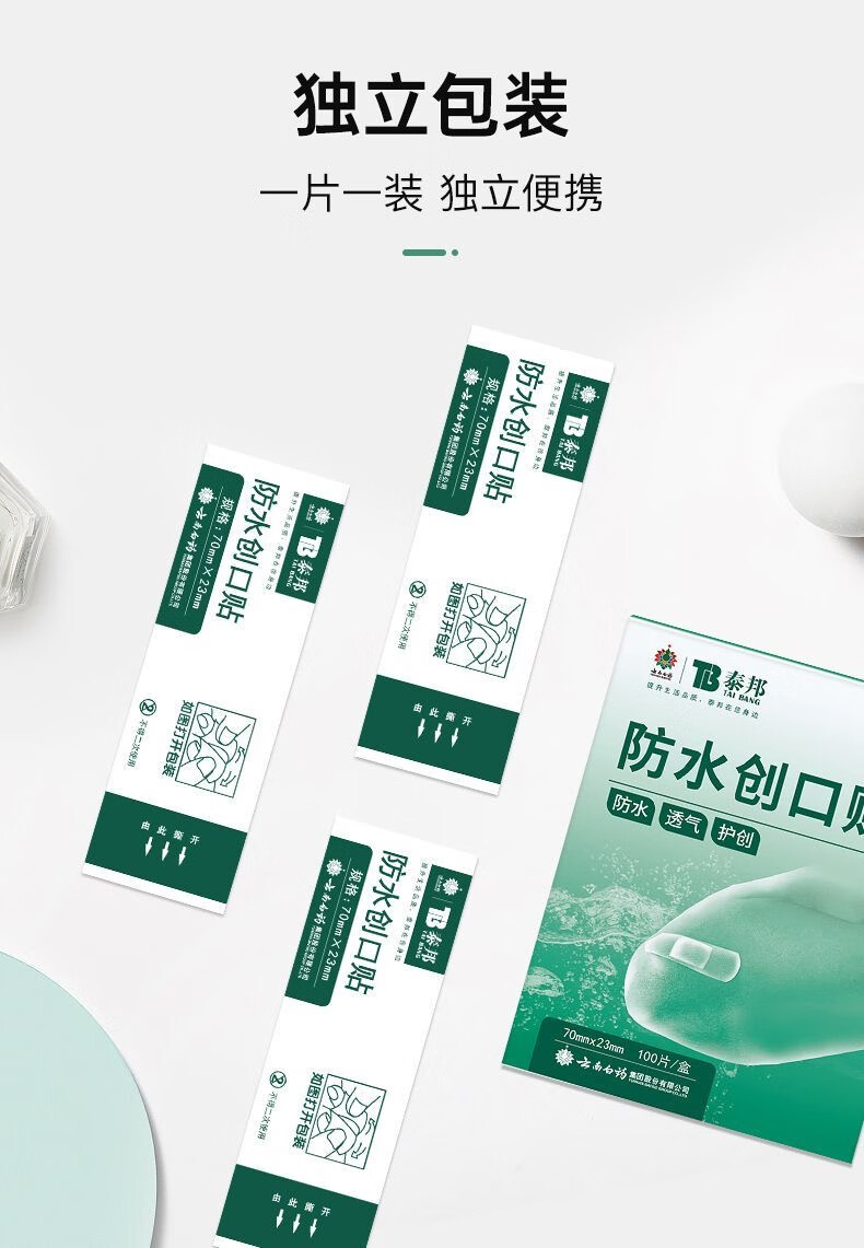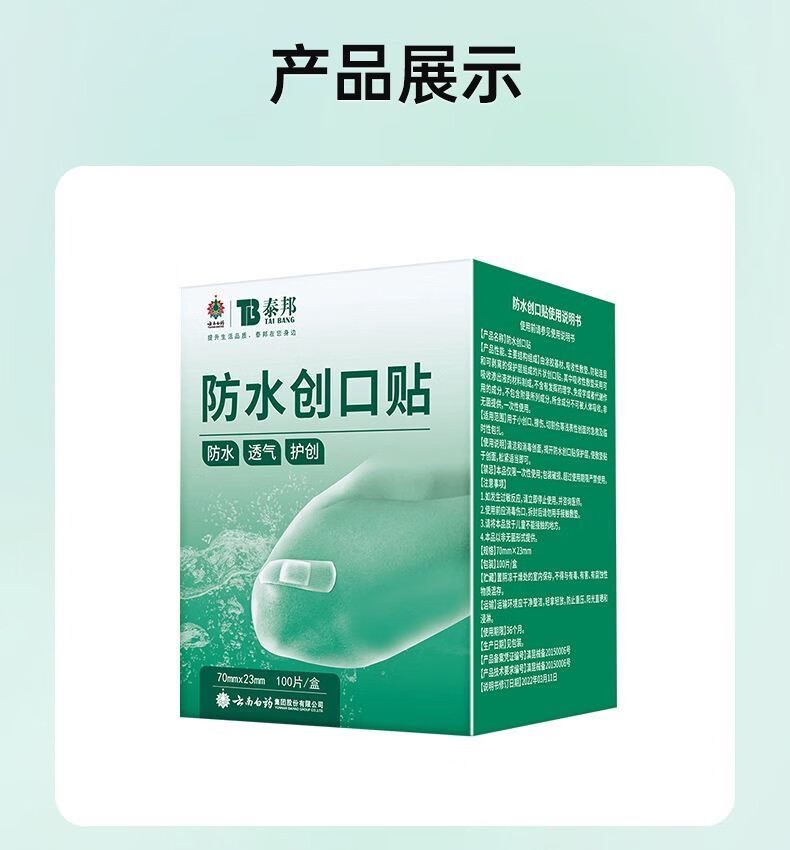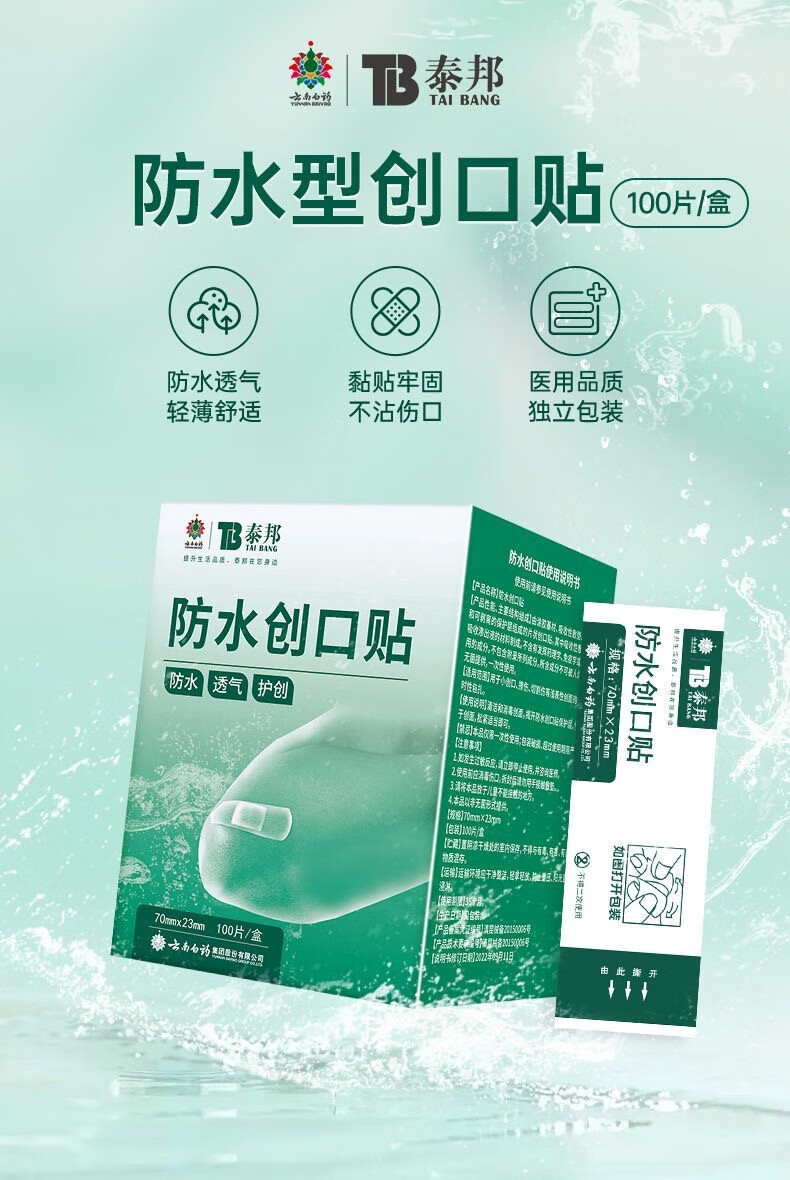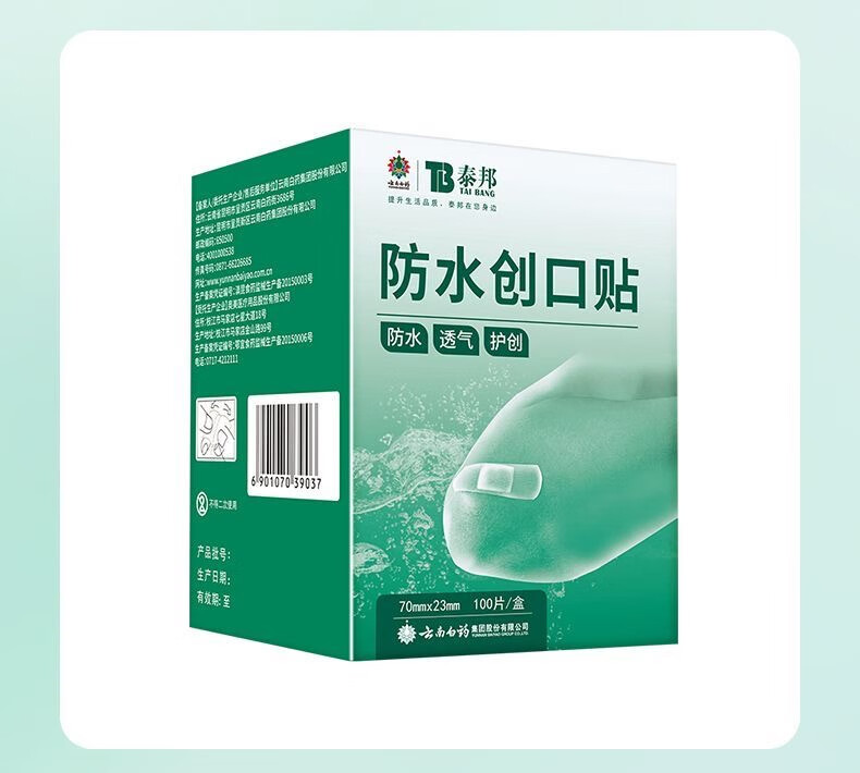 云南白药弹性创可贴家庭常备装防磨脚创口贴透气女神高跟鞋伴侣防水 云南白药 泰邦 防水创口贴轻巧型 100片*1盒