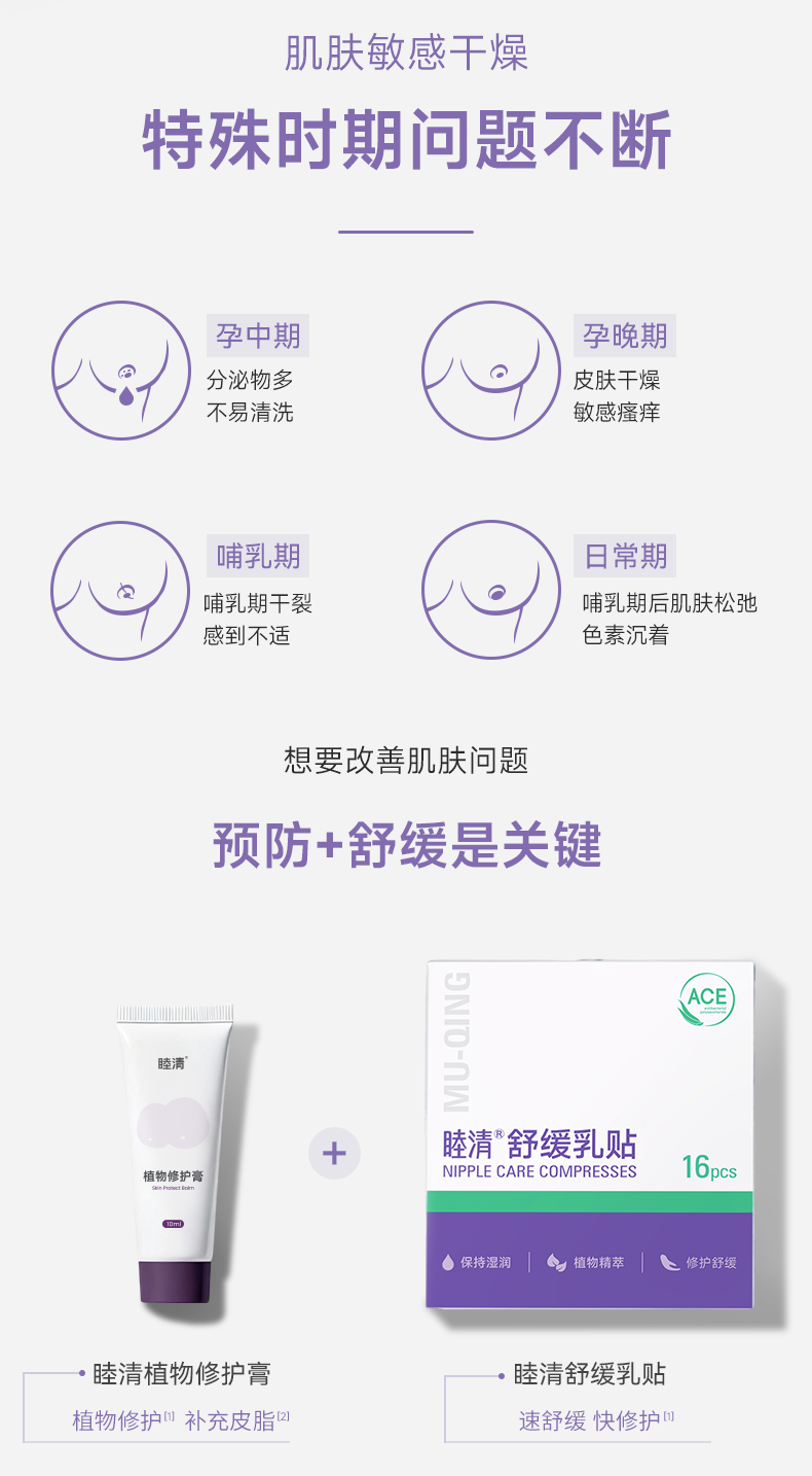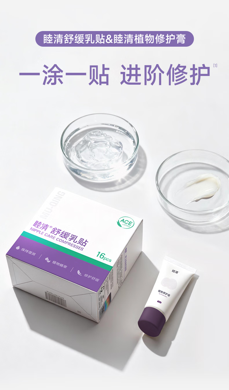 睦清舒缓乳贴乳头霜修护护理组合套装哺乳防皲裂乳头膏贴 16片+30ml 舒缓乳贴16片+乳头膏30ml
