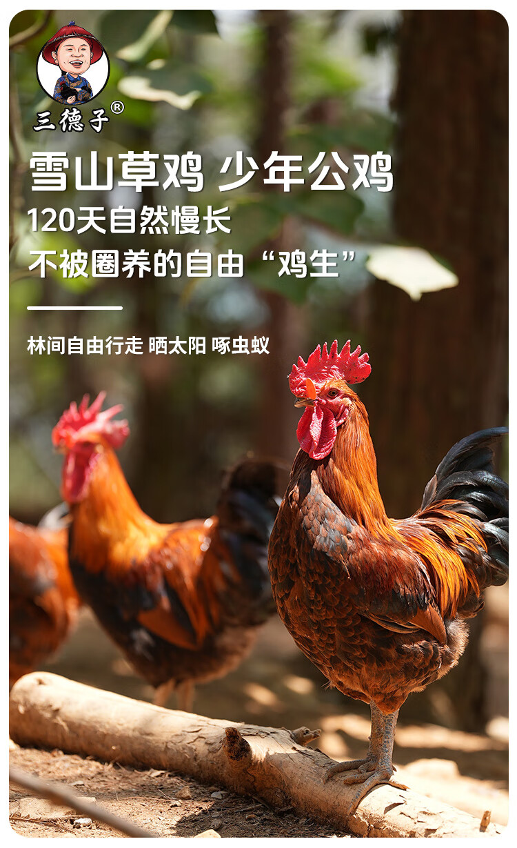 三德子好甄选少年雪山草鸡 散养土鸡生态鸡走地鸡肉生鲜 到手3只鸡(净重6.2-8.4斤)+2盒免切鸡块(600g)