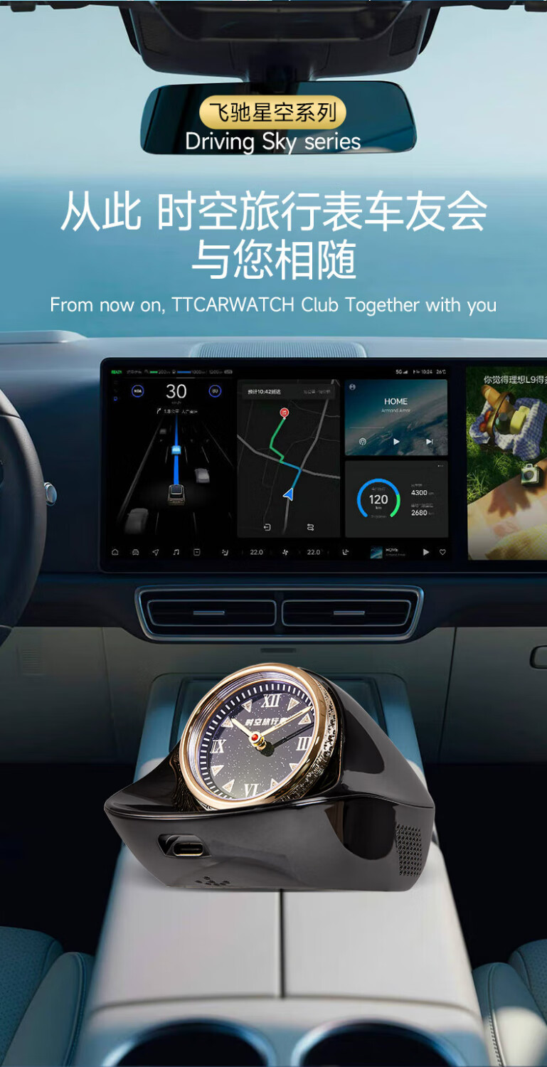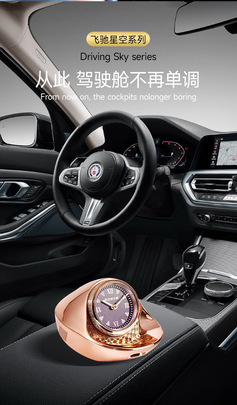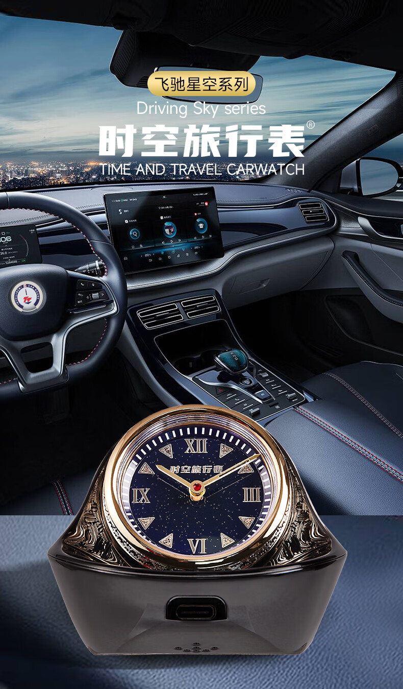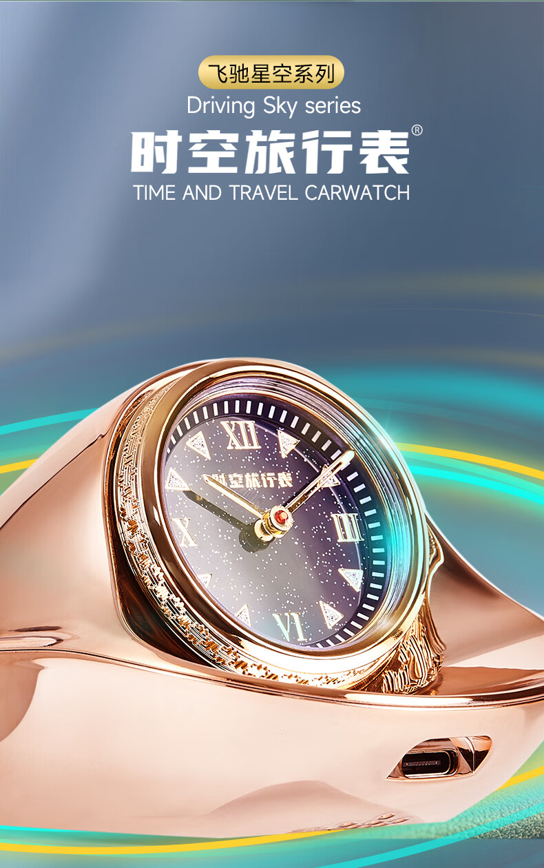 时空旅行表高档车载装饰智能夜光钟表车用时尚个性汽车内饰配件神器摆件 玫瑰金-标准配置+赠送车联网功能