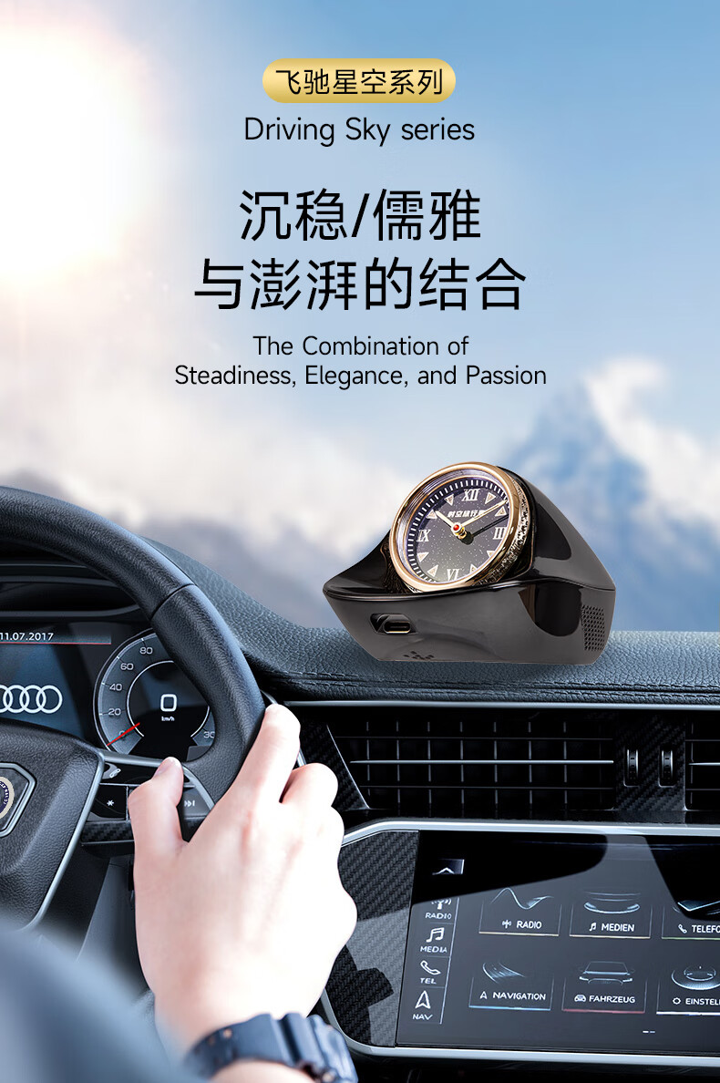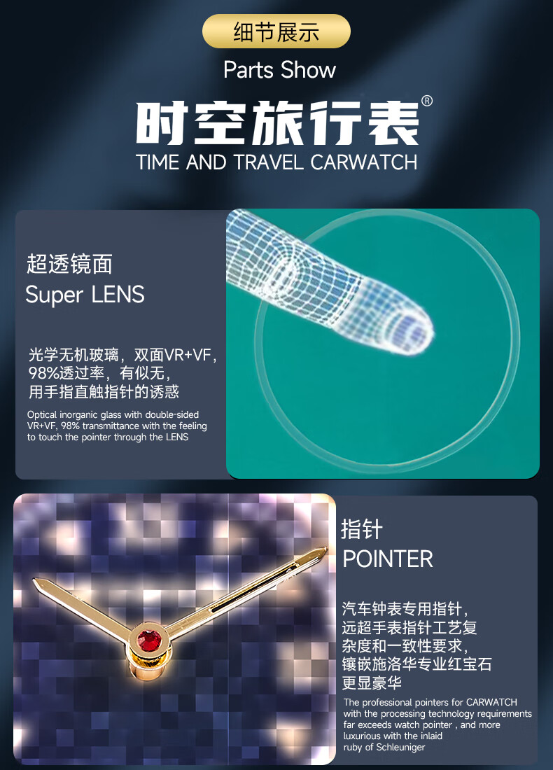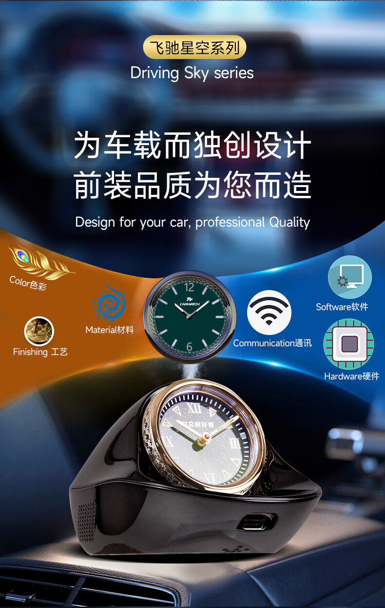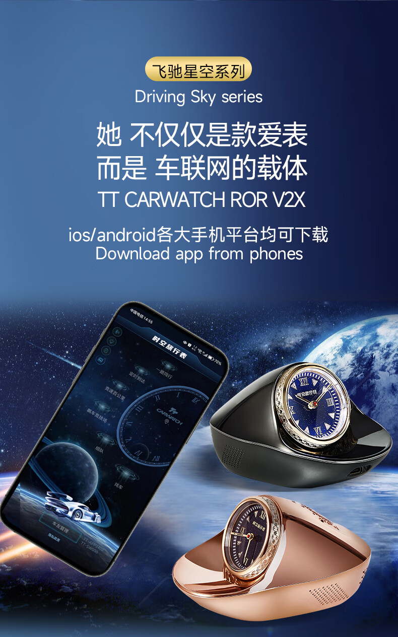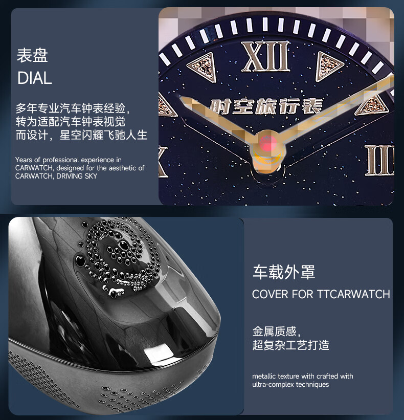 时空旅行表高档车载装饰智能夜光钟表车用时尚个性汽车内饰配件神器摆件 玫瑰金-标准配置+赠送车联网功能