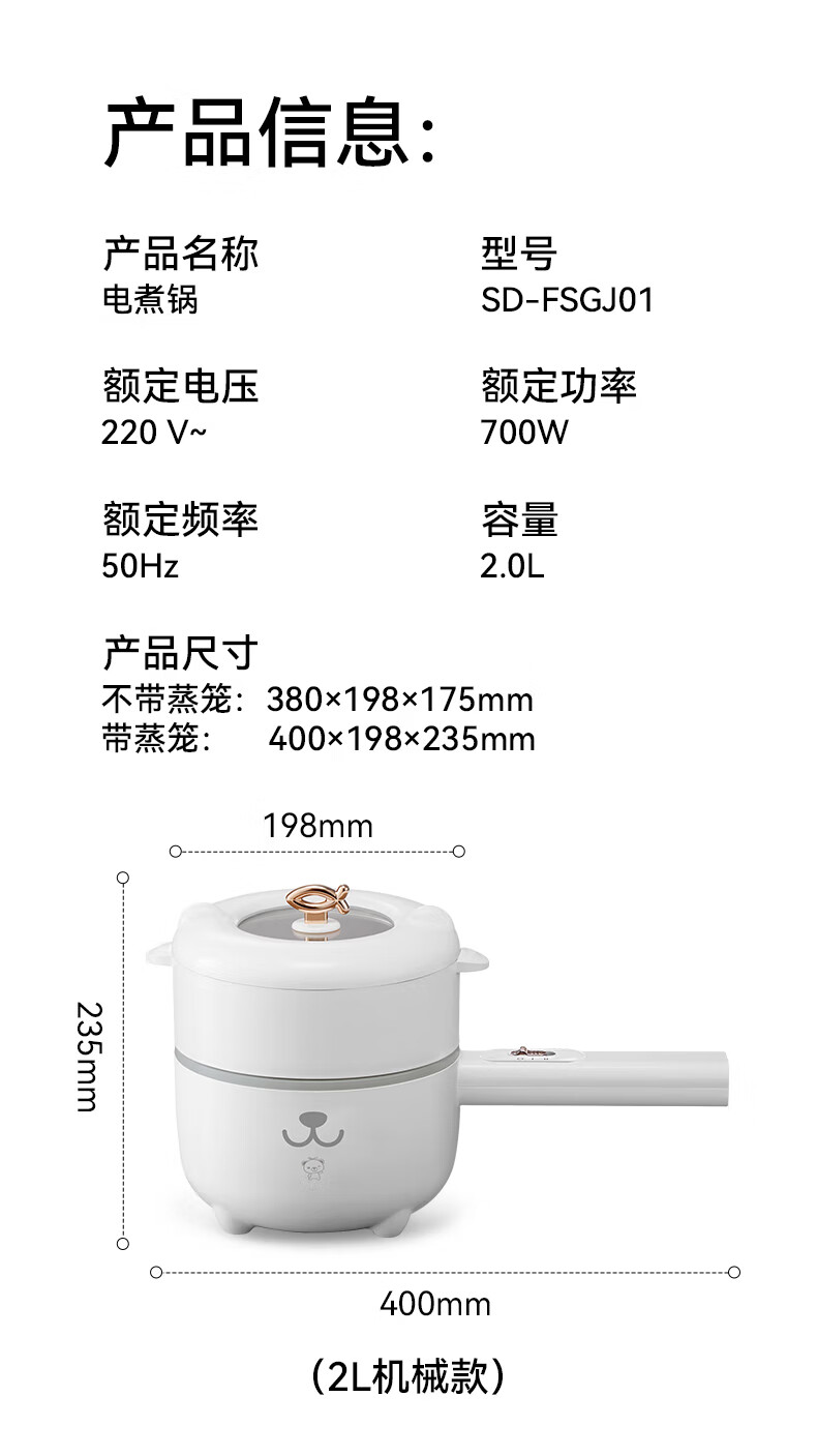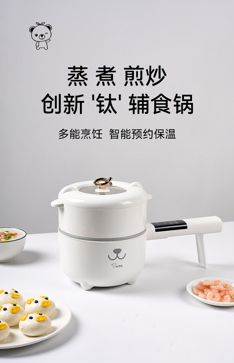 小贝熊(xiaobeixiong)婴儿辅食锅蒸煮宝宝多功能电煮锅火锅煮粥煲饭小型锅煎辅食料理机