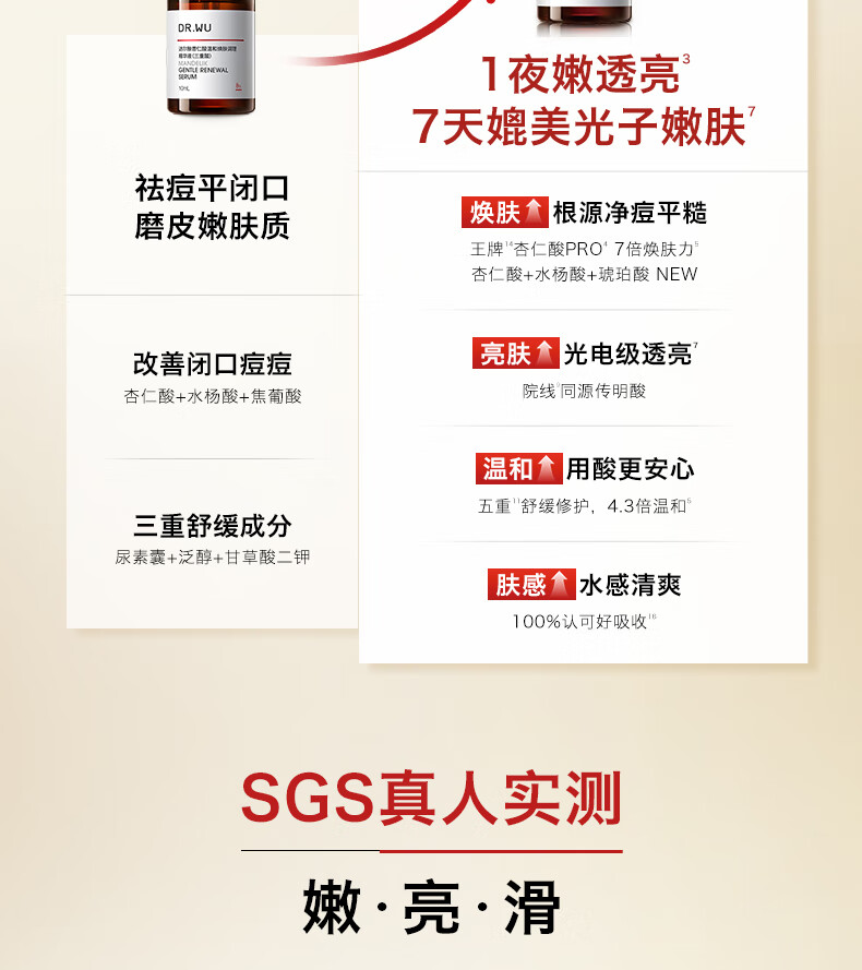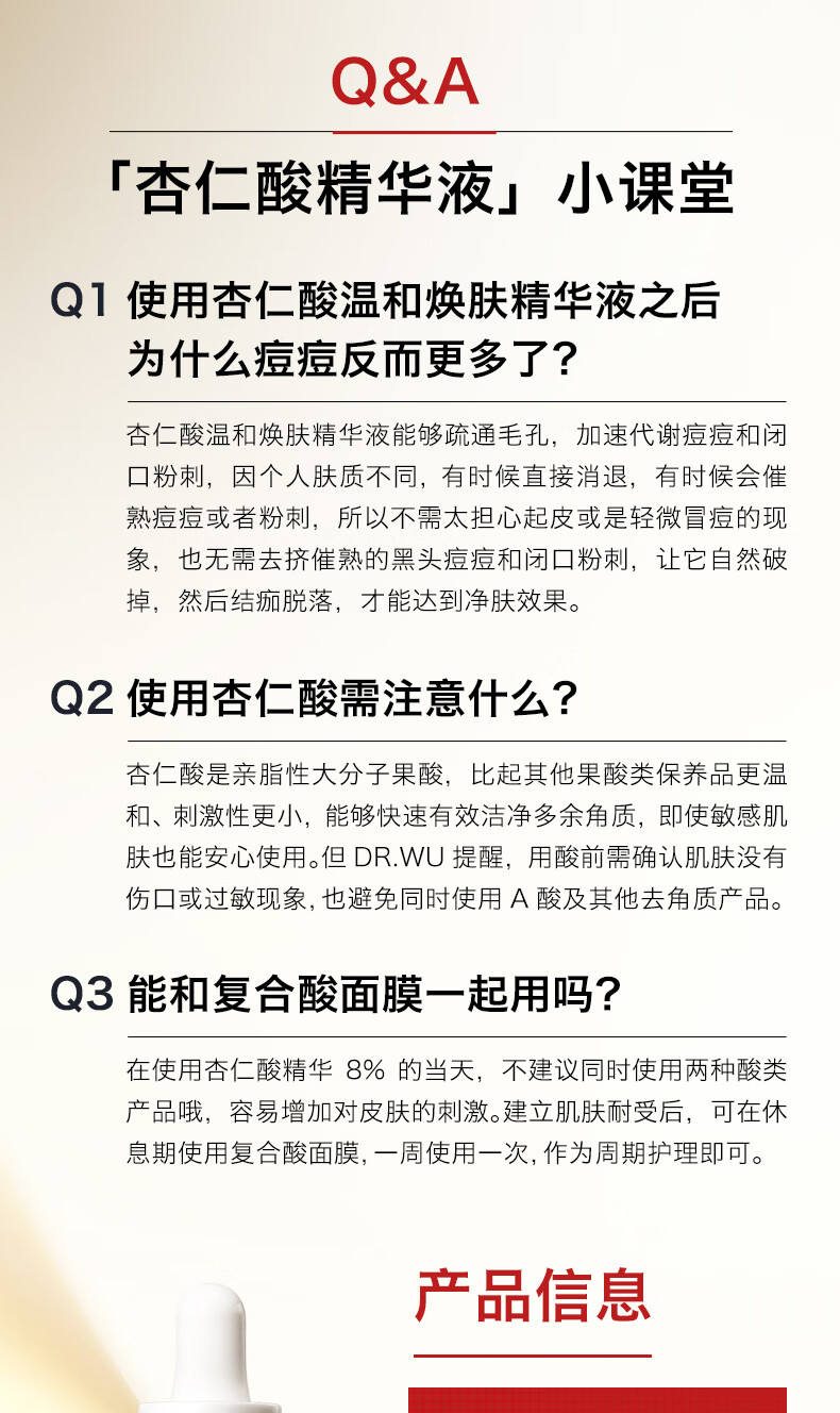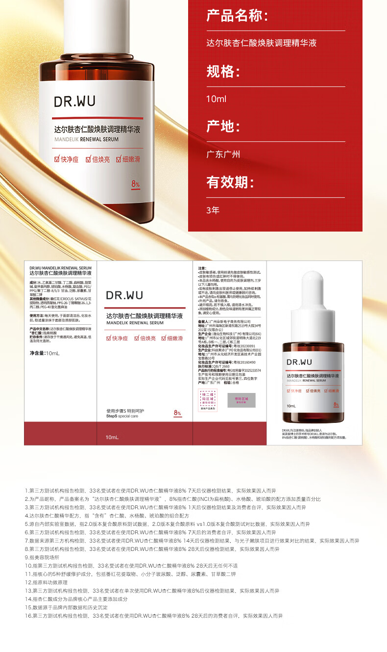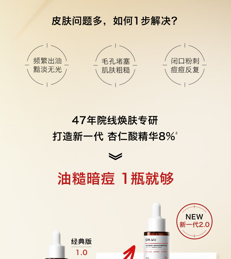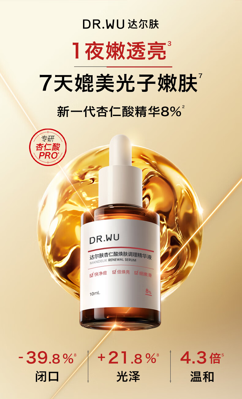 达尔肤(DR.WU)杏仁酸8%精华液10ml*2(2.0升级) 果酸水杨酸控油祛痘精华新年礼物