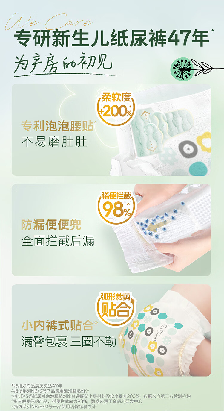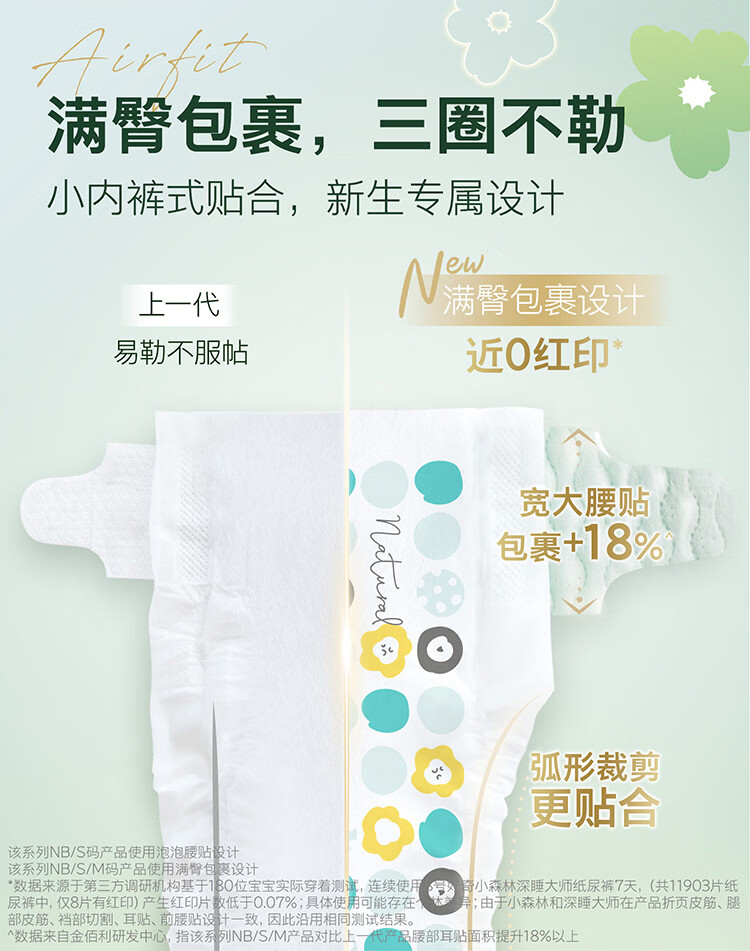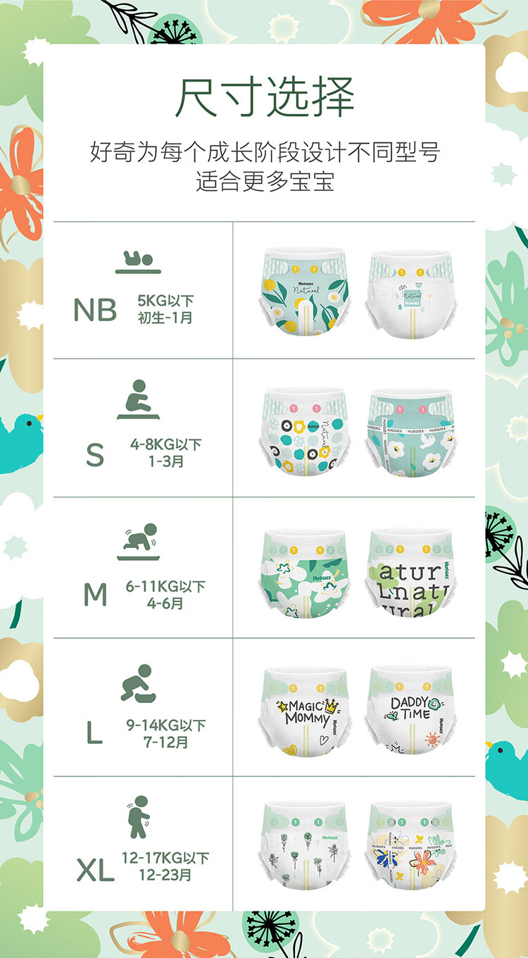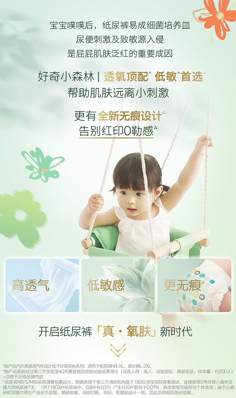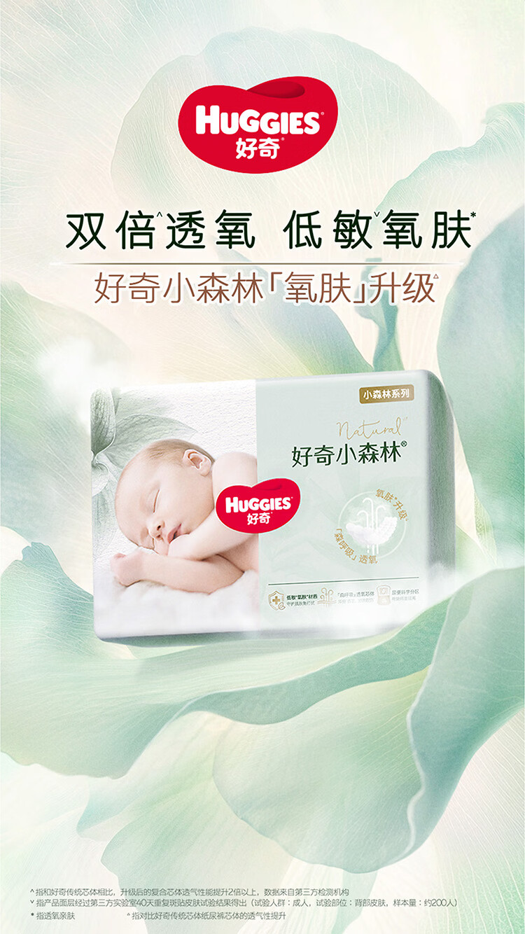 好奇(Huggies)小森林纸尿裤M50片(6-11kg)尿不湿心钻【透氧顶配更低敏】