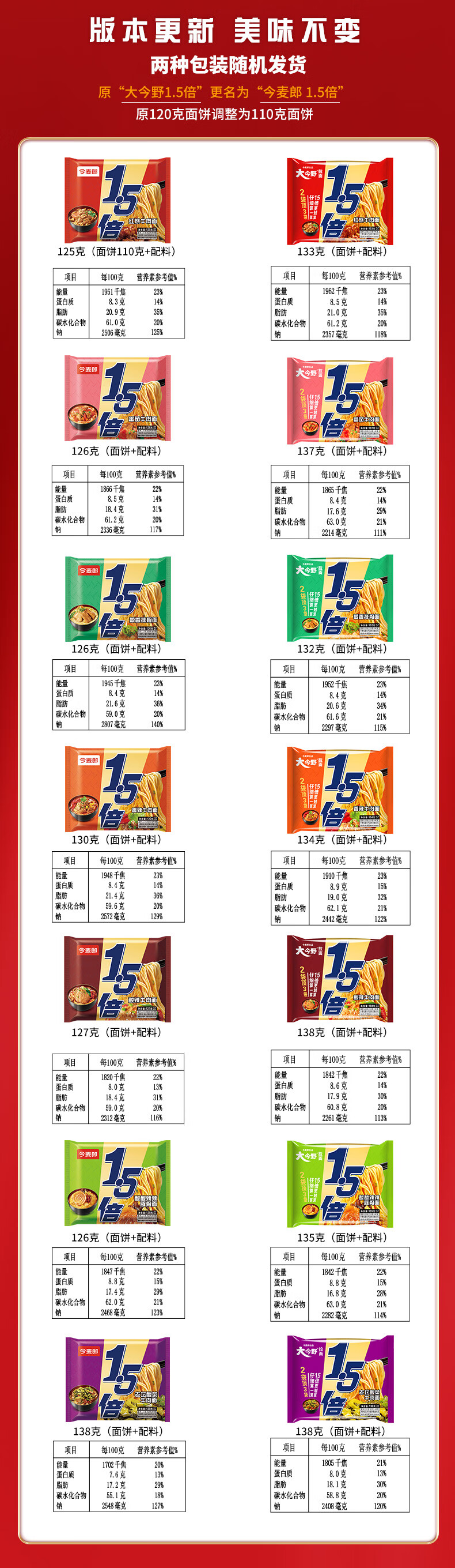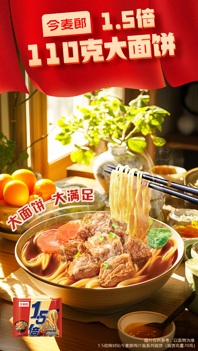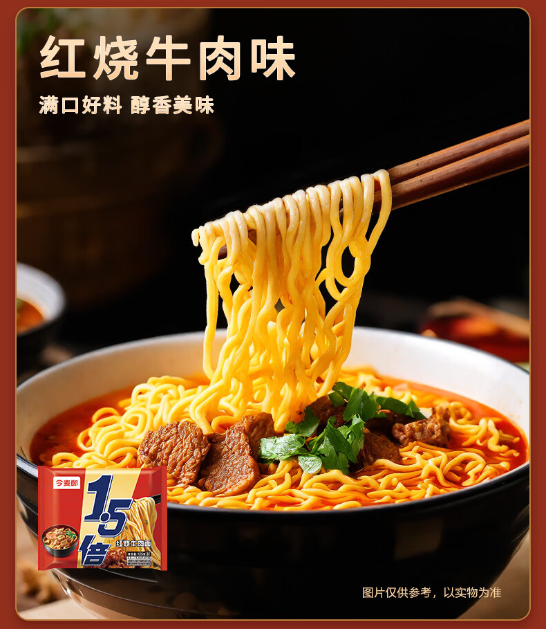 今麦郎方便面泡面袋装 1.5倍速食宵夜红烧牛肉味拉面125g*5袋