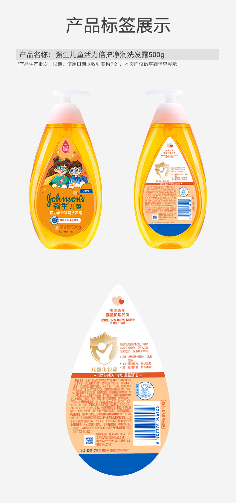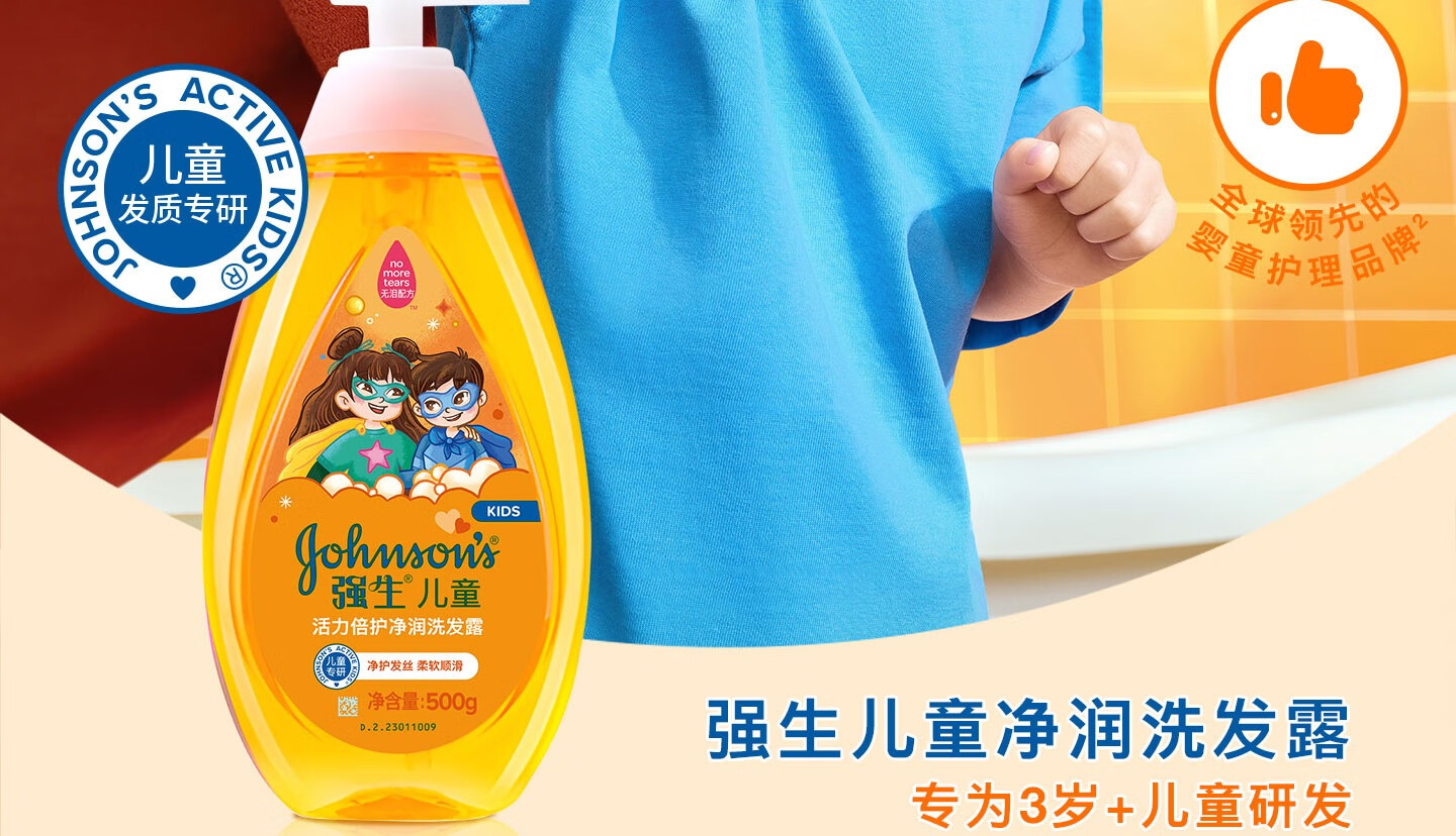 强生(Johnson)儿童倍护净润洗发水500g女童青少年3-6-12岁专用控油蓬松新年礼物