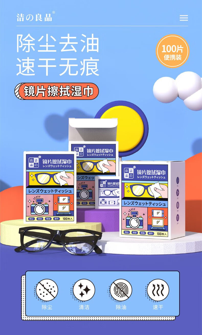 一次性眼镜擦拭湿巾眼镜布擦镜纸清洁眼镜手机屏幕镜头镜片神器 【100片】