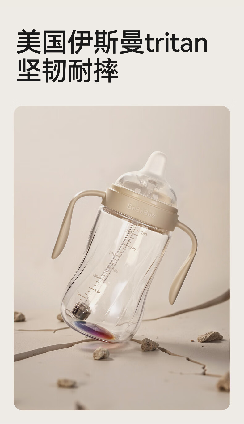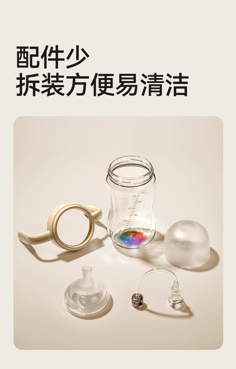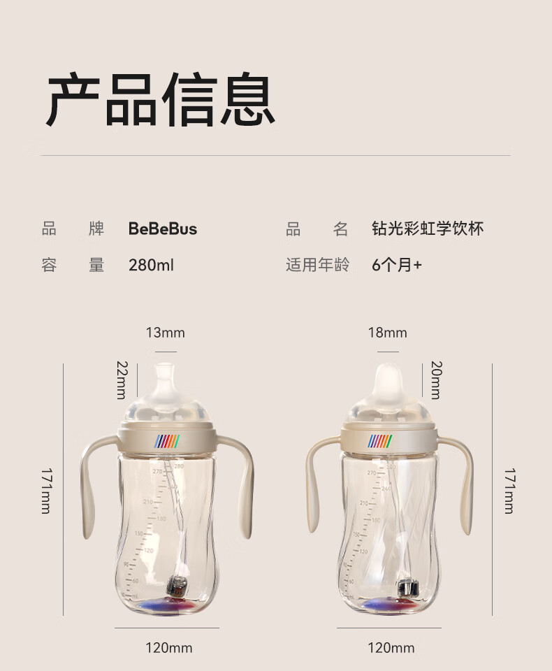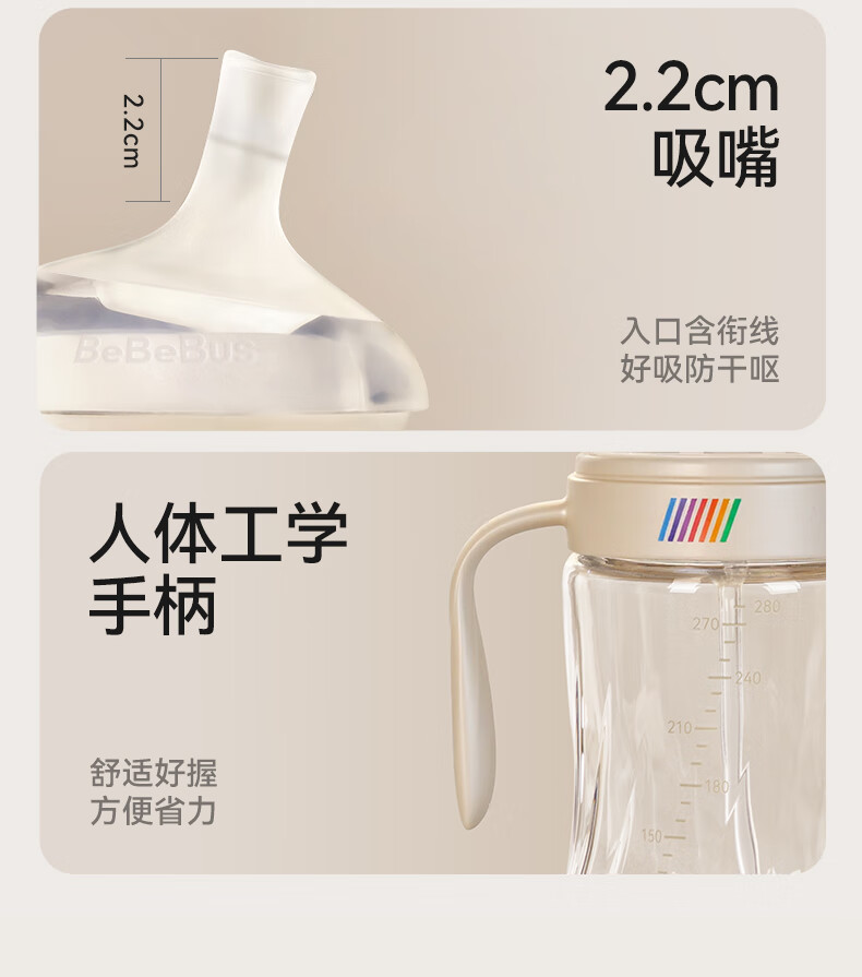 bebebus钻光学饮杯鸭嘴杯婴儿水杯6个月以上牛奶杯奶瓶重力球吸管杯280ml