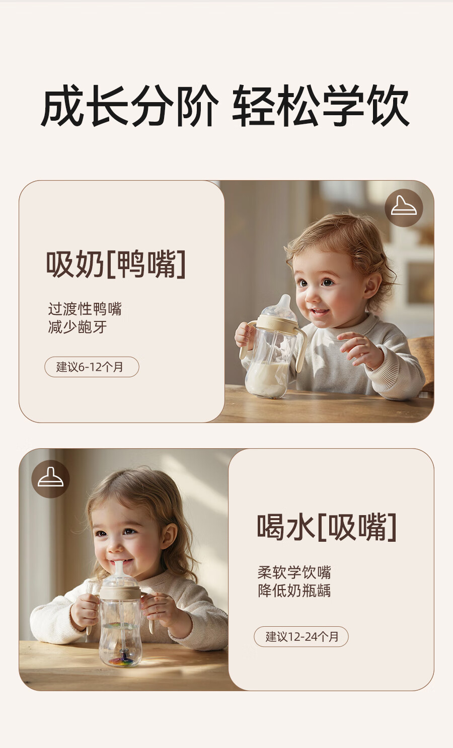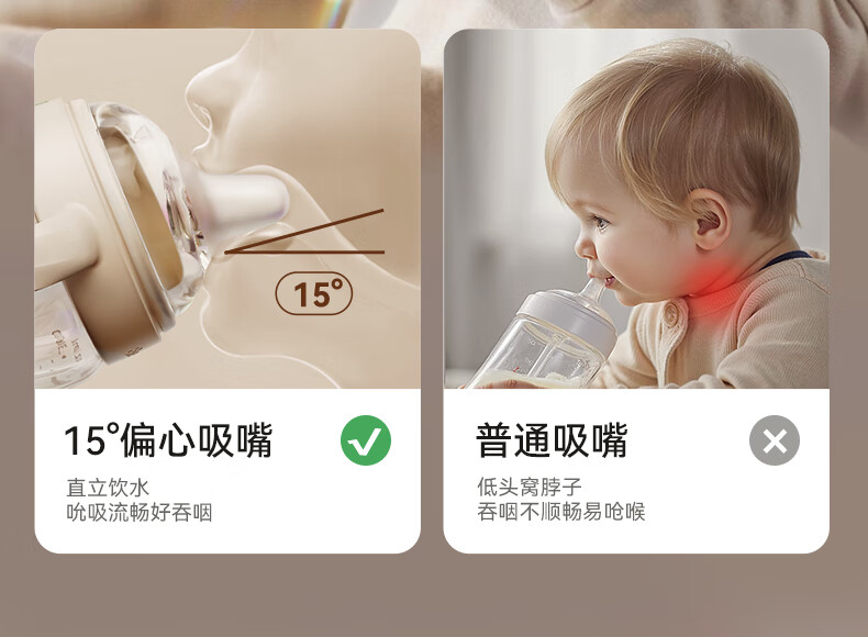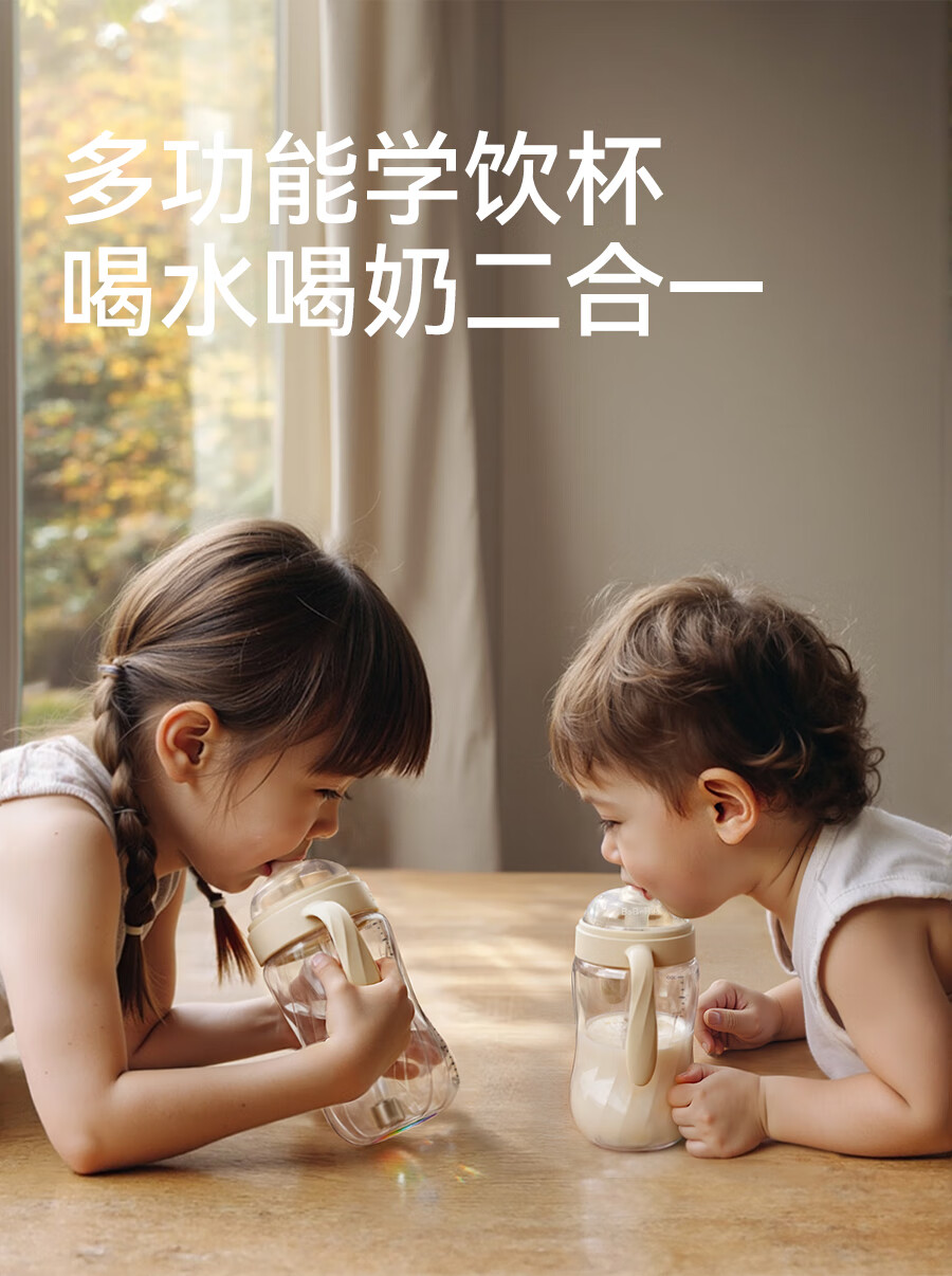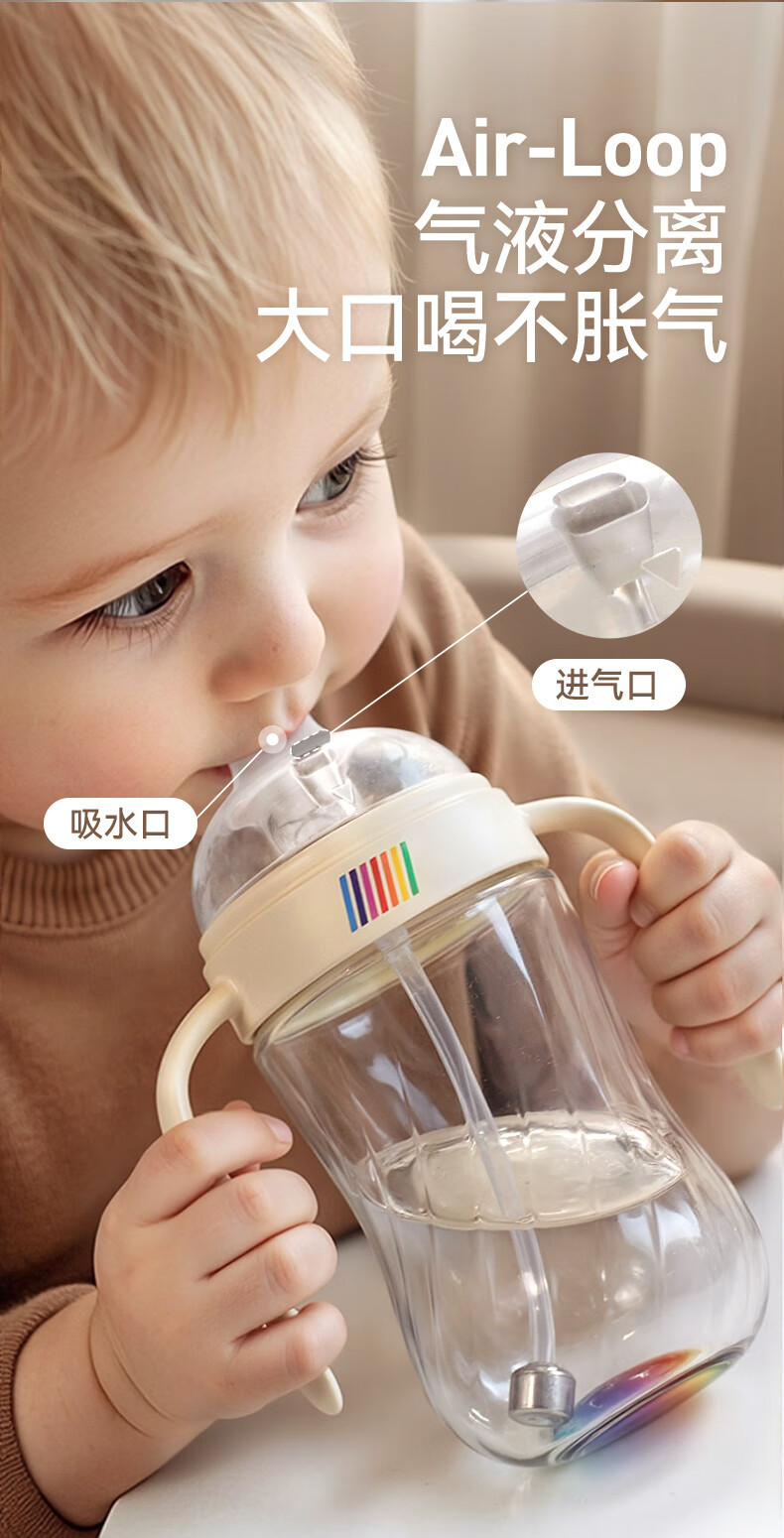 bebebus钻光学饮杯鸭嘴杯婴儿水杯6个月以上牛奶杯奶瓶重力球吸管杯280ml