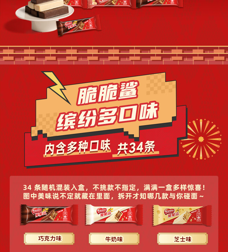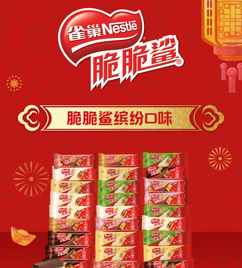雀巢(Nestle)脆脆鲨巧克力牛奶随机34条威化夹心饼干礼盒425g新年年货饼干礼盒