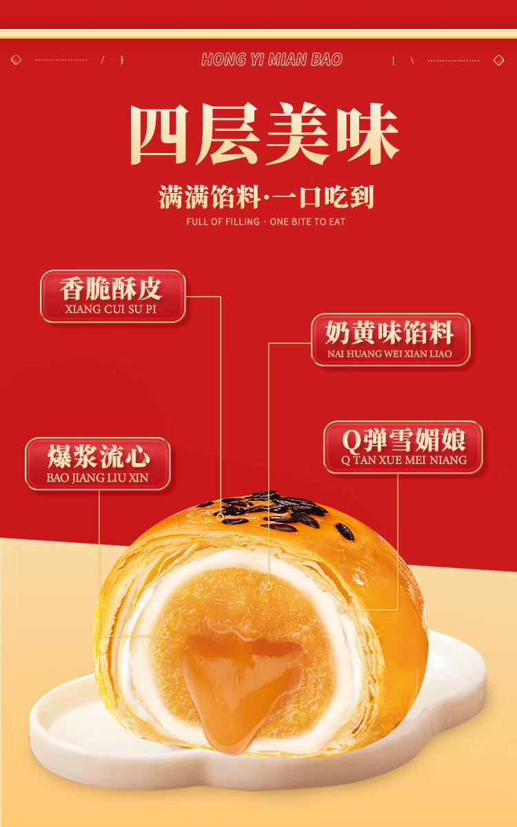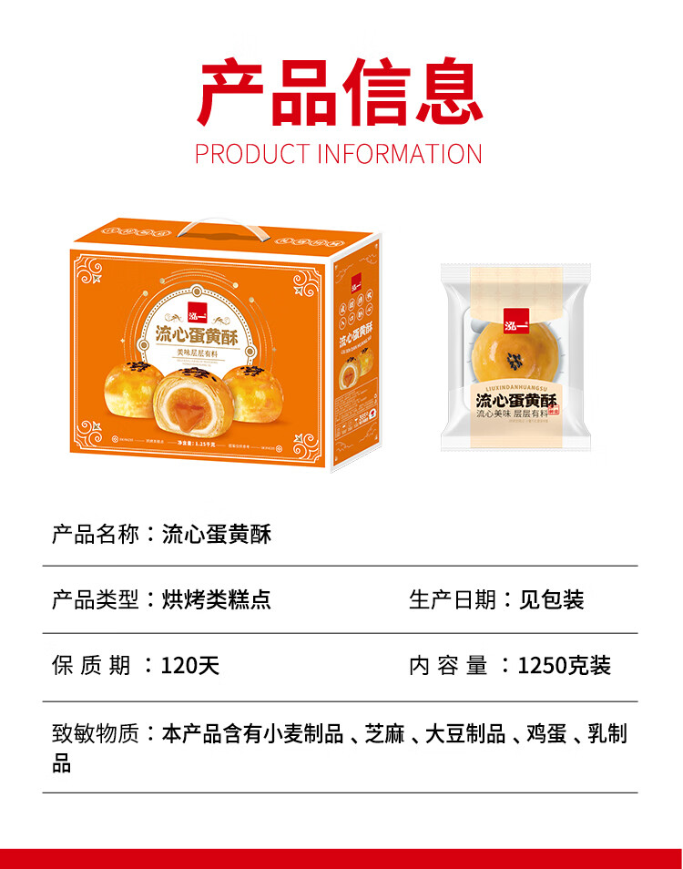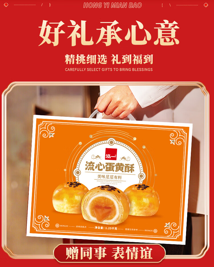 泓一流心蛋黄酥30枚年货礼盒 早餐面包休闲零食中式糕点新年送礼1250g