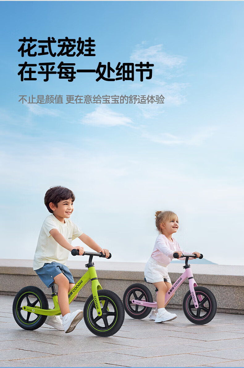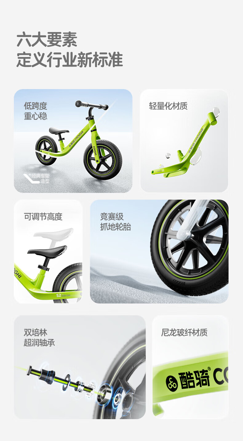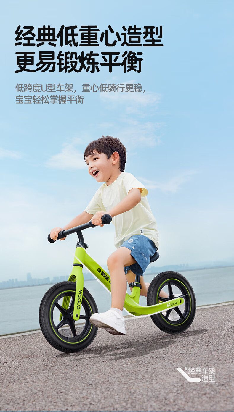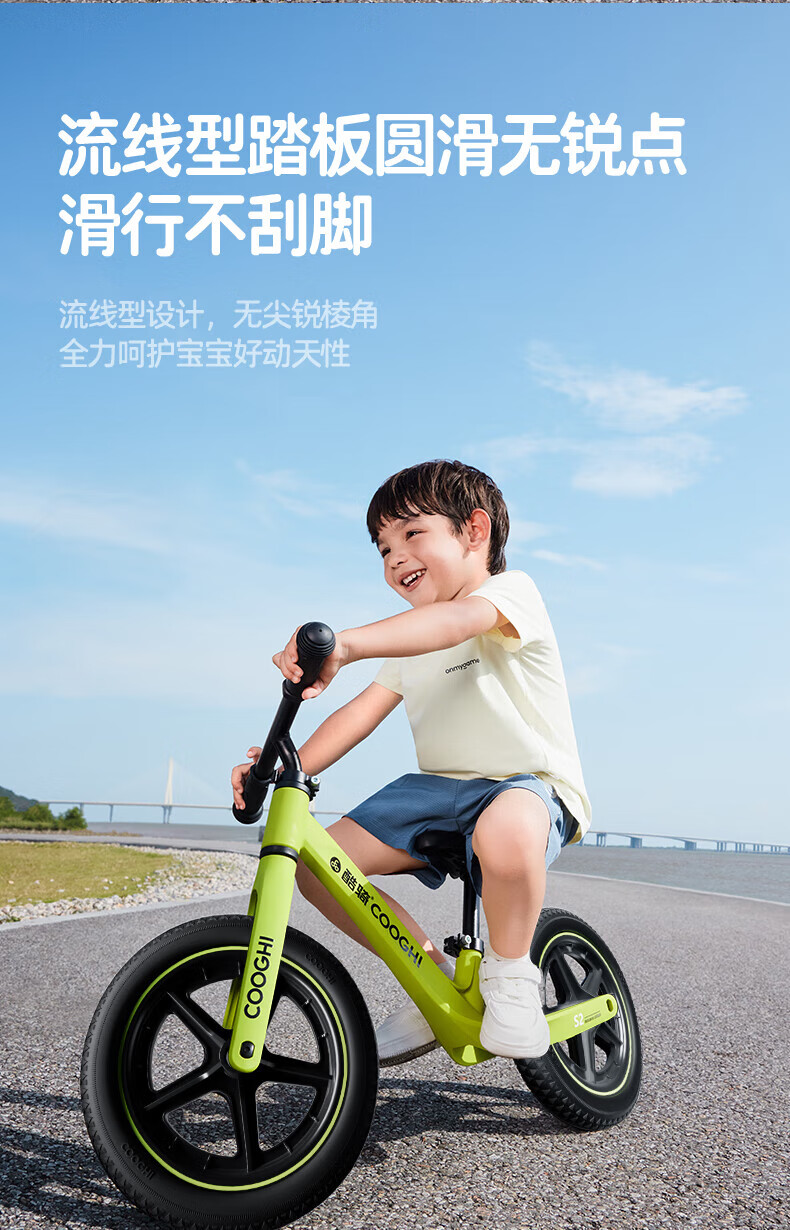 酷骑儿童平衡车1-5岁宝宝滑步车10寸轻便车身初学者S2酷骑绿 酷奇
