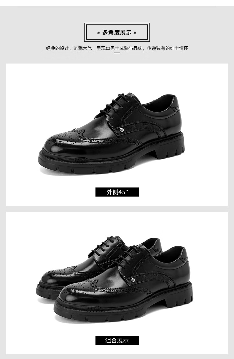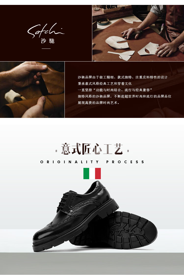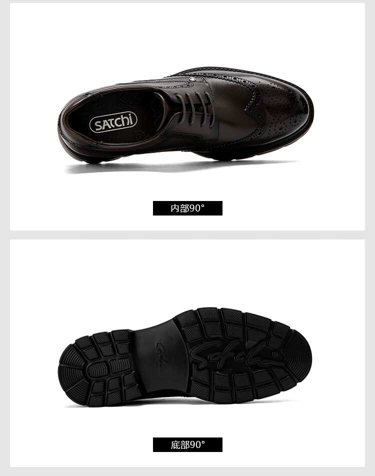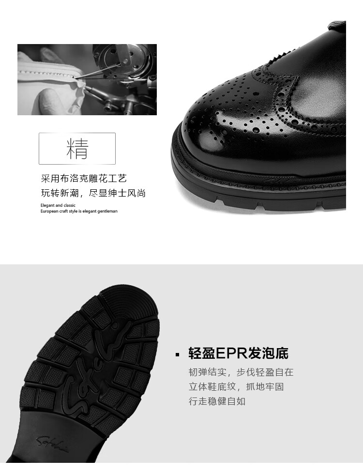 沙驰(SATCHI)男鞋【牛皮】新款轻奢雕花布洛克鞋轻底商务正装皮鞋英伦鞋德比鞋 黑色(49XJB4229) 41