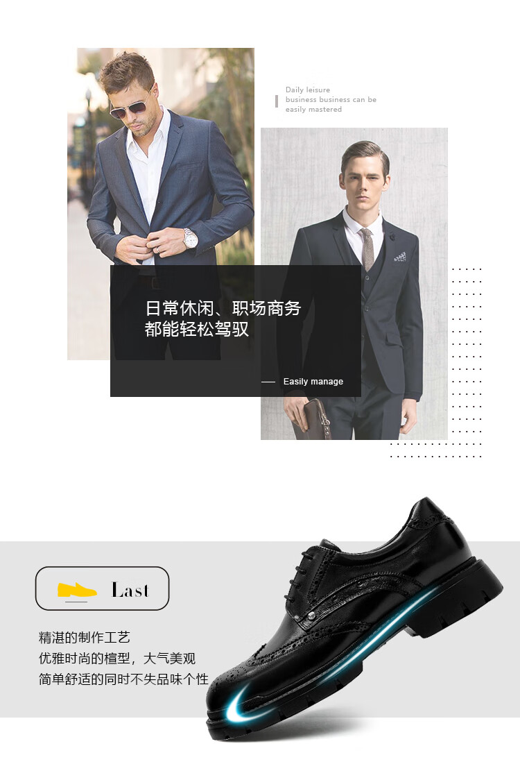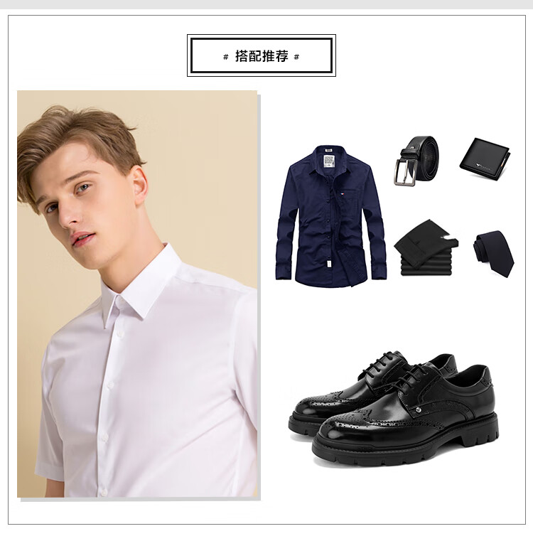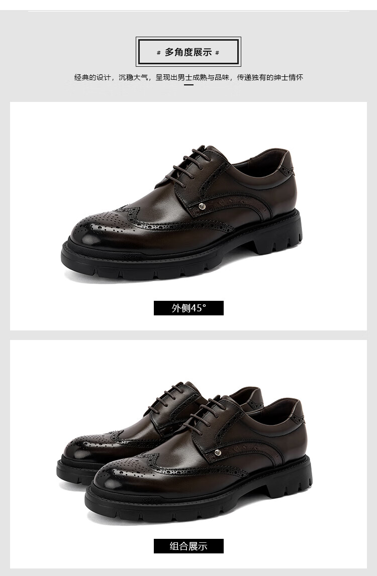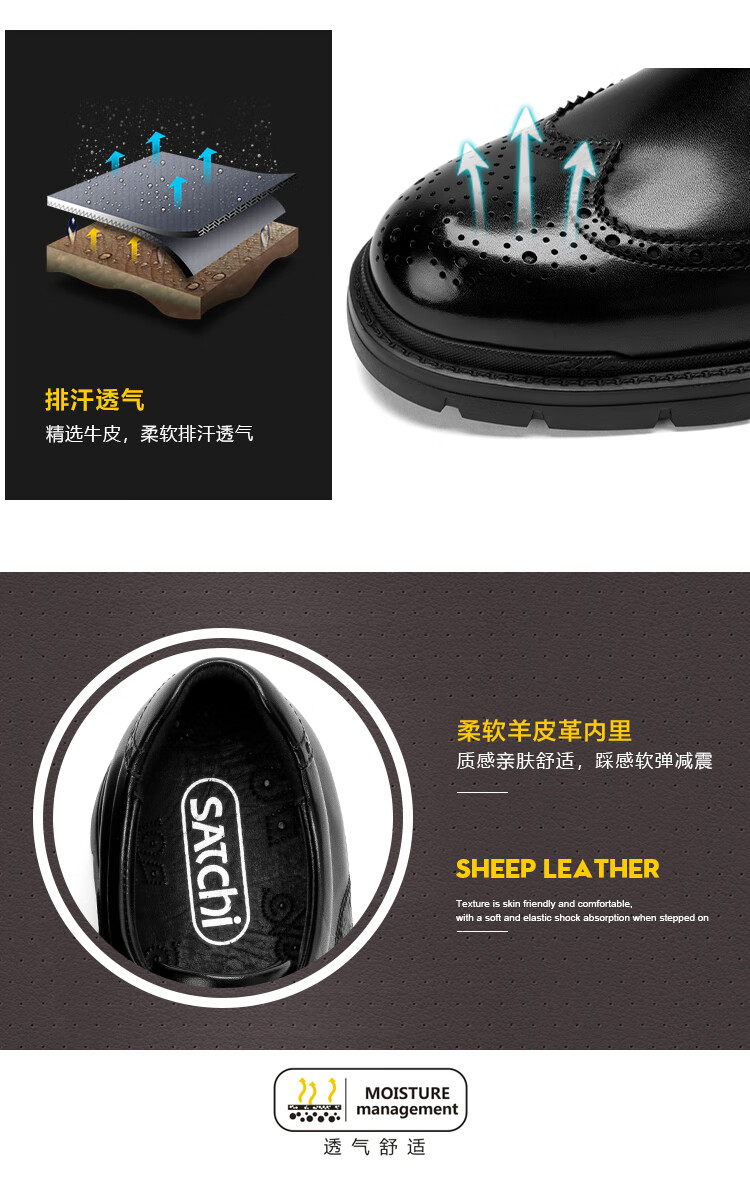 沙驰(SATCHI)男鞋【牛皮】新款轻奢雕花布洛克鞋轻底商务正装皮鞋英伦鞋德比鞋 黑色(49XJB4229) 41