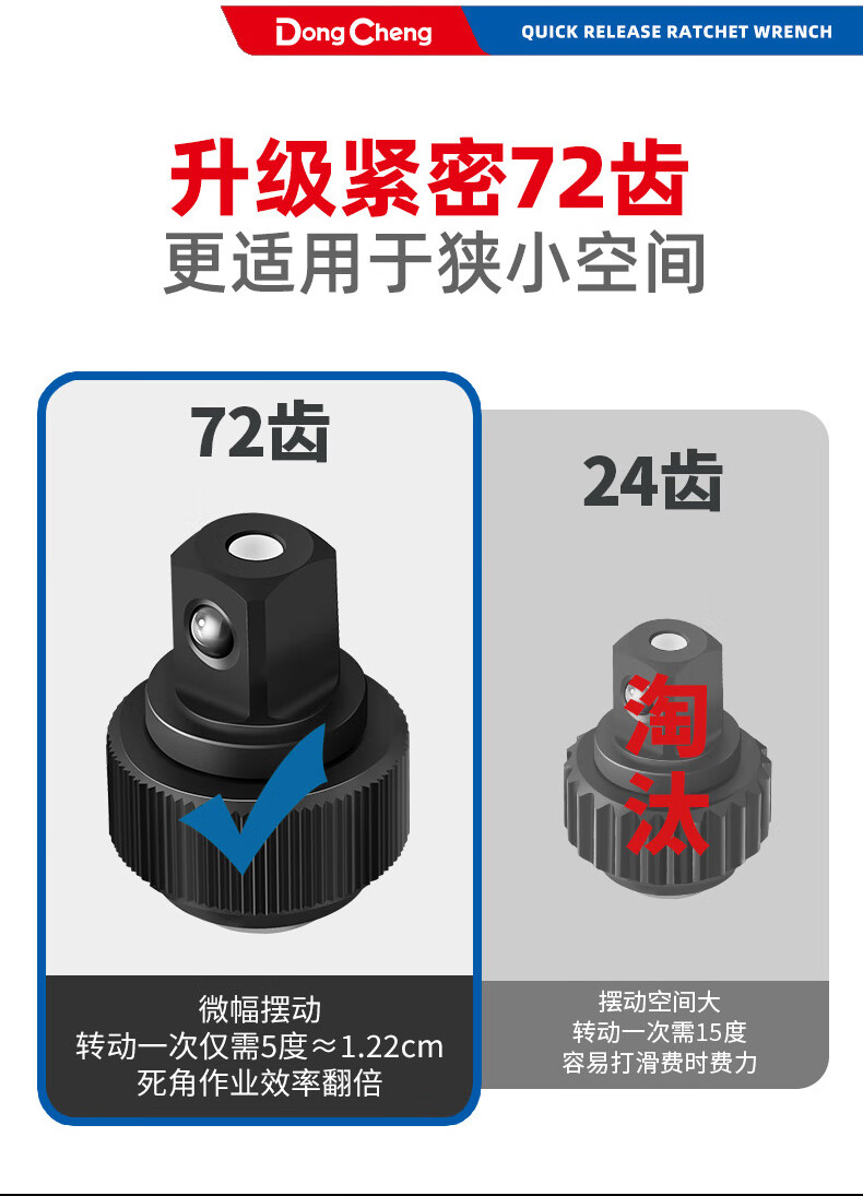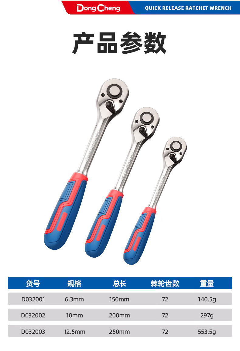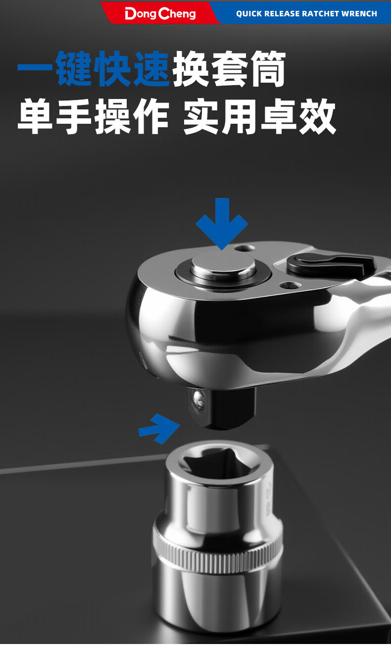 东成 专业快脱棘轮扳手大飞小飞汽修快速脱落省力扳手棘轮套筒扳手 1/4寸专业快脱棘轮扳手D032001