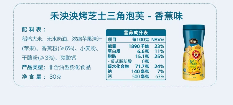 禾泱泱烤芝士三角泡芙 宝宝零食无添加白砂糖泡芙儿童非油炸 烤芝士三角泡芙-香蕉味/30g