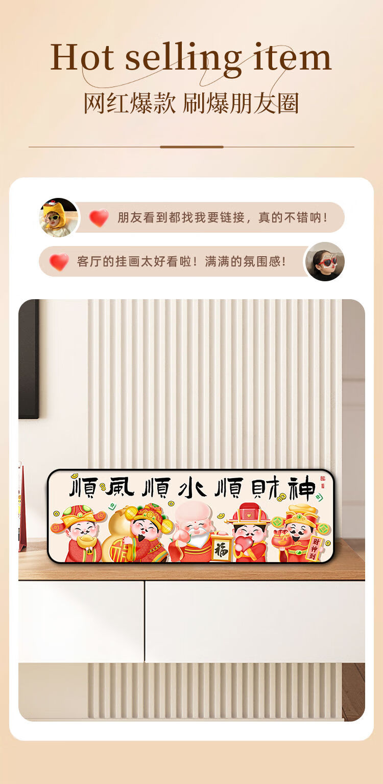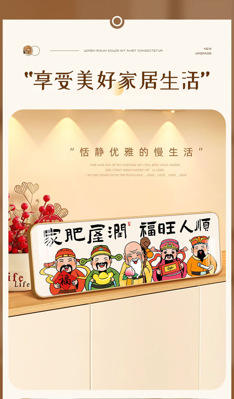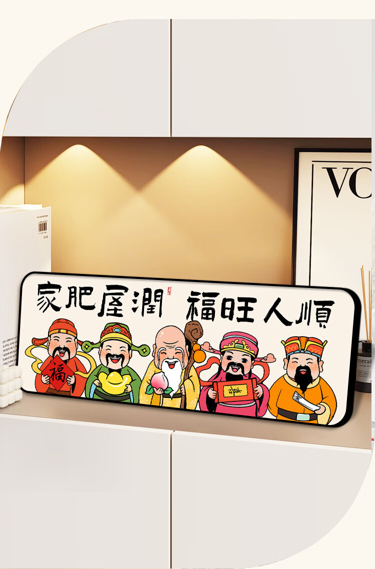 新年财神爷入户门装饰摆件2026新中式家用客厅电视柜摆台桌面摆画 福星高照 30*10 典雅金框 高亮水晶画面摆台