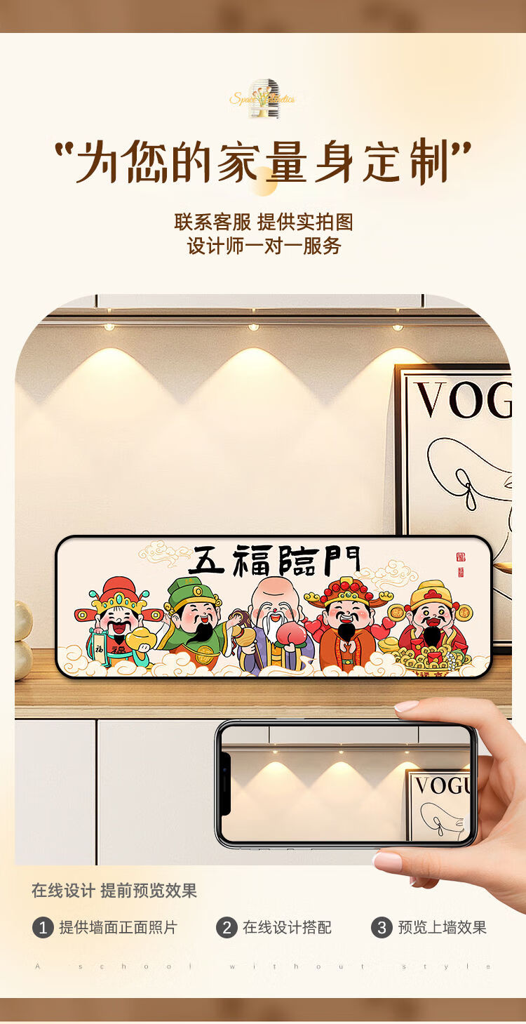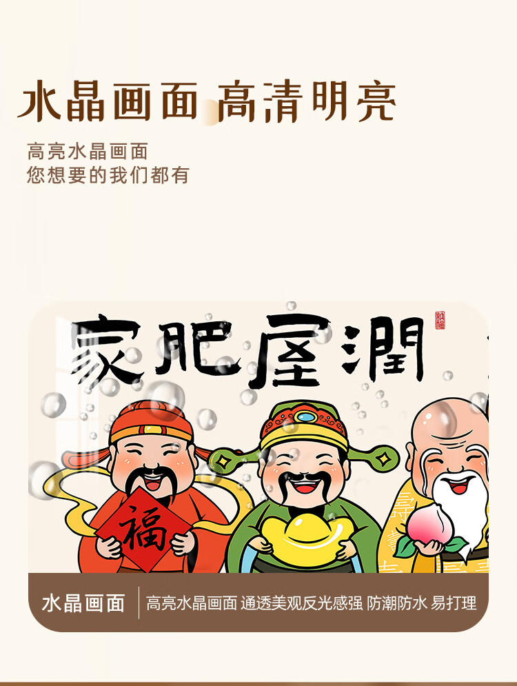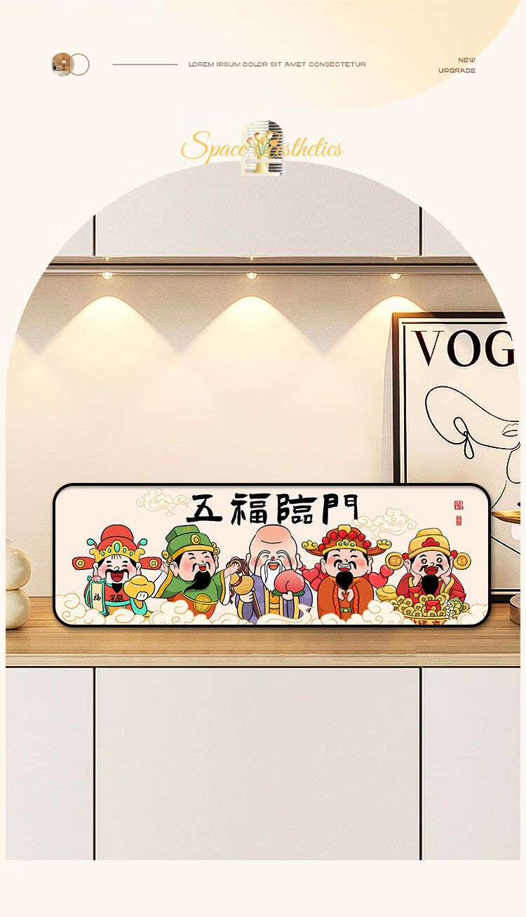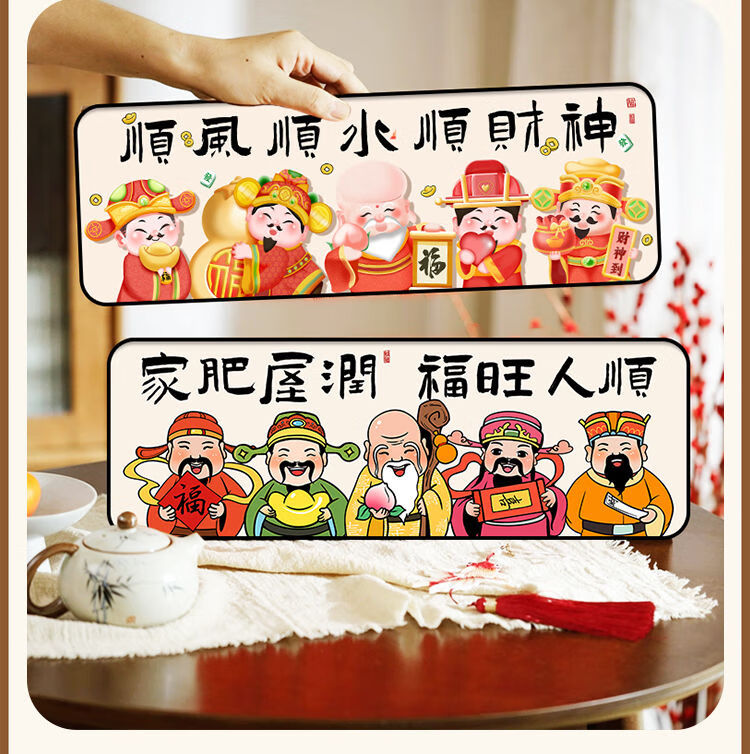 新年财神爷入户门装饰摆件2026新中式家用客厅电视柜摆台桌面摆画 福星高照 30*10 典雅金框 高亮水晶画面摆台