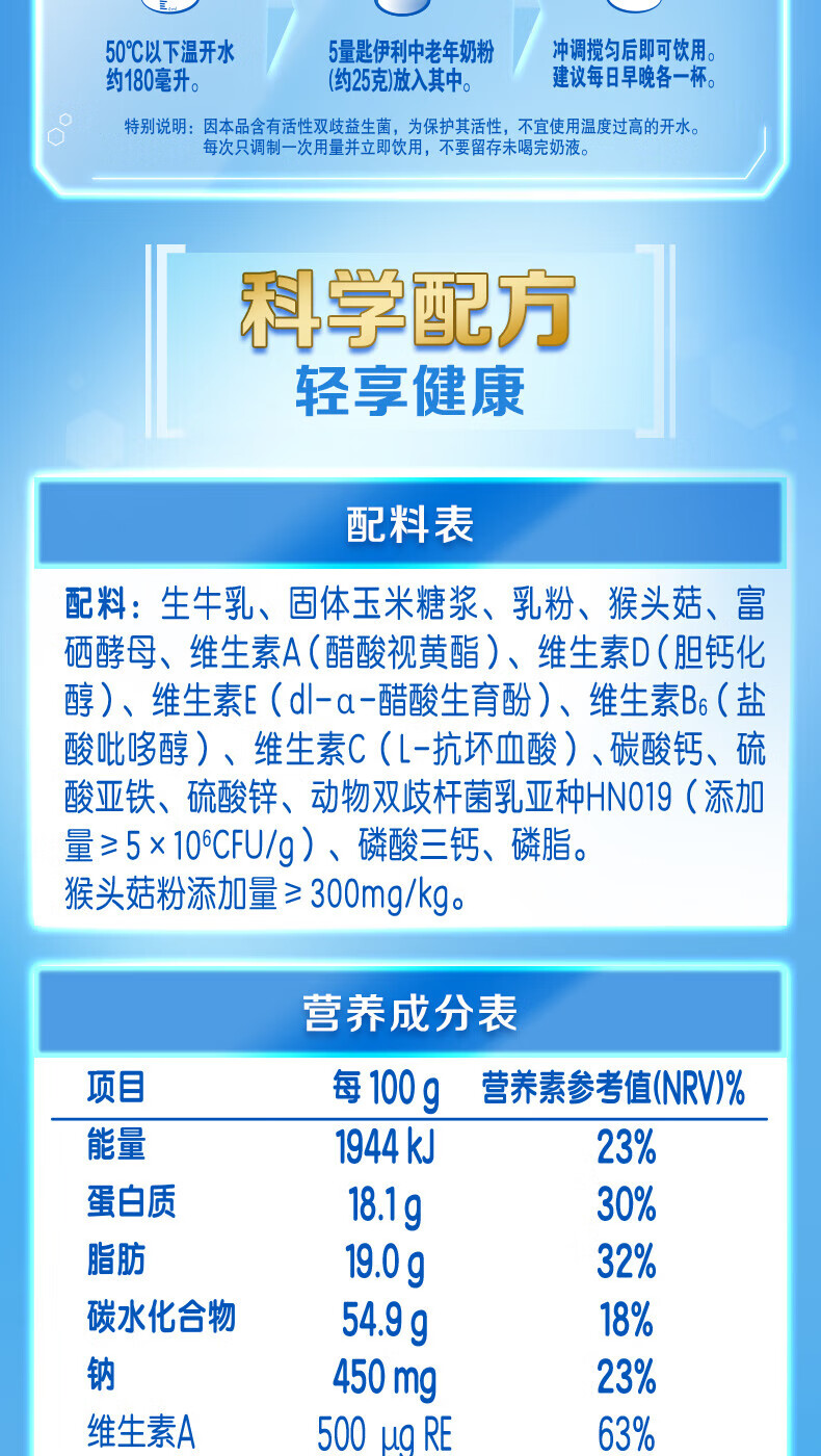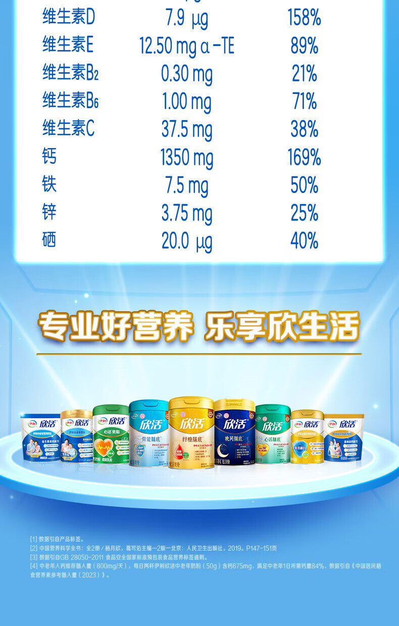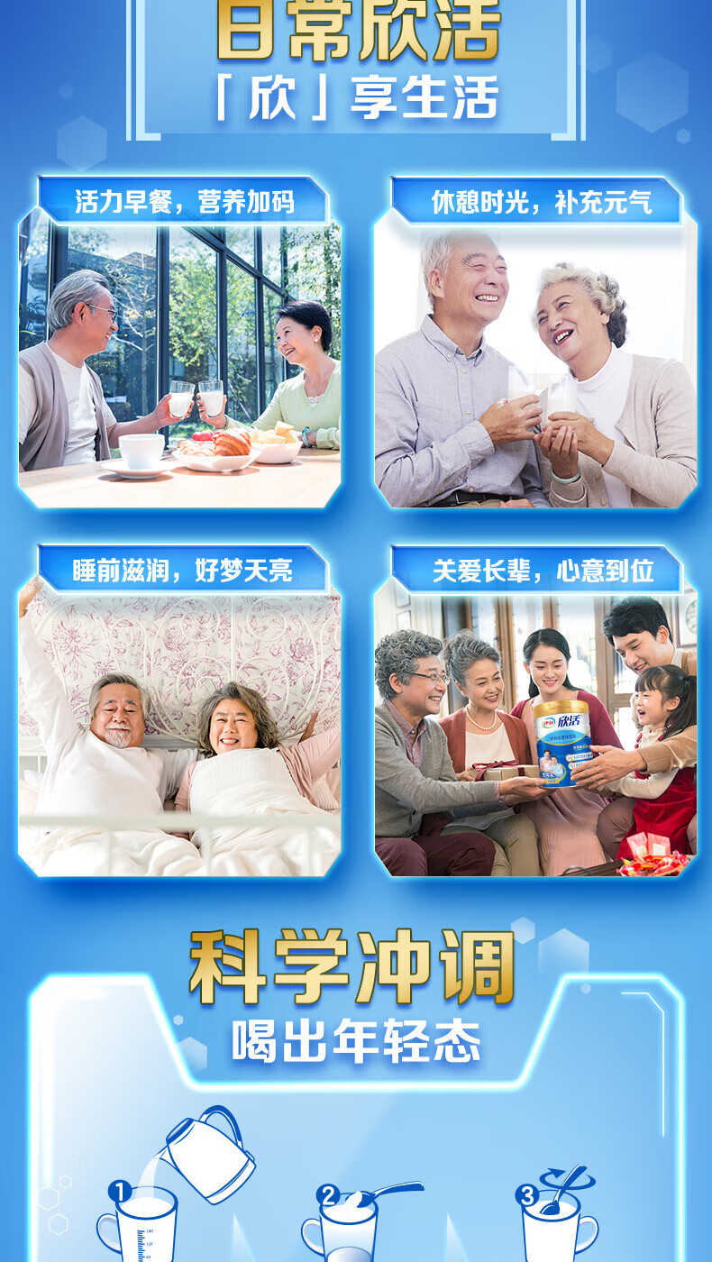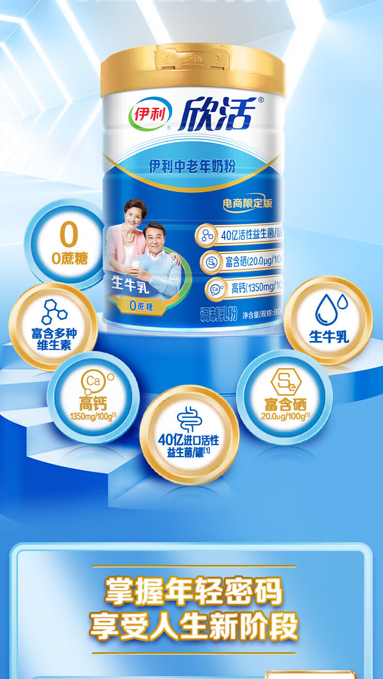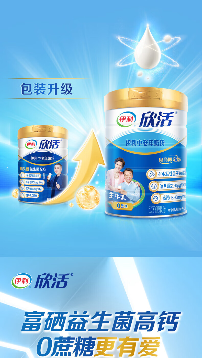 伊利欣活中老年人奶粉800g 富含硒 40亿活性益生菌 年货节礼盒 送礼 【约64次量】享受人生新阶段-800g*2