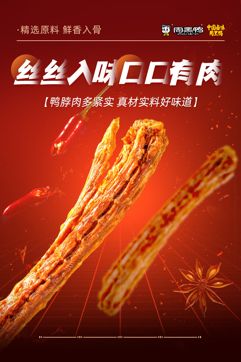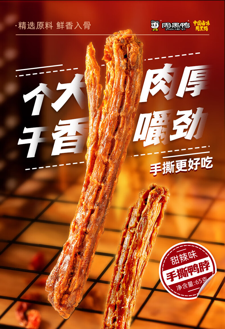 周黑鸭 手撕鸭脖65g 甜辣味 办公室零食 武汉特产 休闲零食