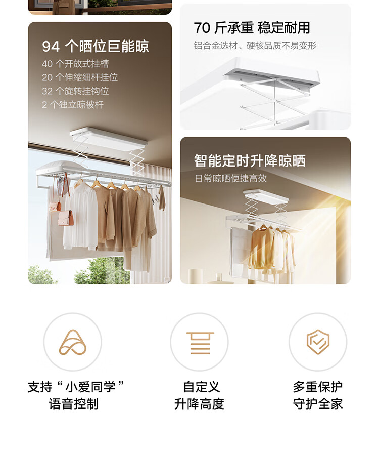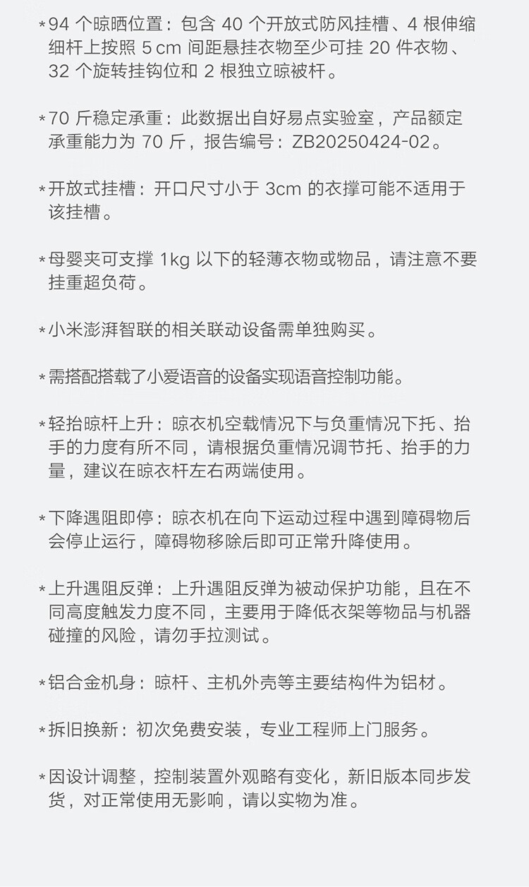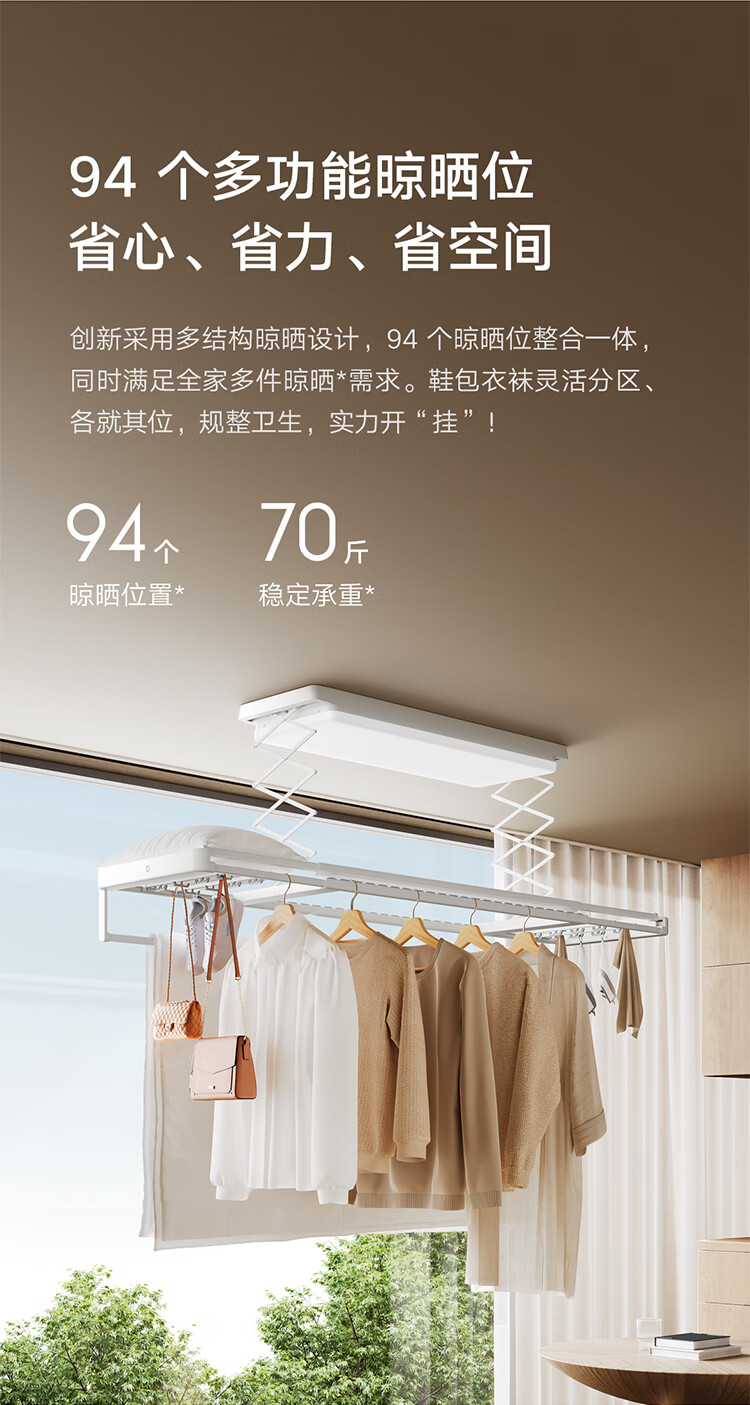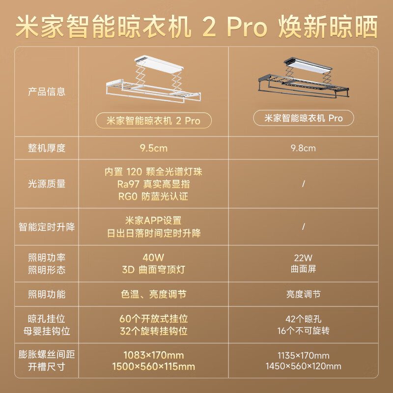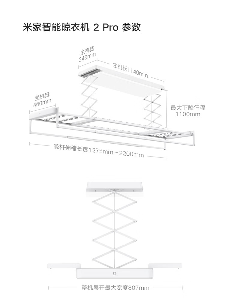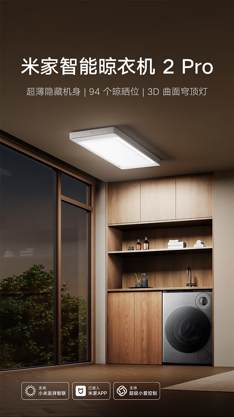 米家智能晾衣机2 Pro 【国家补贴】小米电动隐形晾衣架3D曲面穹顶灯