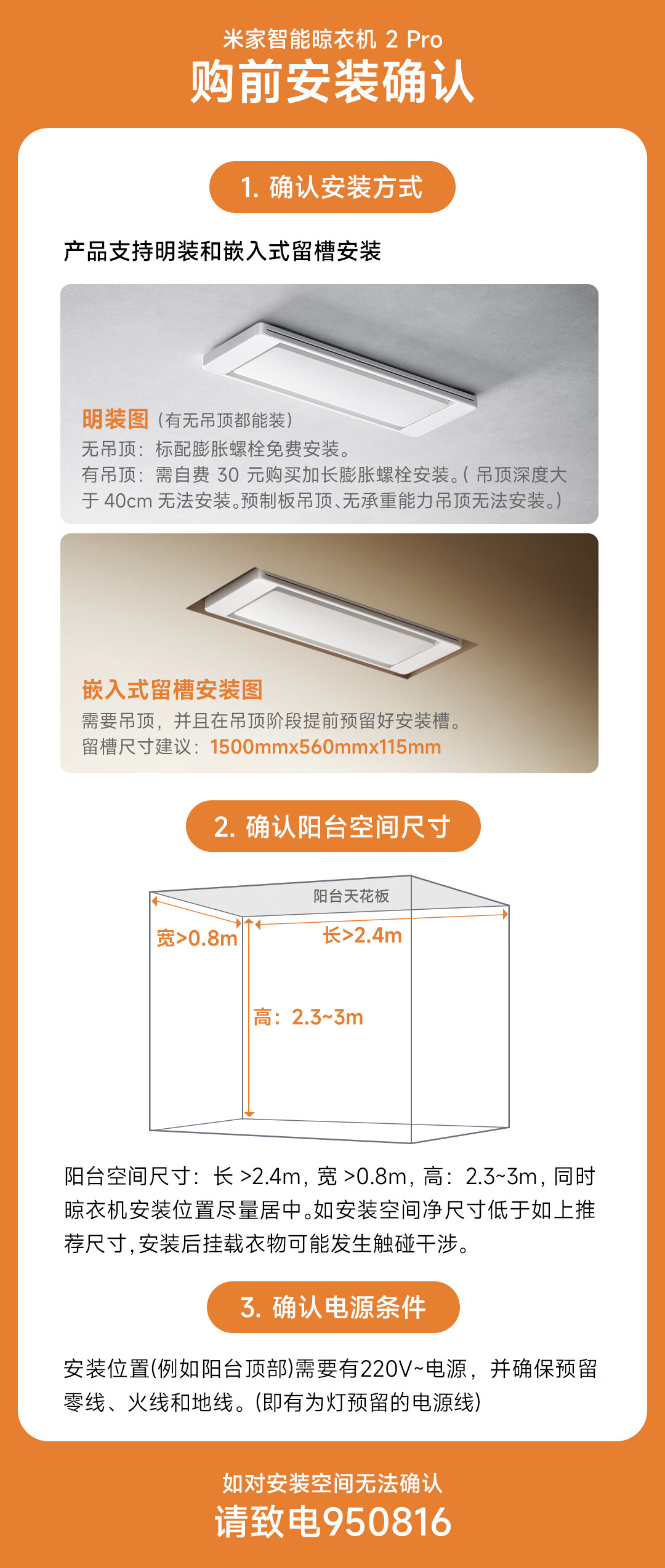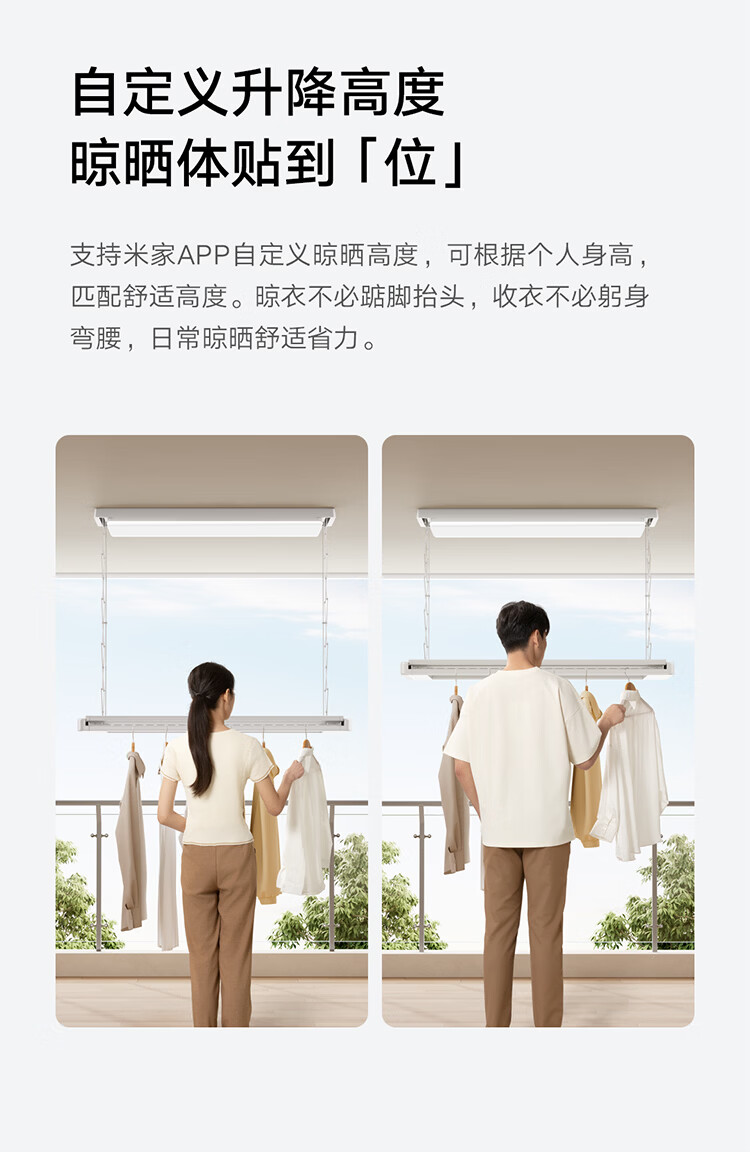 米家智能晾衣机Pro月光白 【国家补贴】小米电动隐形晾衣架超薄嵌入