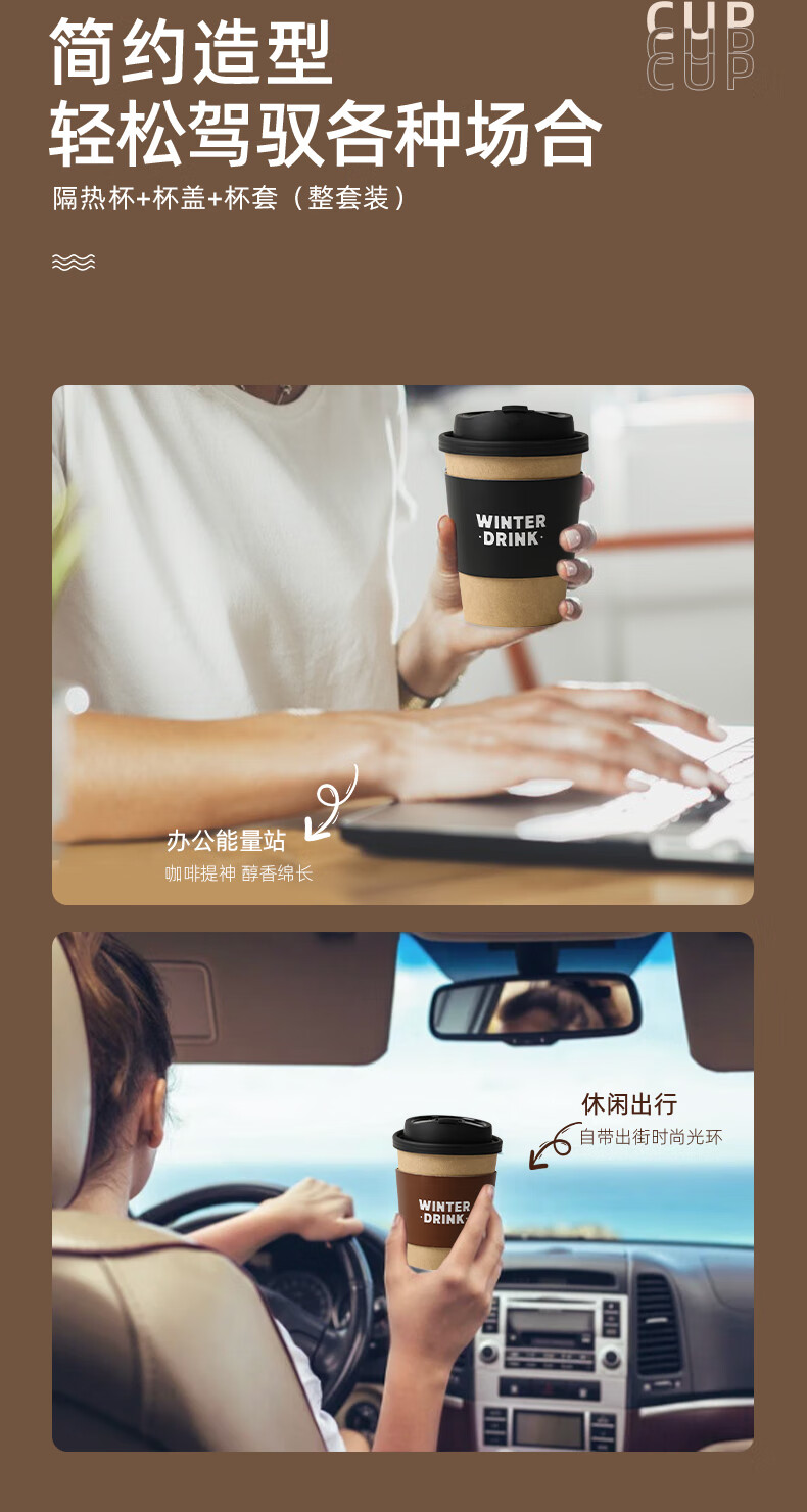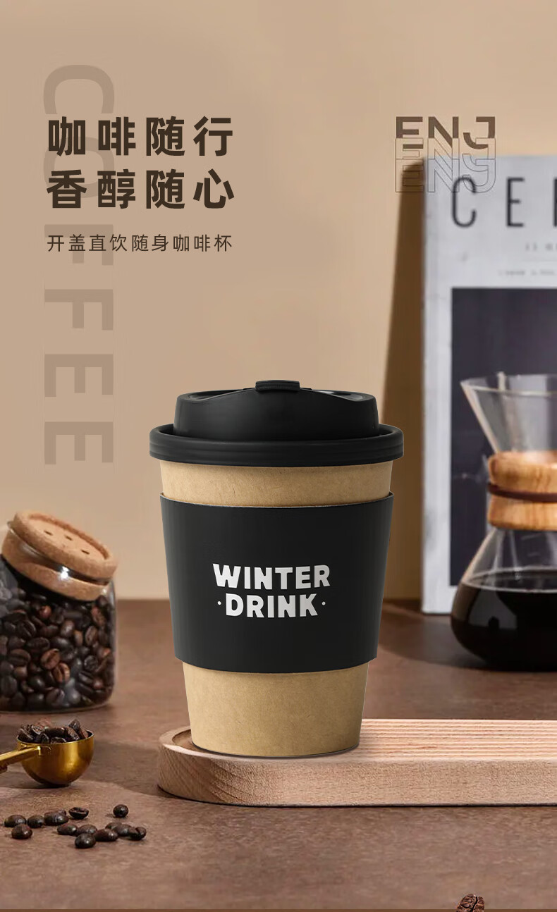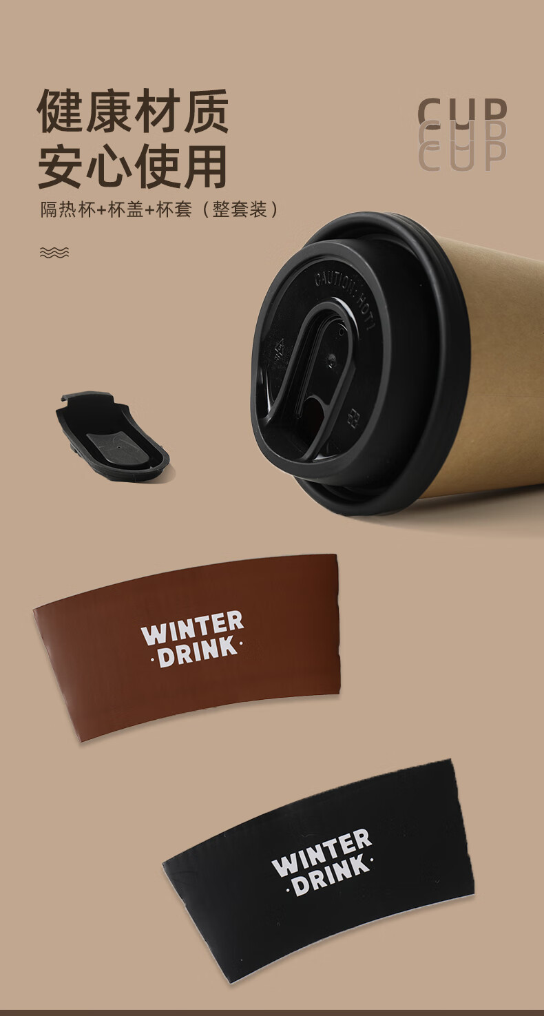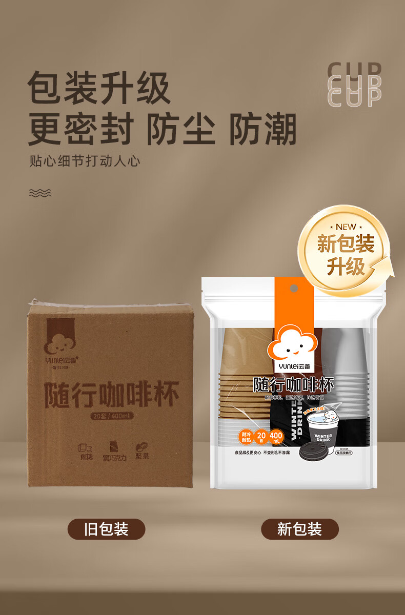 云蕾一次性咖啡杯加厚防烫外卖带盖热饮杯奶茶杯带杯套400ML*20套