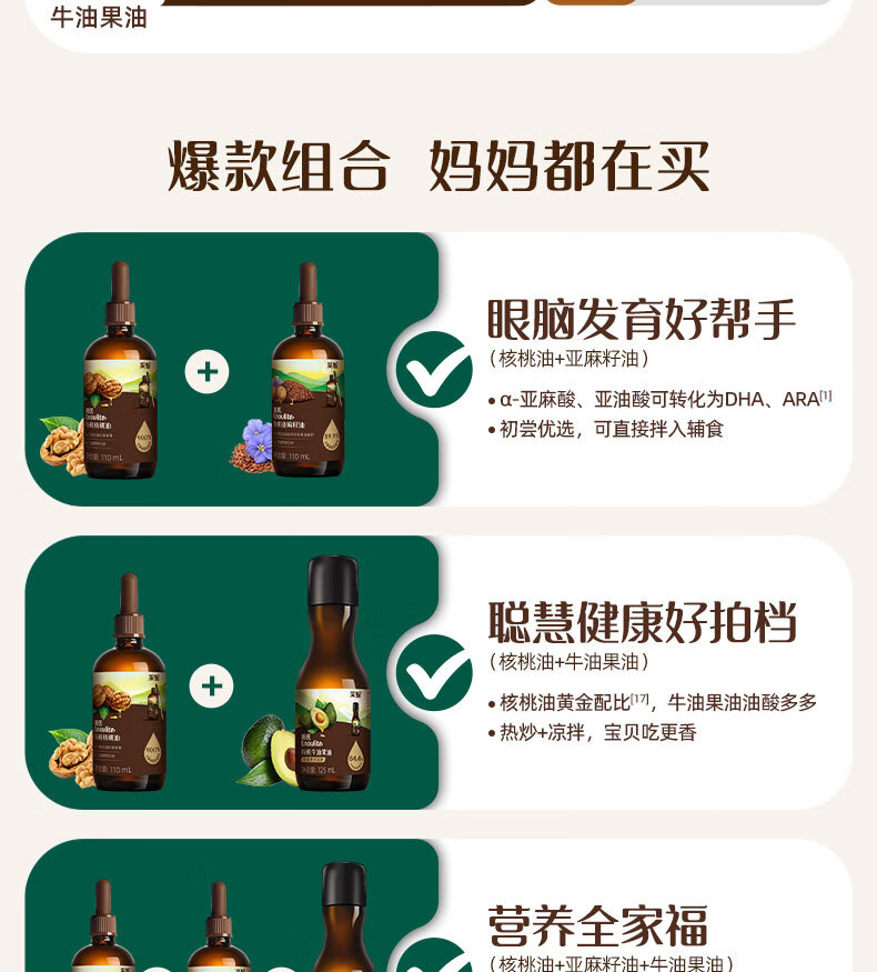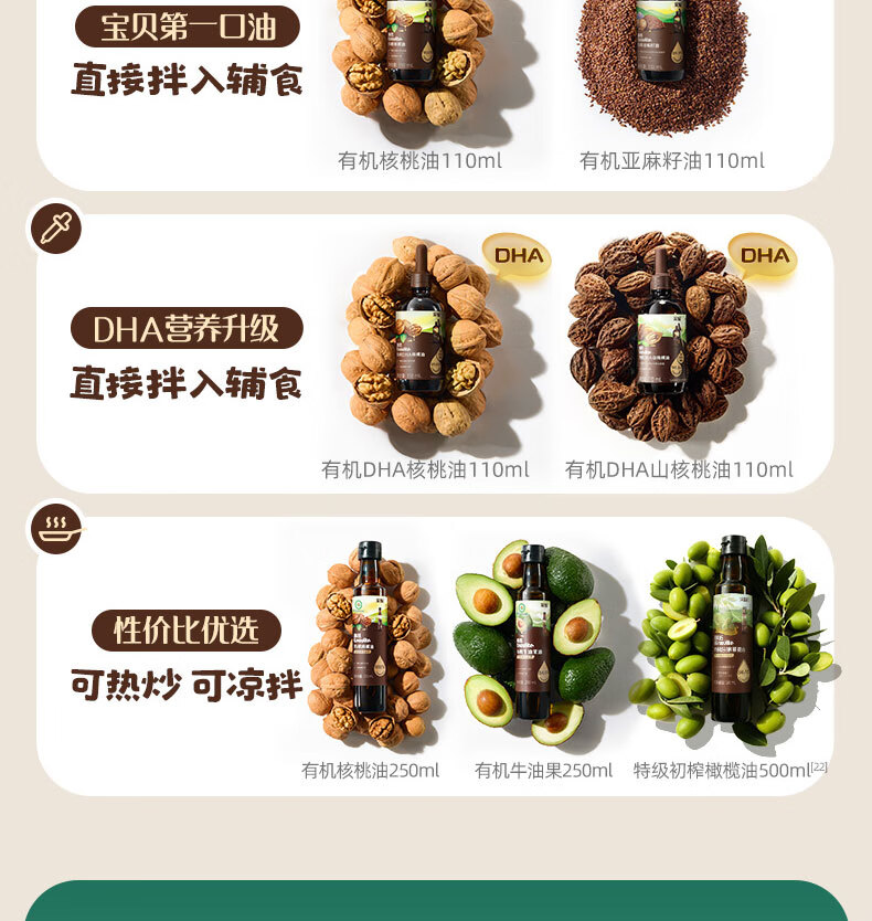 英氏有机亚麻籽油110ml辅食用油冷榨佐餐凉拌送宝宝婴幼儿辅食用品