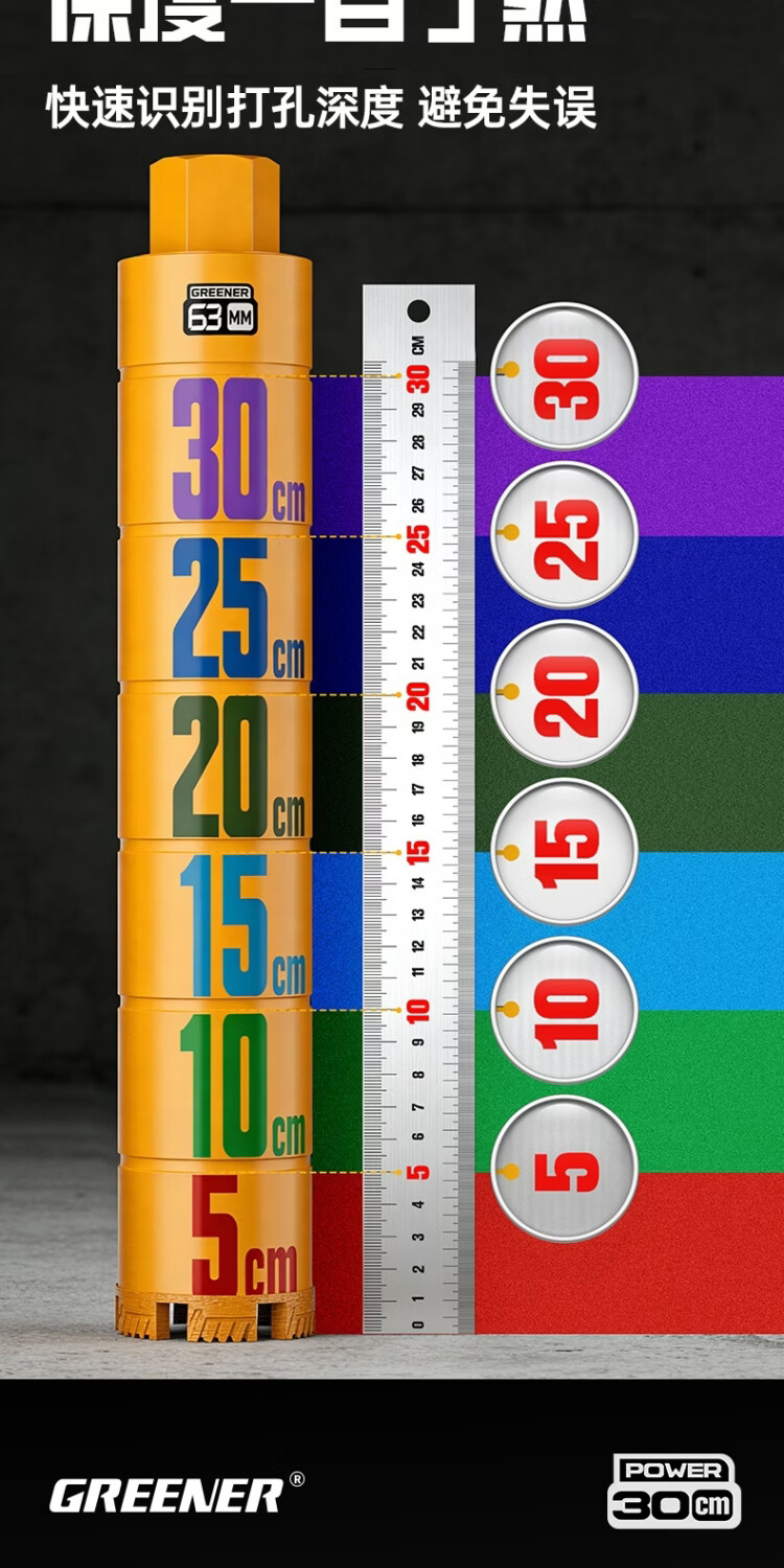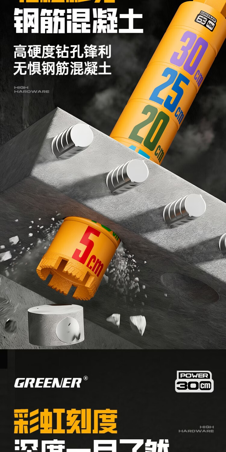 绿林彩虹定深水钻钻头打孔混凝土水泥墙壁专用穿墙砖开孔空调打洞 彩虹定深水钻【27x370mm】1支