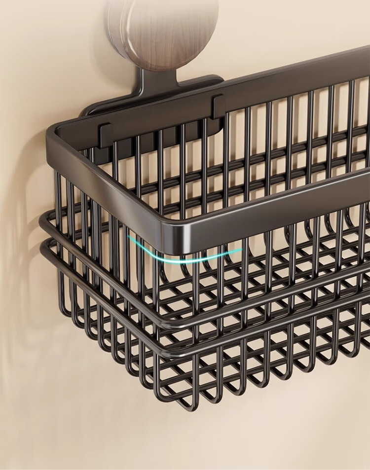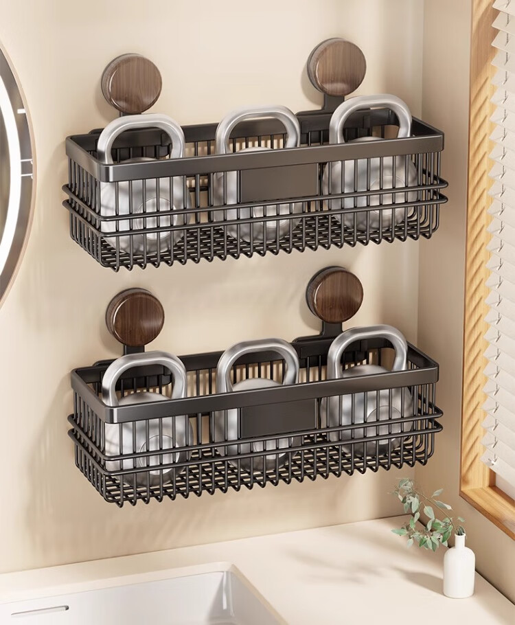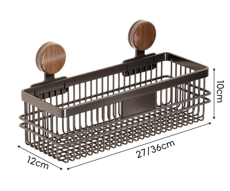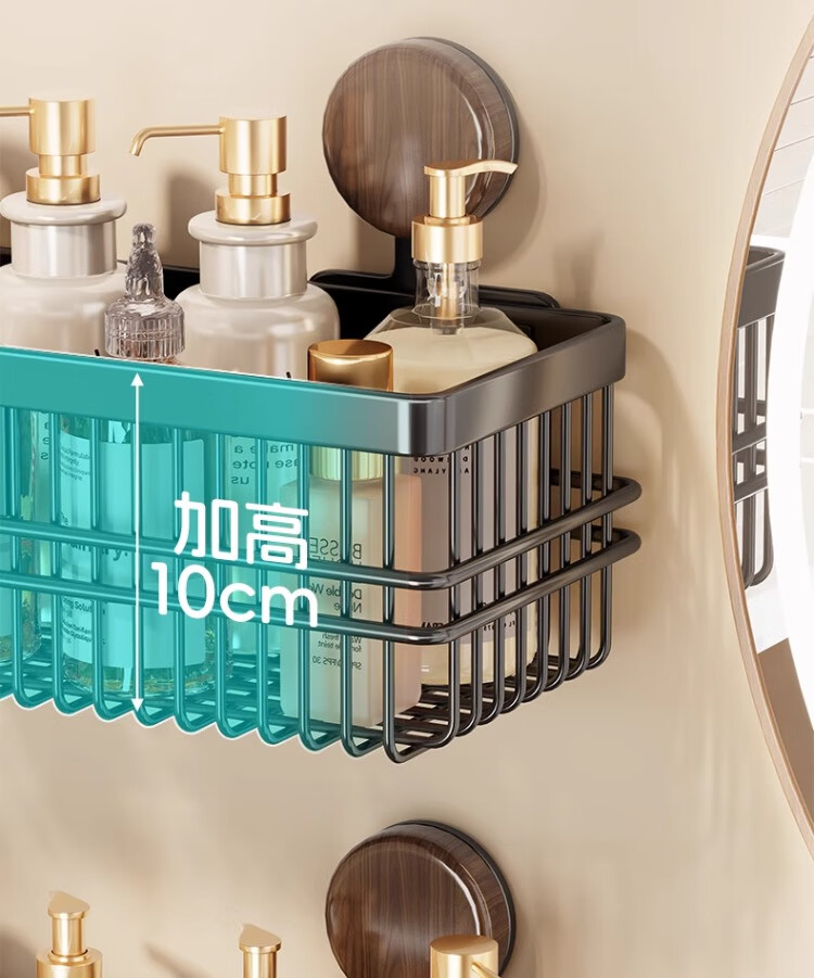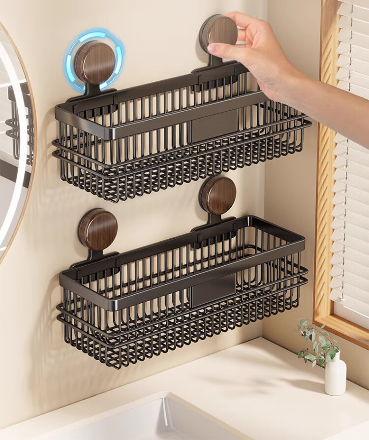 尔思家卫生间置物架洗手台免打孔壁挂式收纳沥水架子浴室墙上吸盘收纳篮 黑色大号