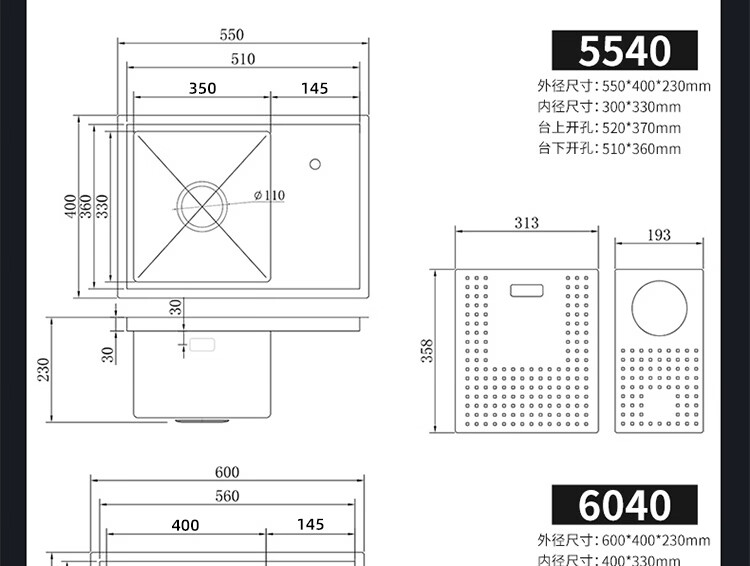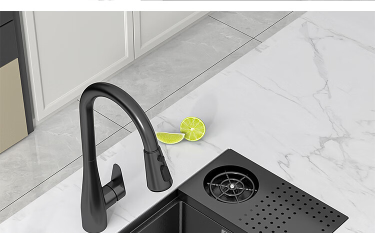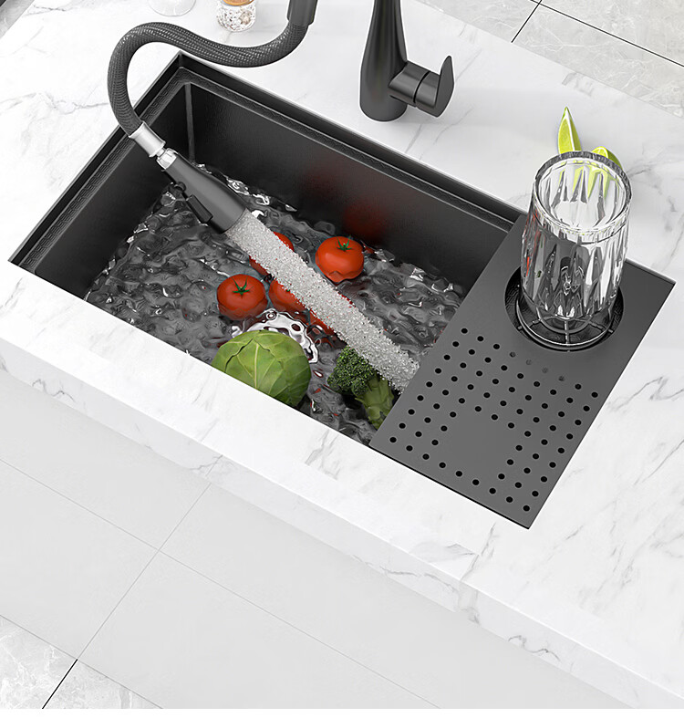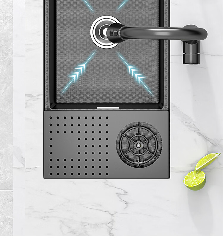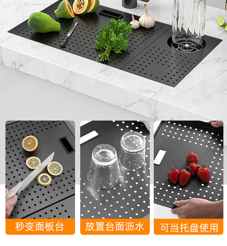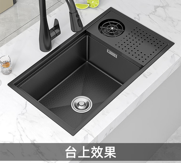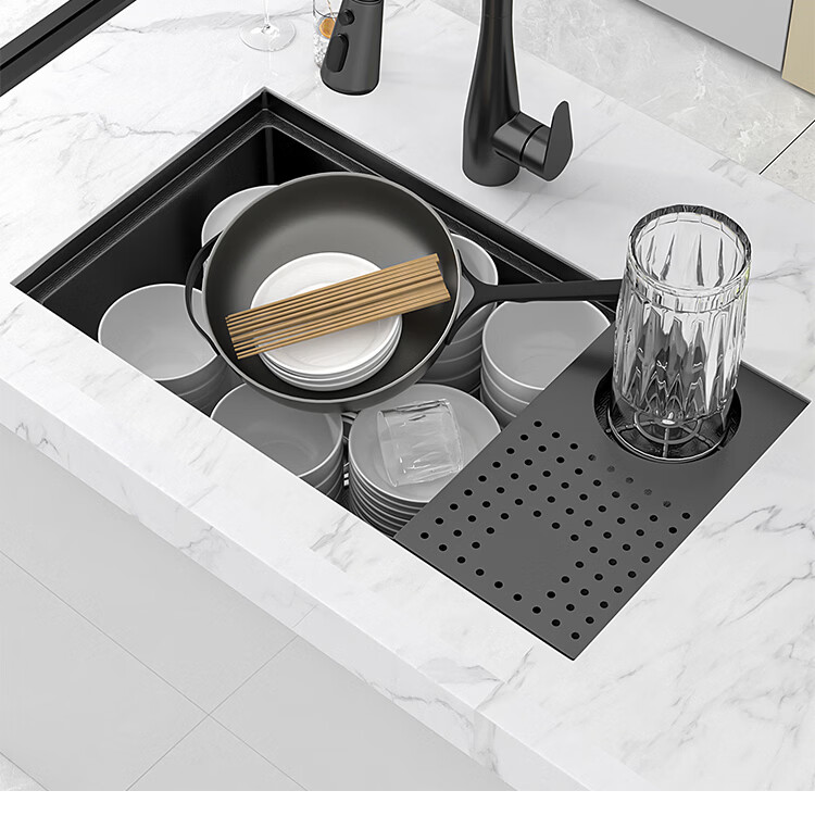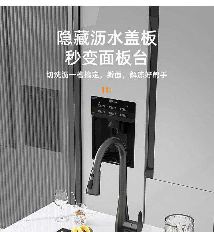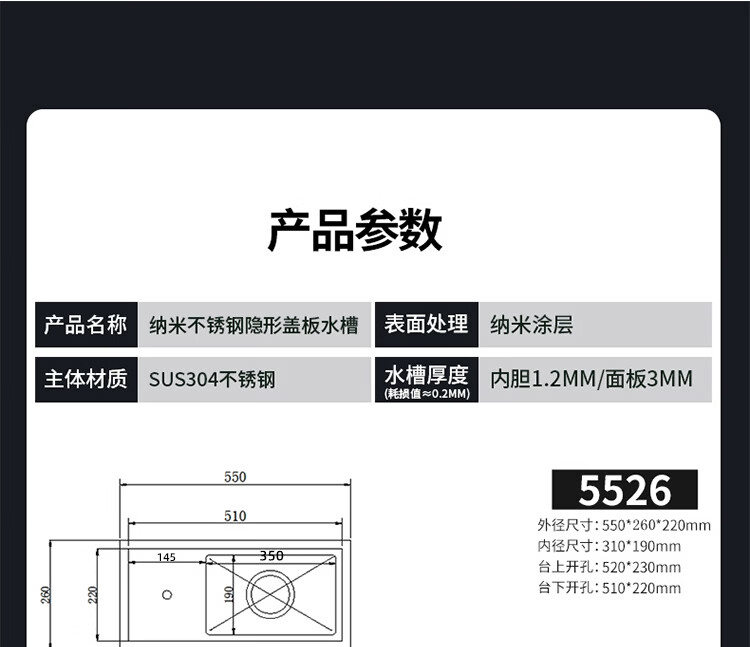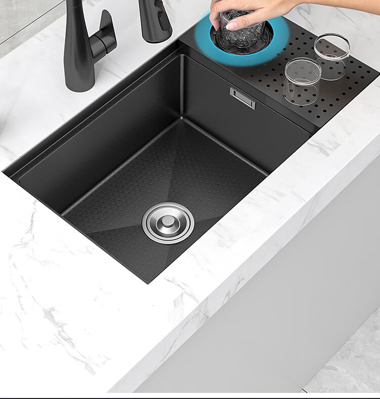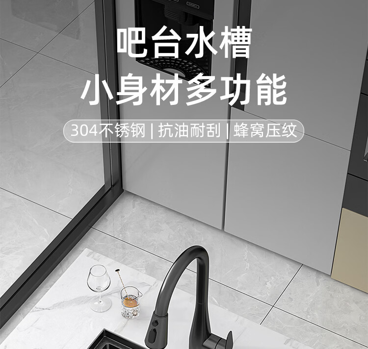 NOEO小水槽隐藏式单槽带盖 304不锈钢洗菜洗碗盆茶水间中岛吧台洗手池 55x26 | 隐藏式洗杯器槽(不含龙头)